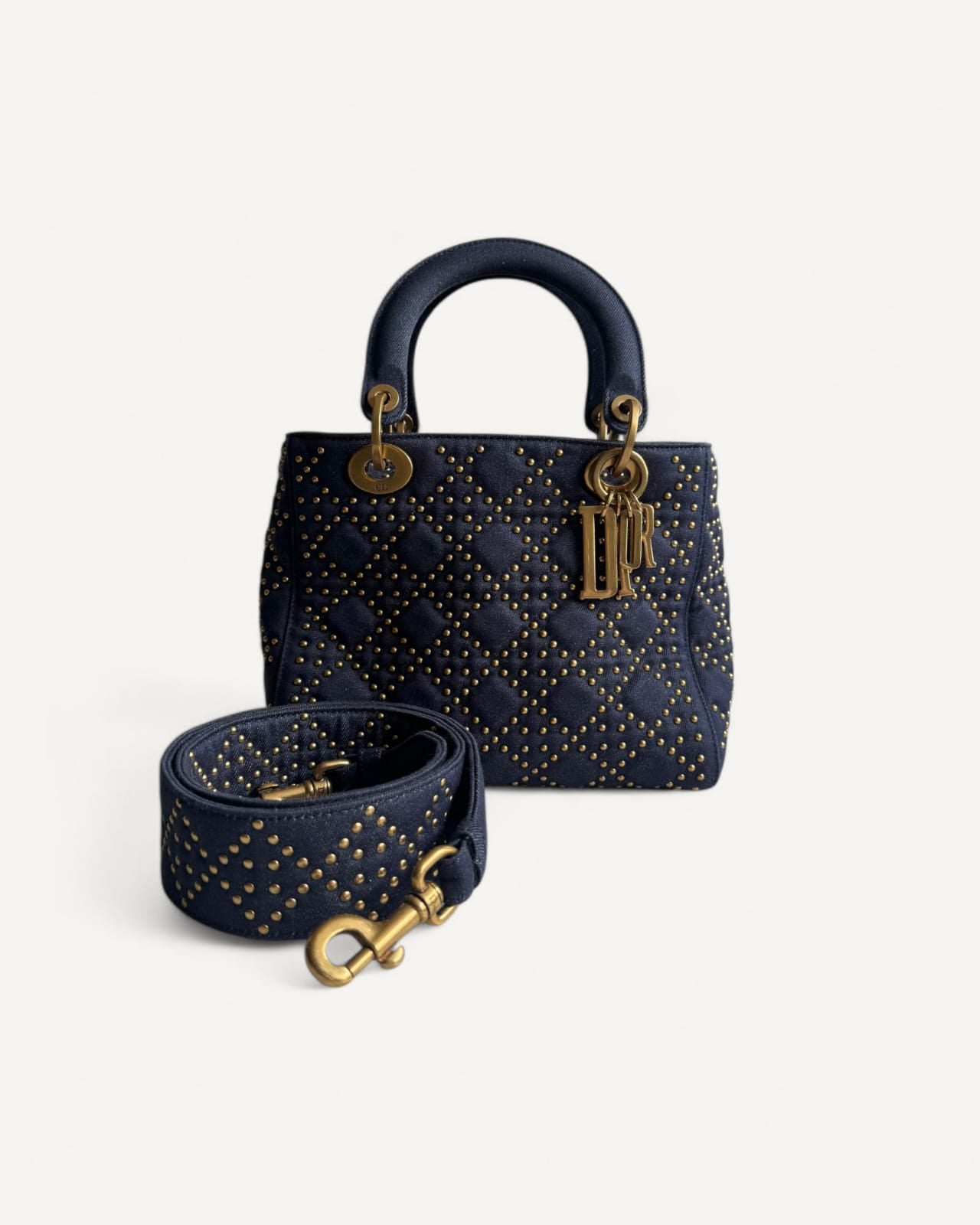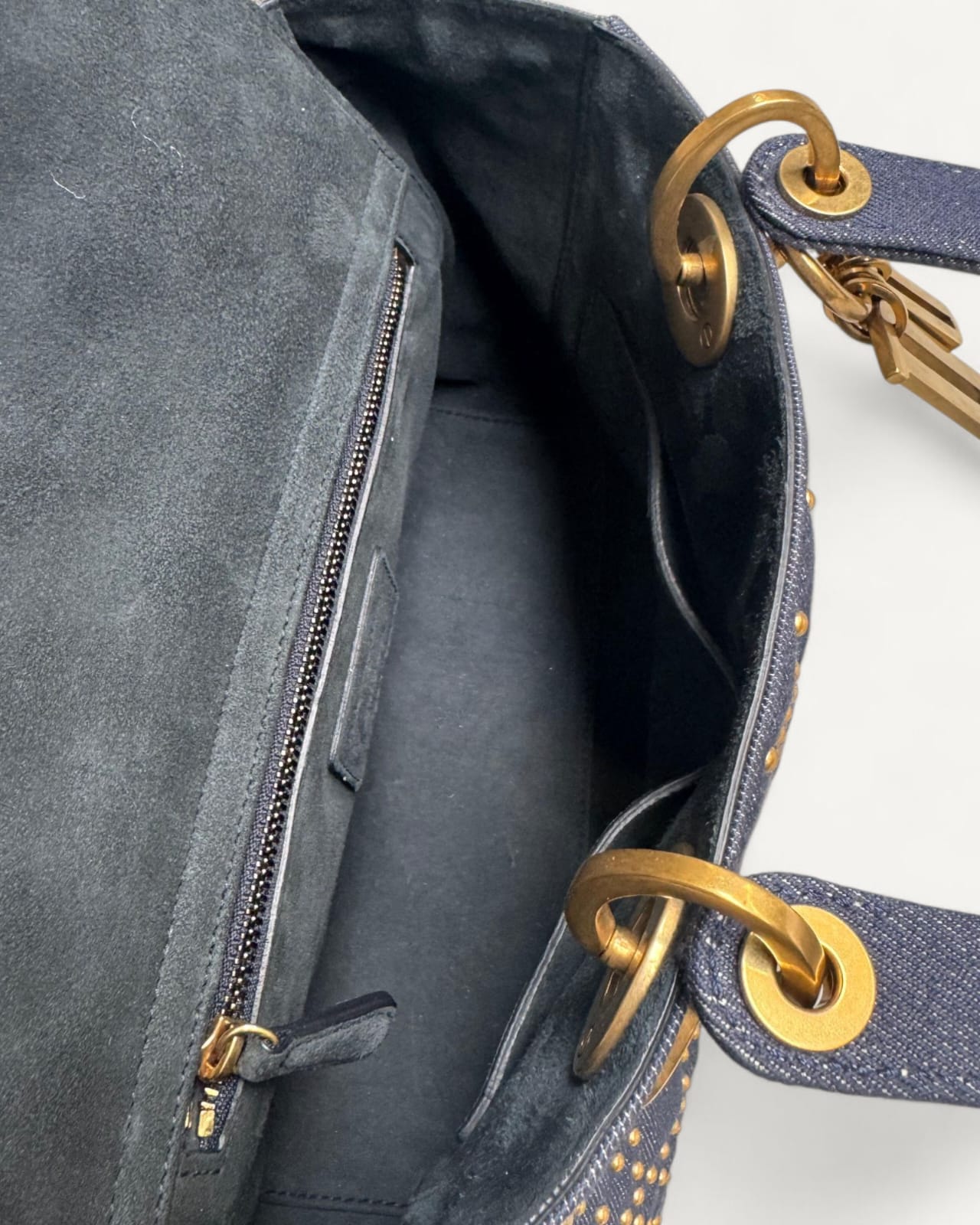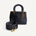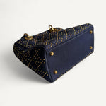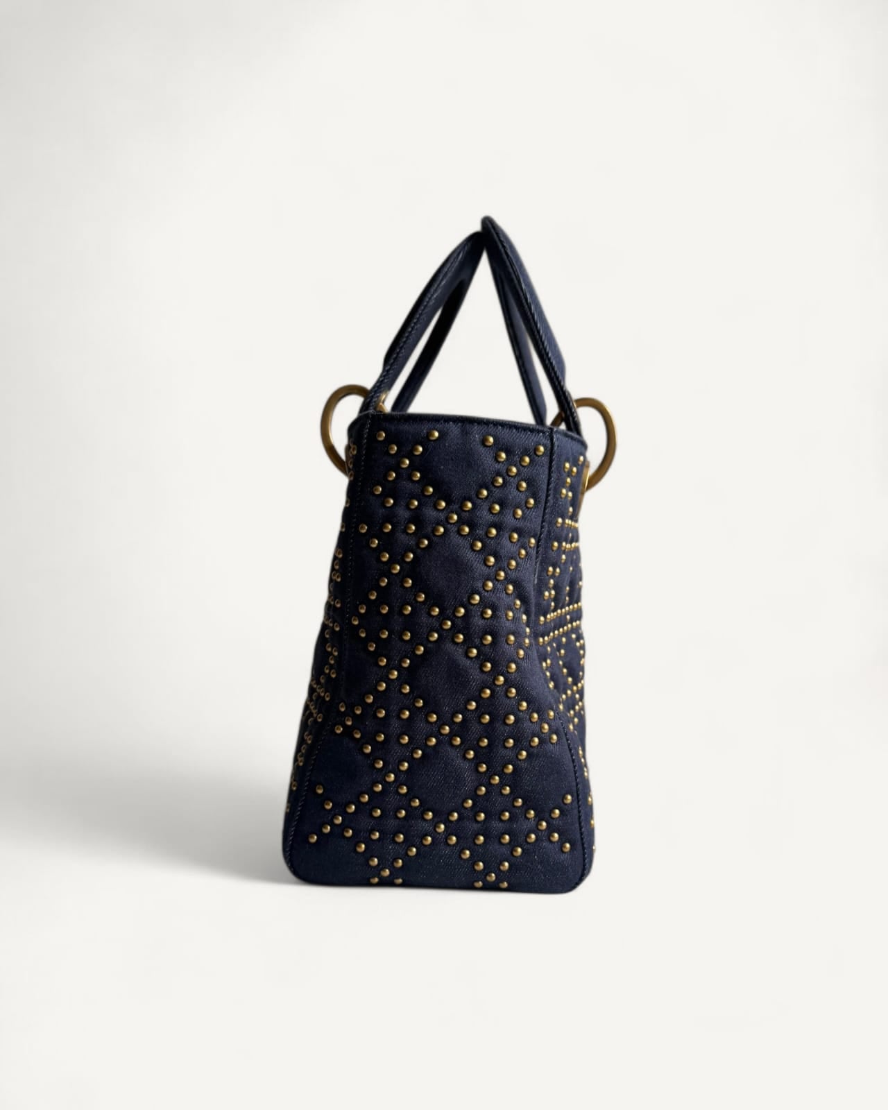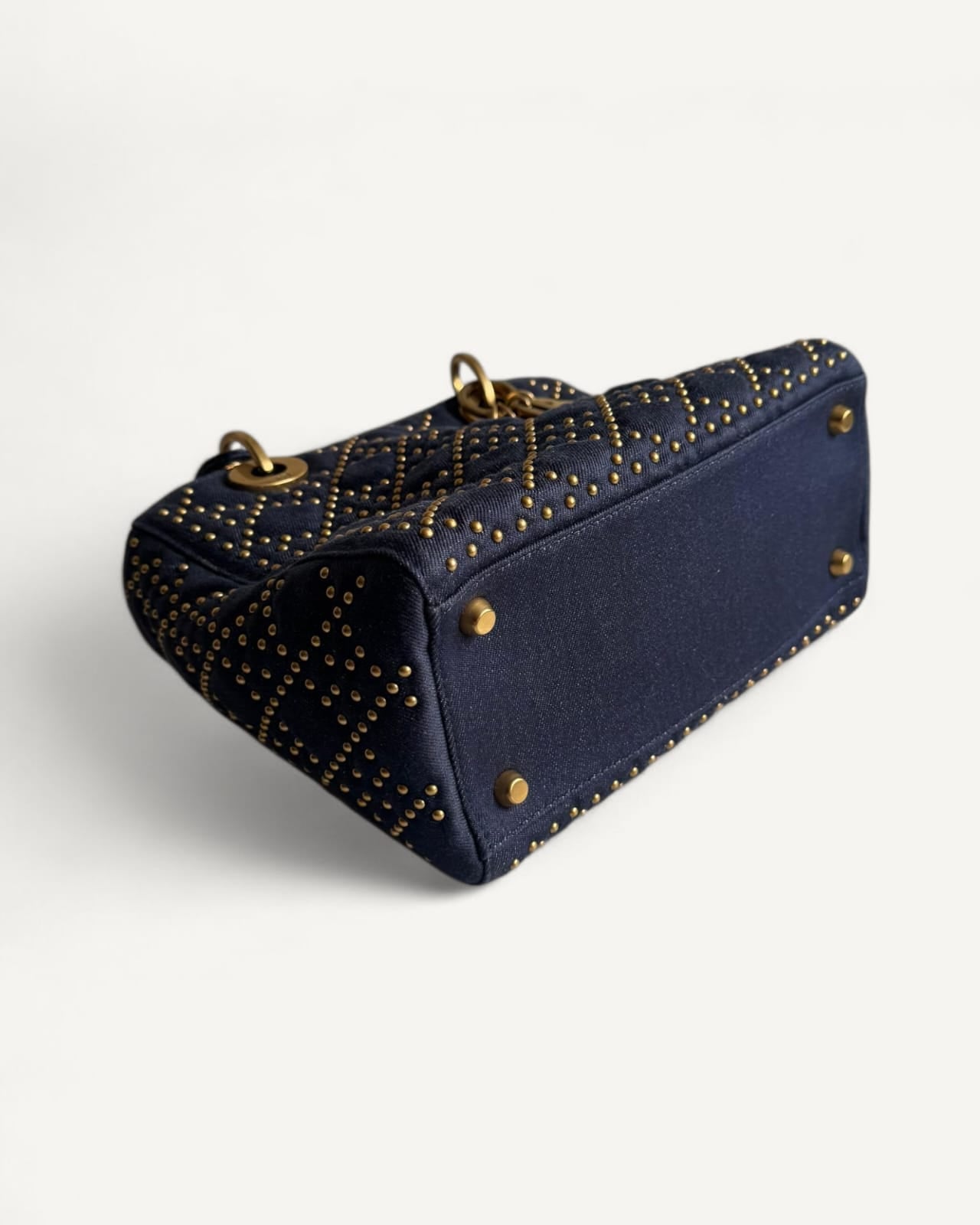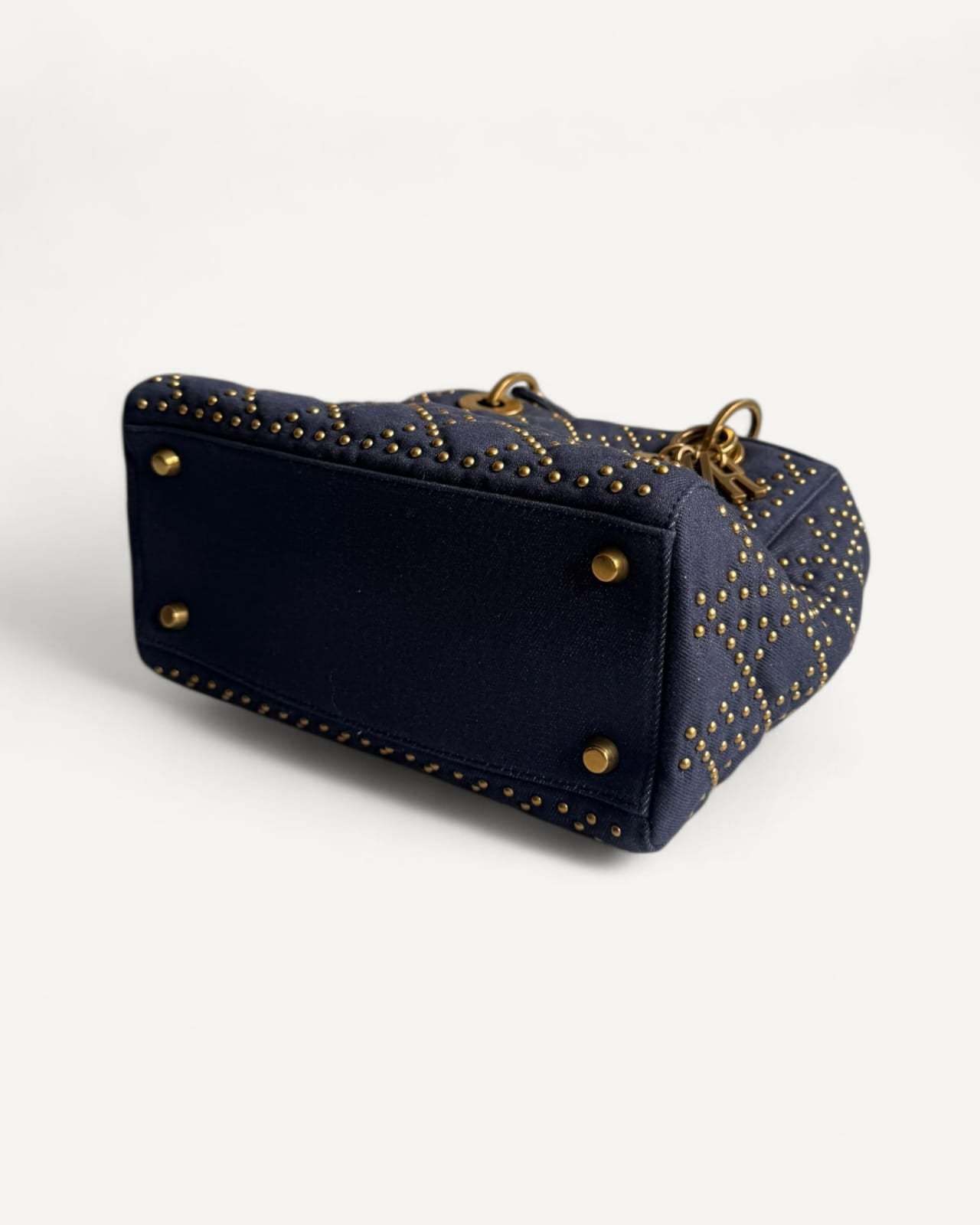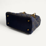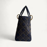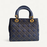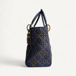Bolsa Dior Lady Dior Medium Denim Cannage Studded Supple Navy Blue