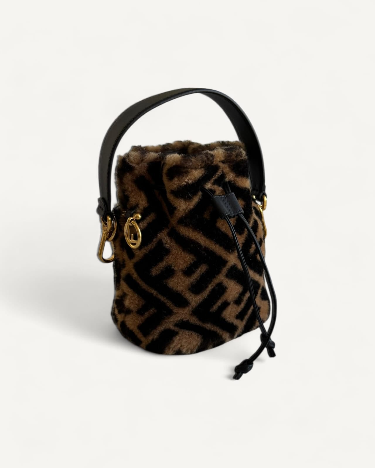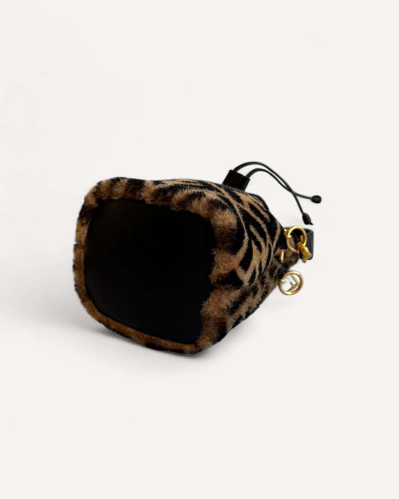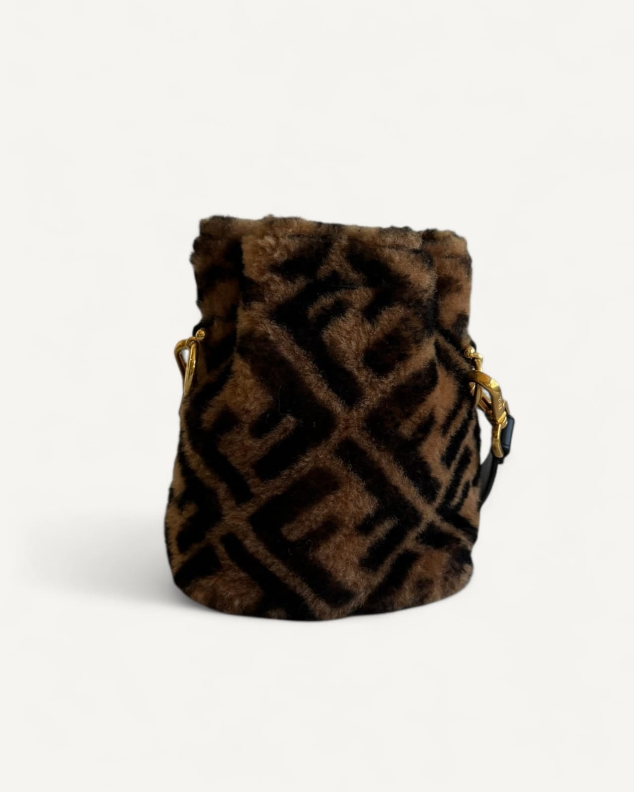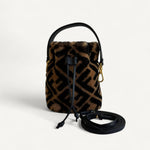 Bolsa Fendi Bucket Mon Tresor Mini com Pelos e Estampa Zucca