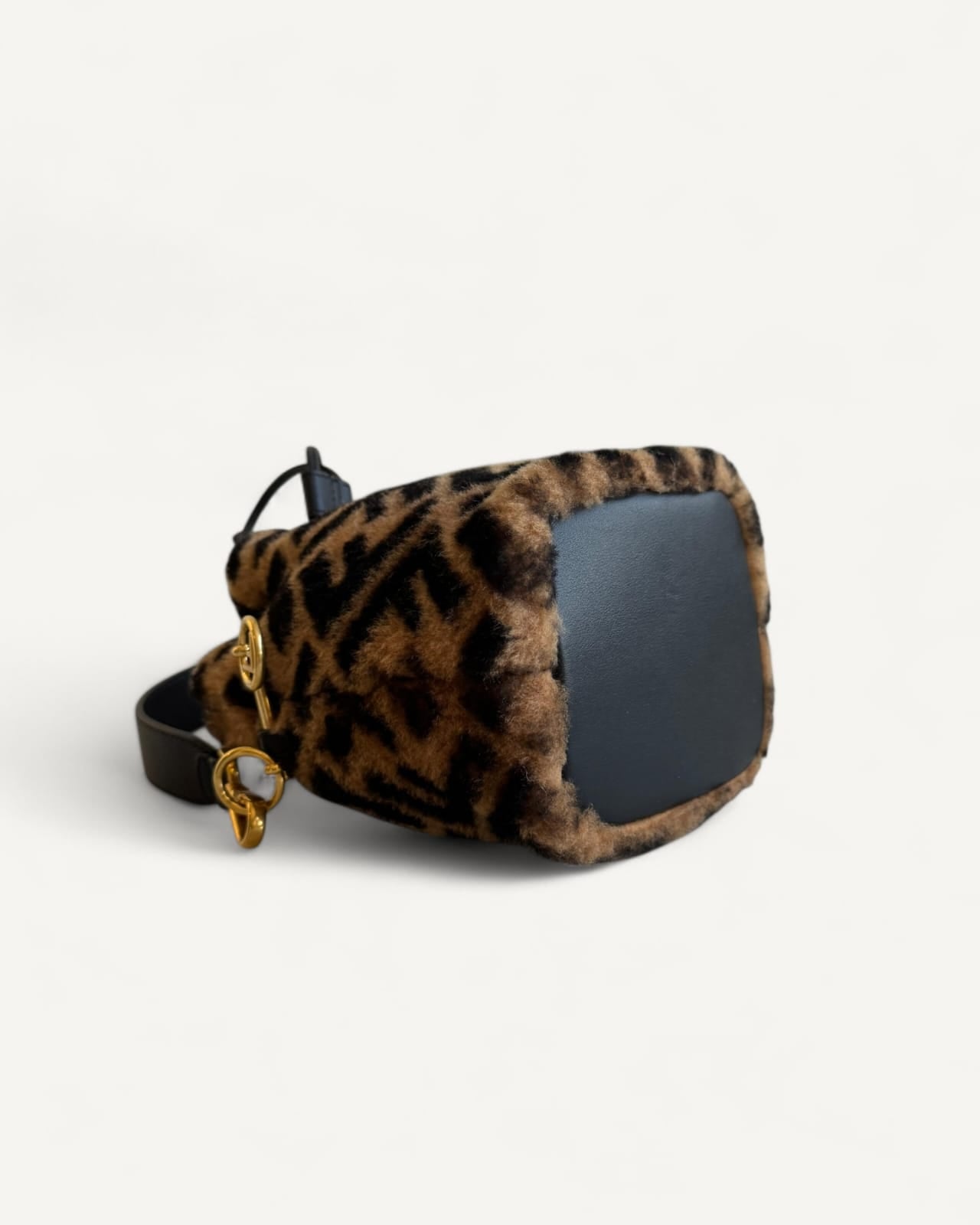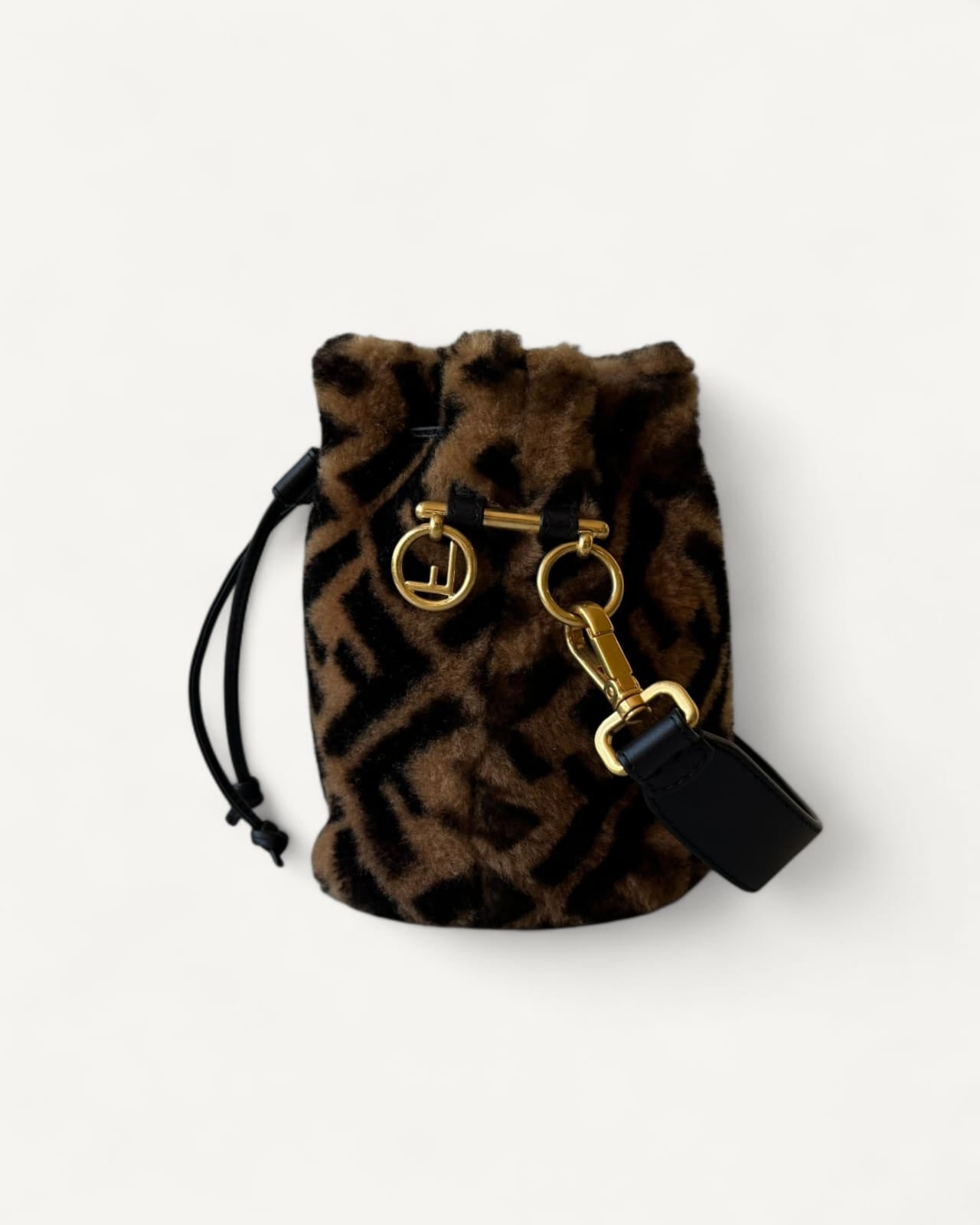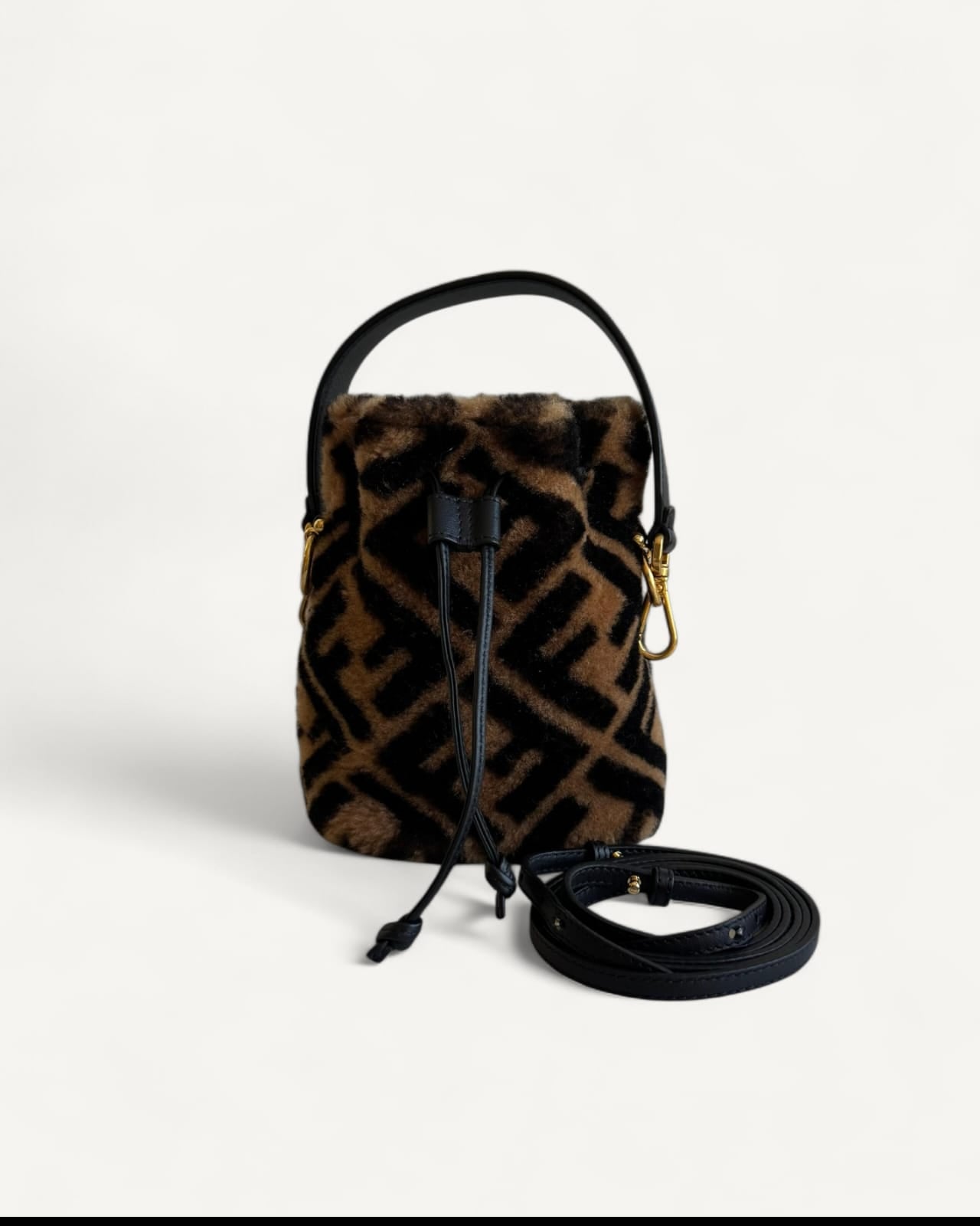 Bolsa Fendi Bucket Mon Tresor Mini com Pelos e Estampa Zucca