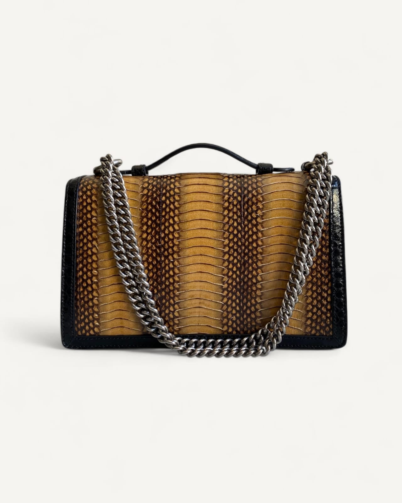 - Detalhe em cobra "Dionysus" no fecho frontal
