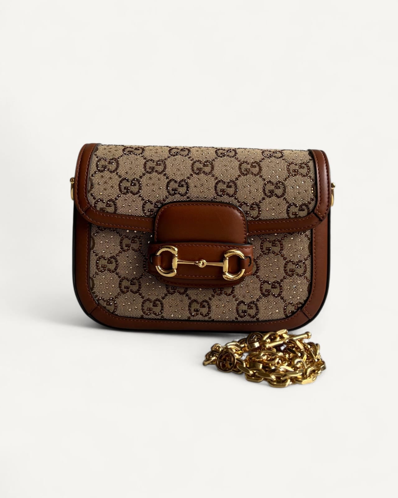 Bolsa Gucci Horsebit 1955 Crystals Small Shoulder Bag Monograma