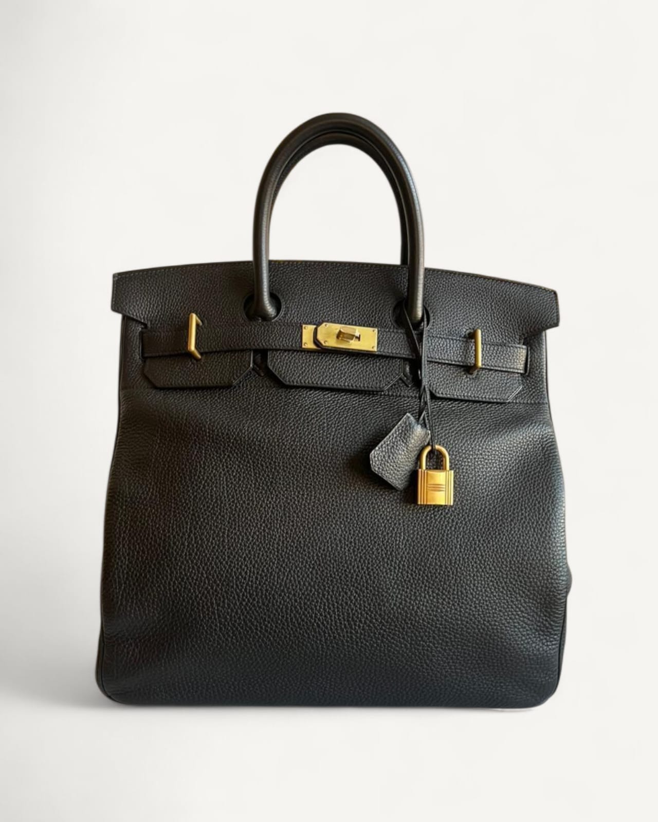 Bolsa Hermès Birkin HAC Togo Noir com Ferragens Gold - Stamp Q Square