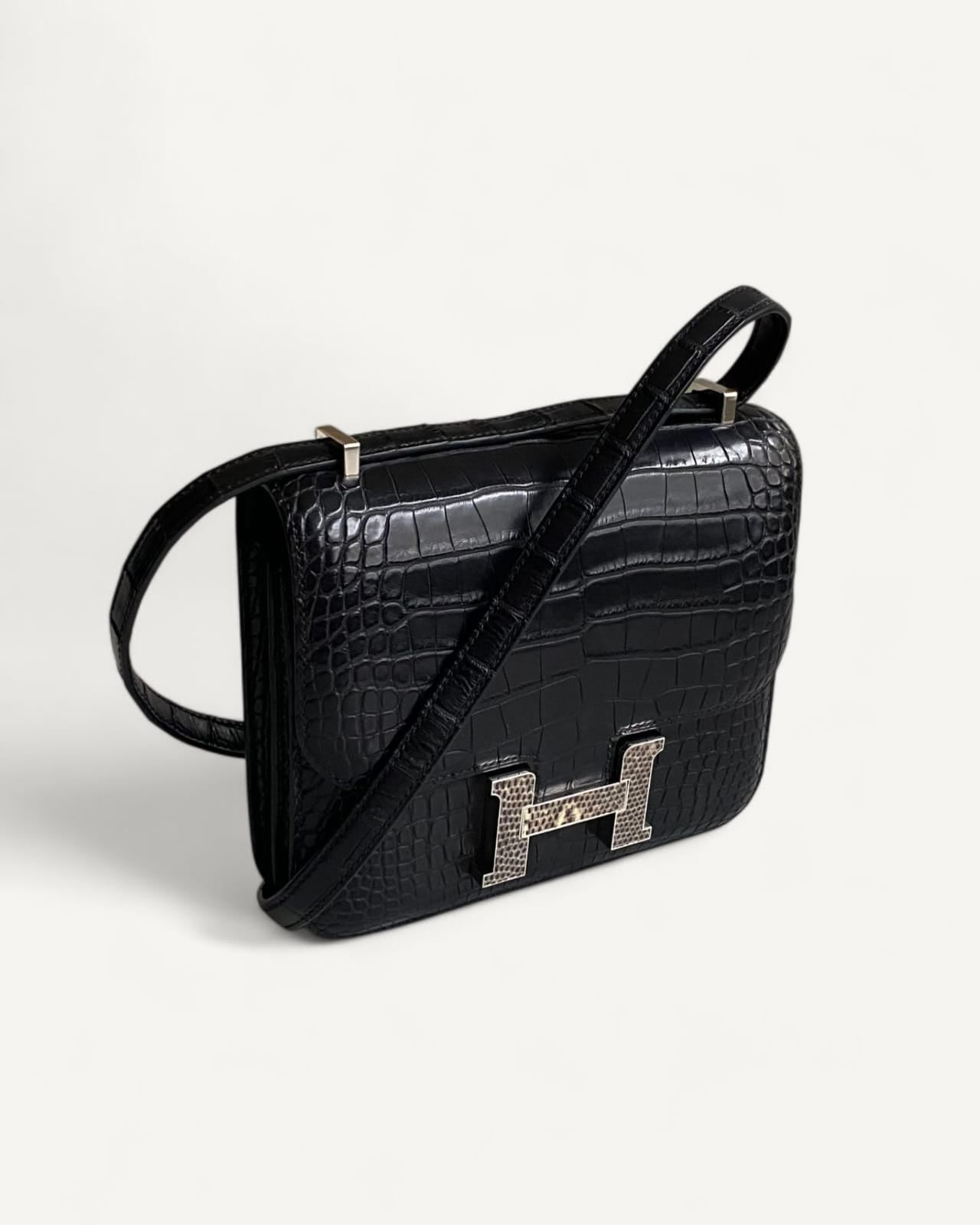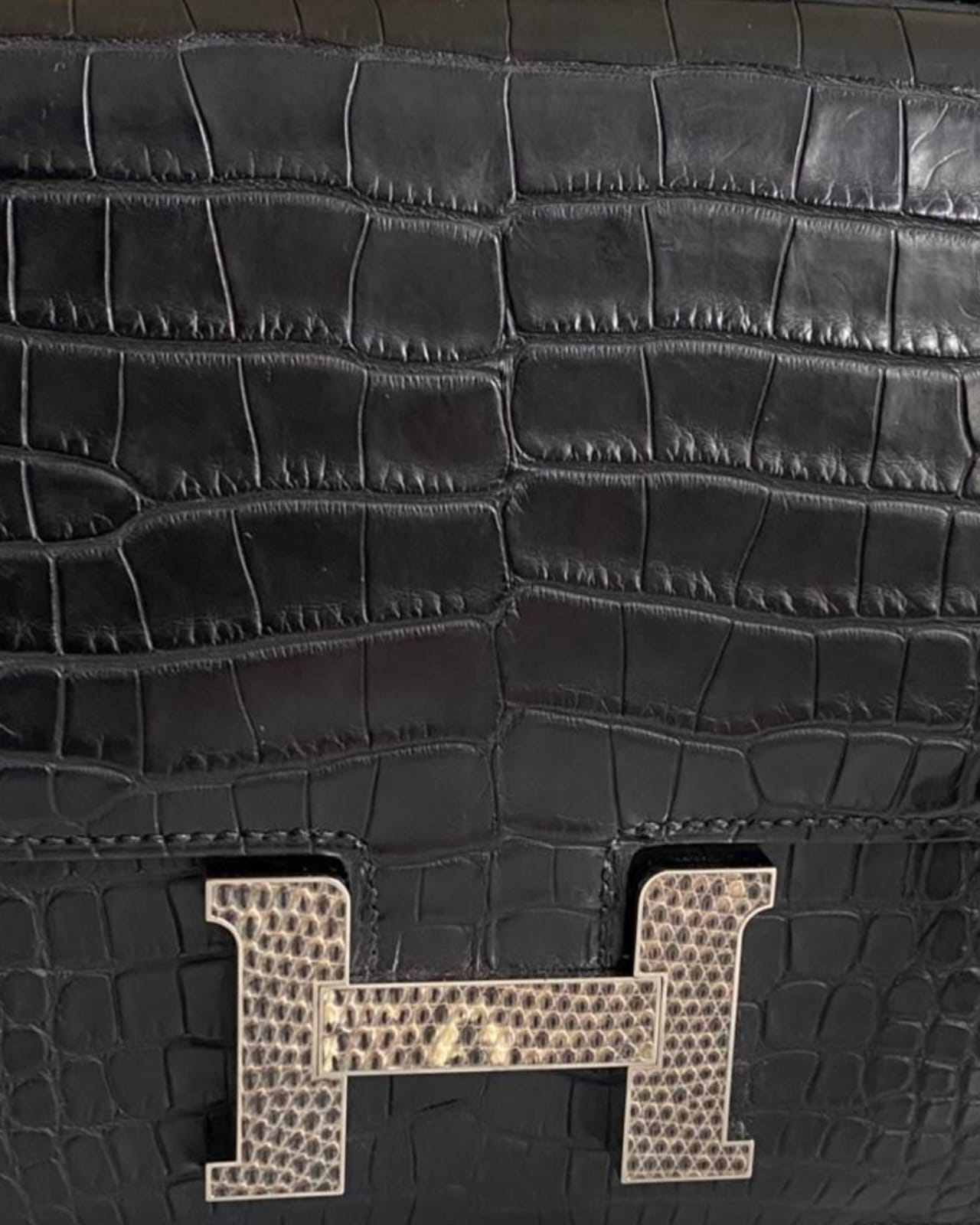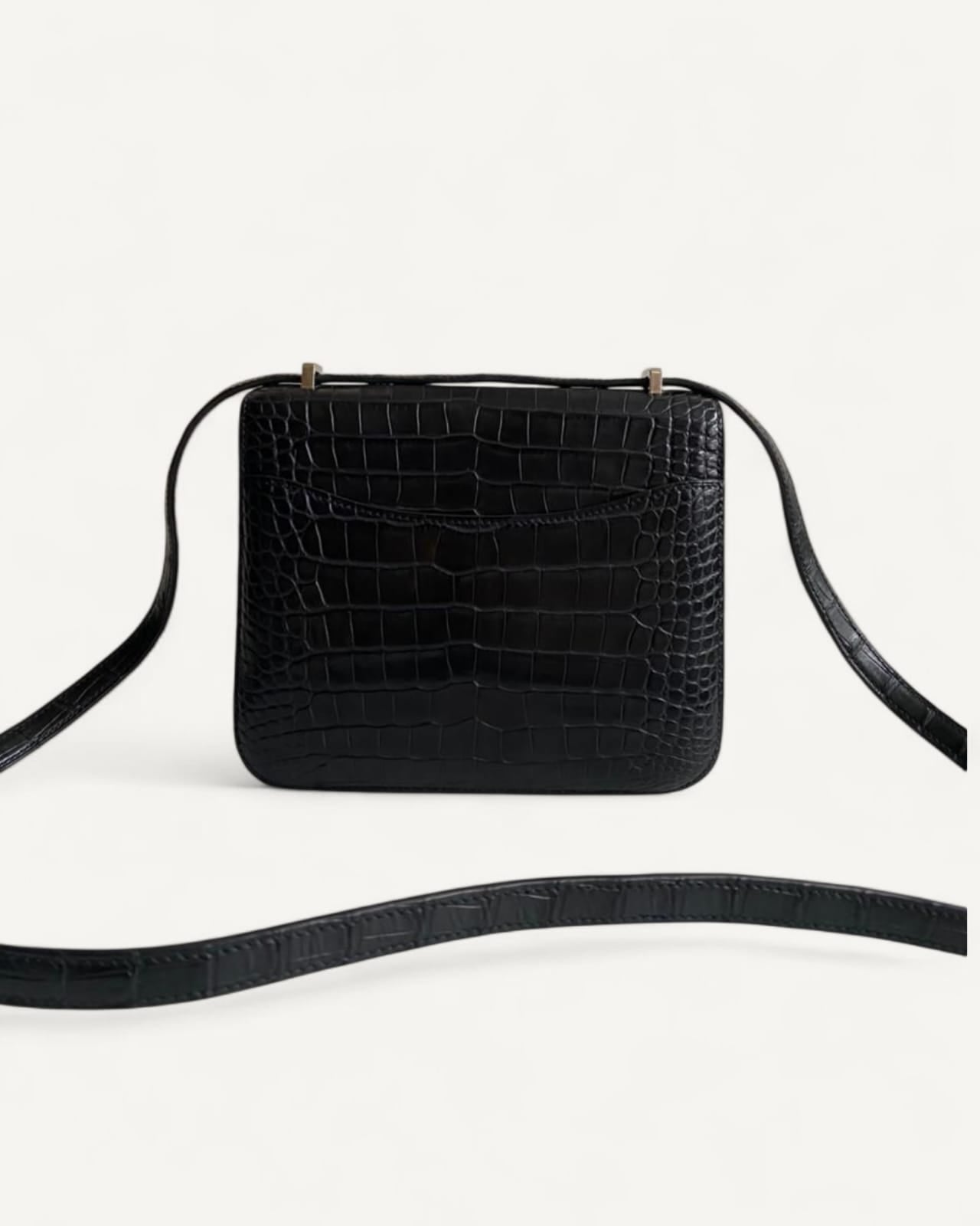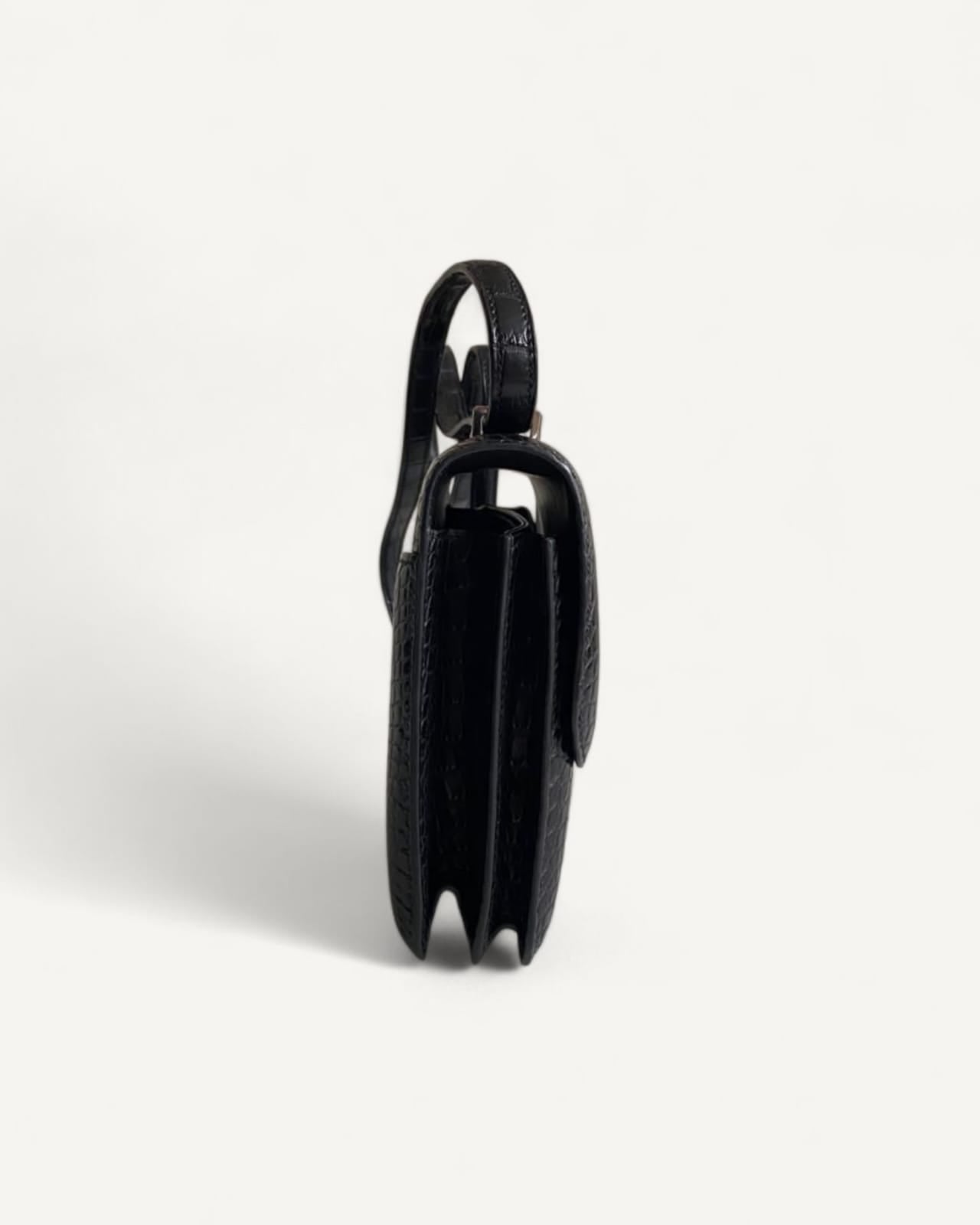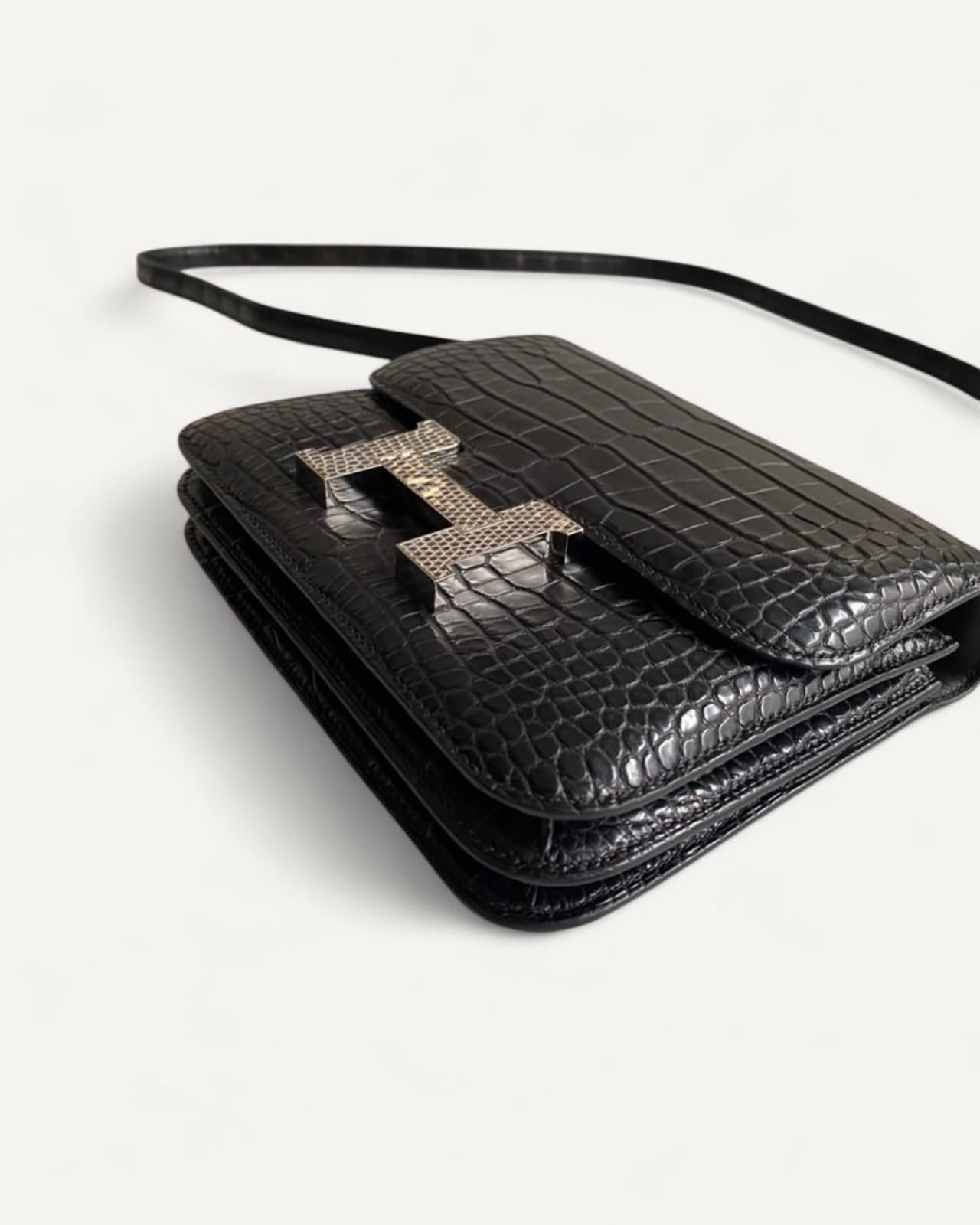 Bolsa Hermès Constance 18 Alligator Matte Noir com Ferragens Palladium/Lizzard