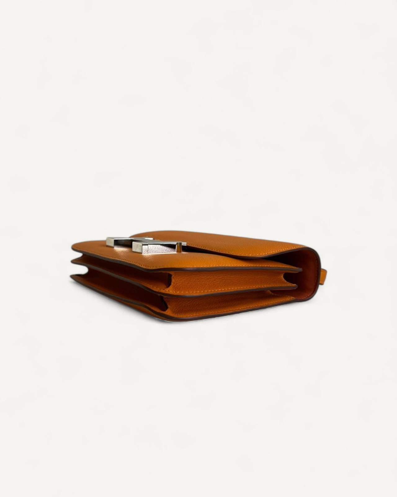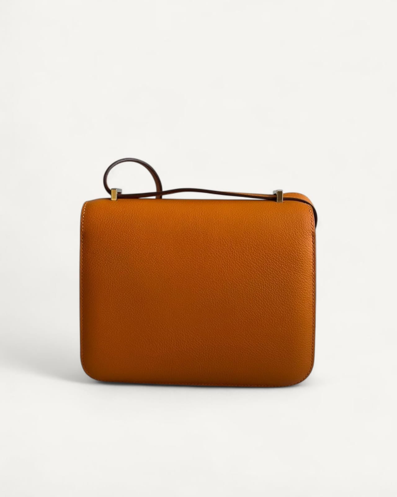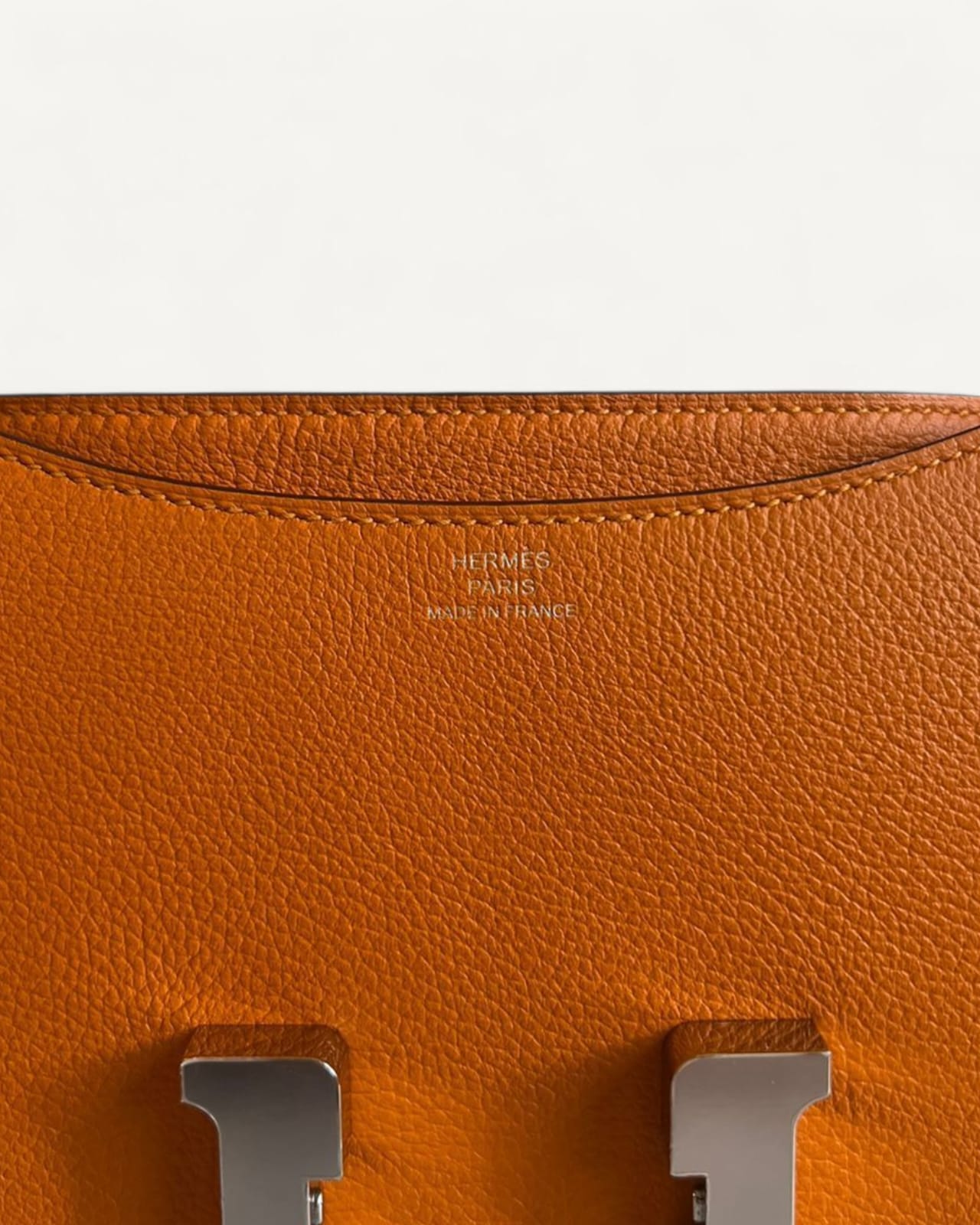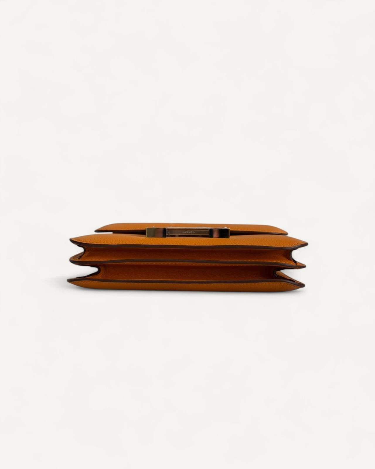 Bolsa Hermès Constance 18 Evercolor Verso Abricot/Terre Battue com Ferragens Palladium