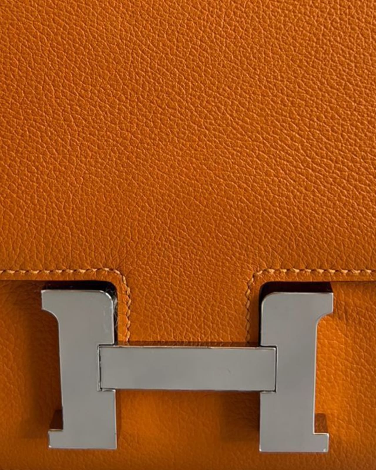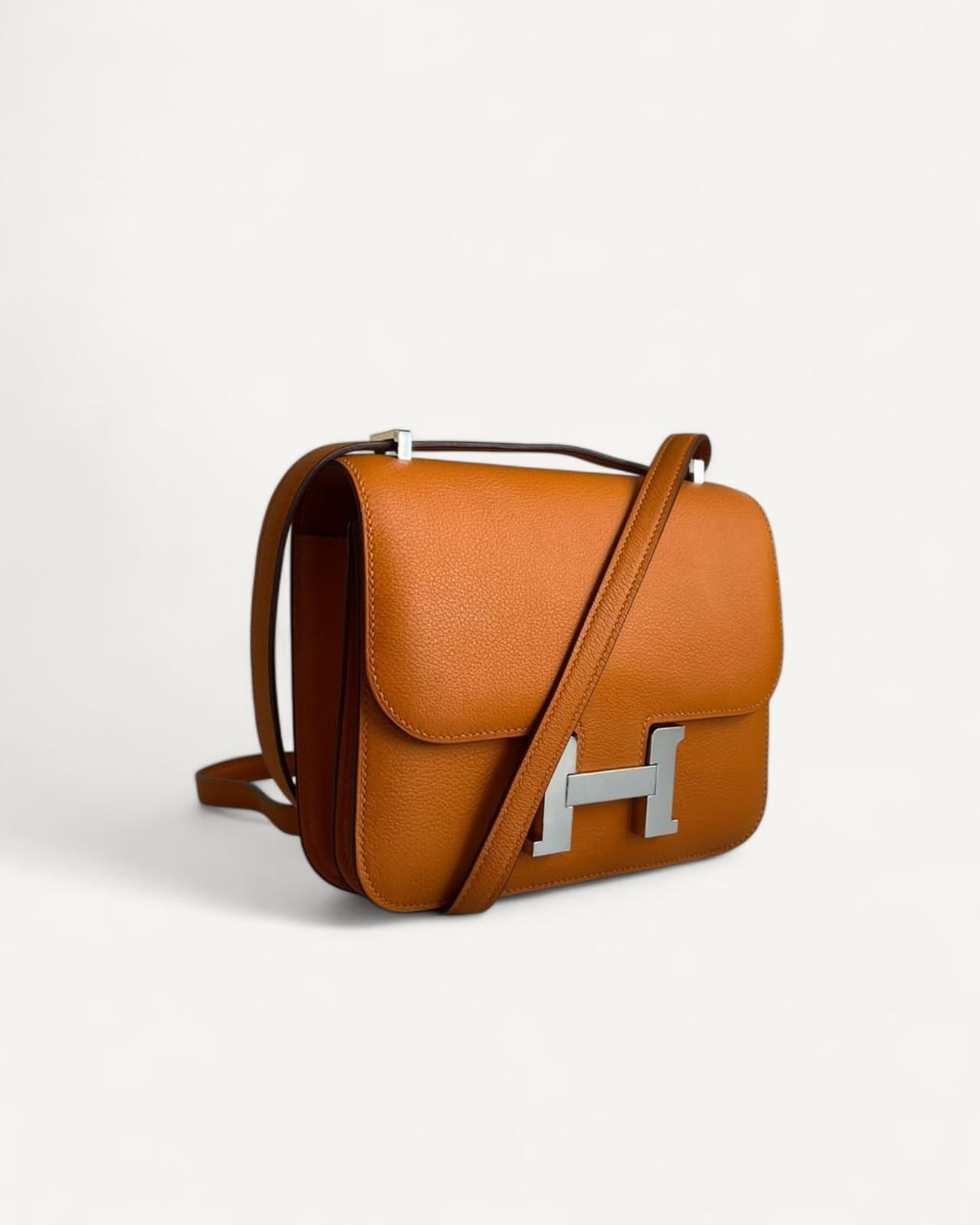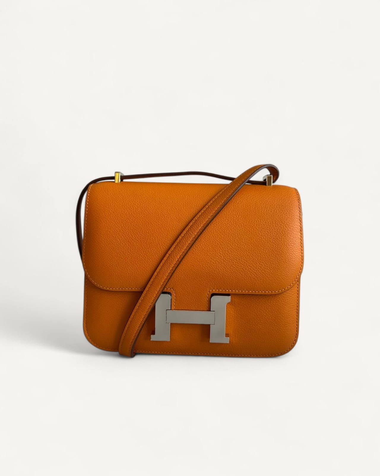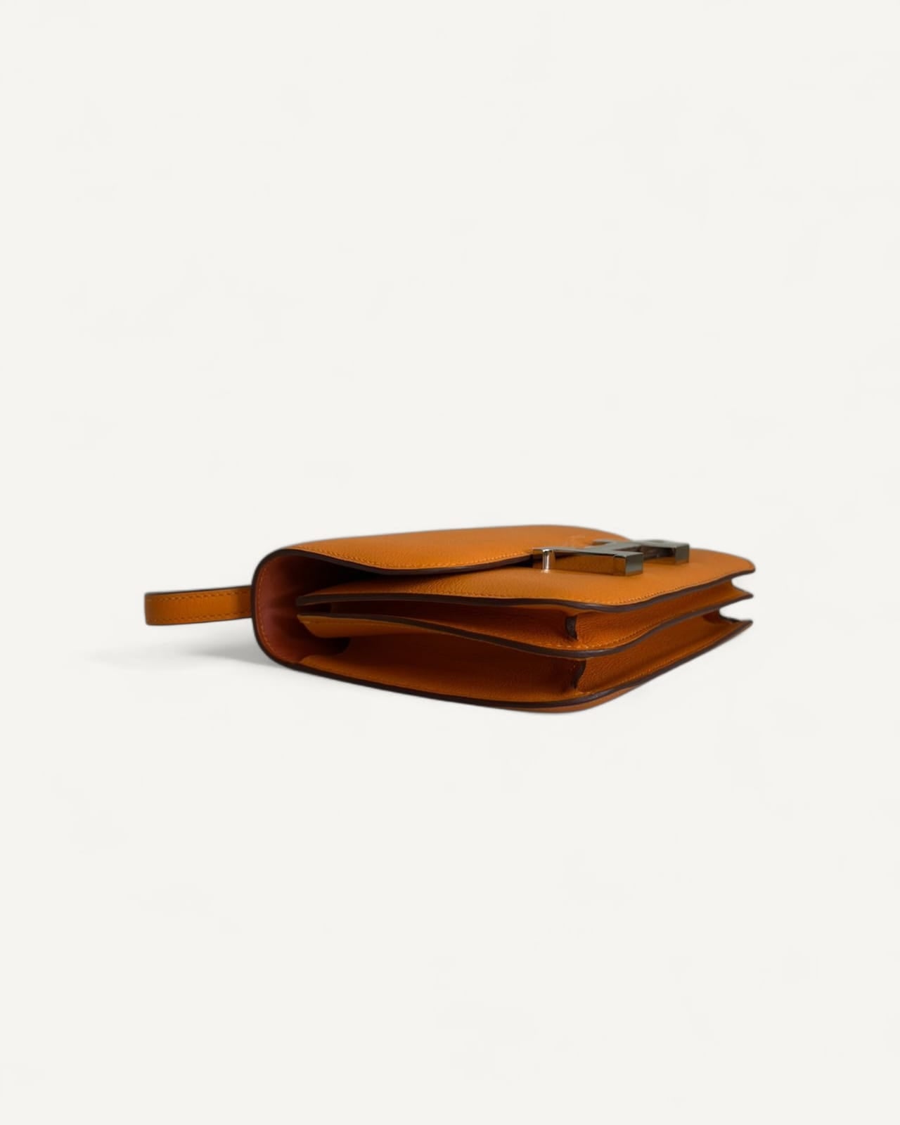 Bolsa Hermès Constance 18 Evercolor Verso Abricot/Terre Battue com Ferragens Palladium