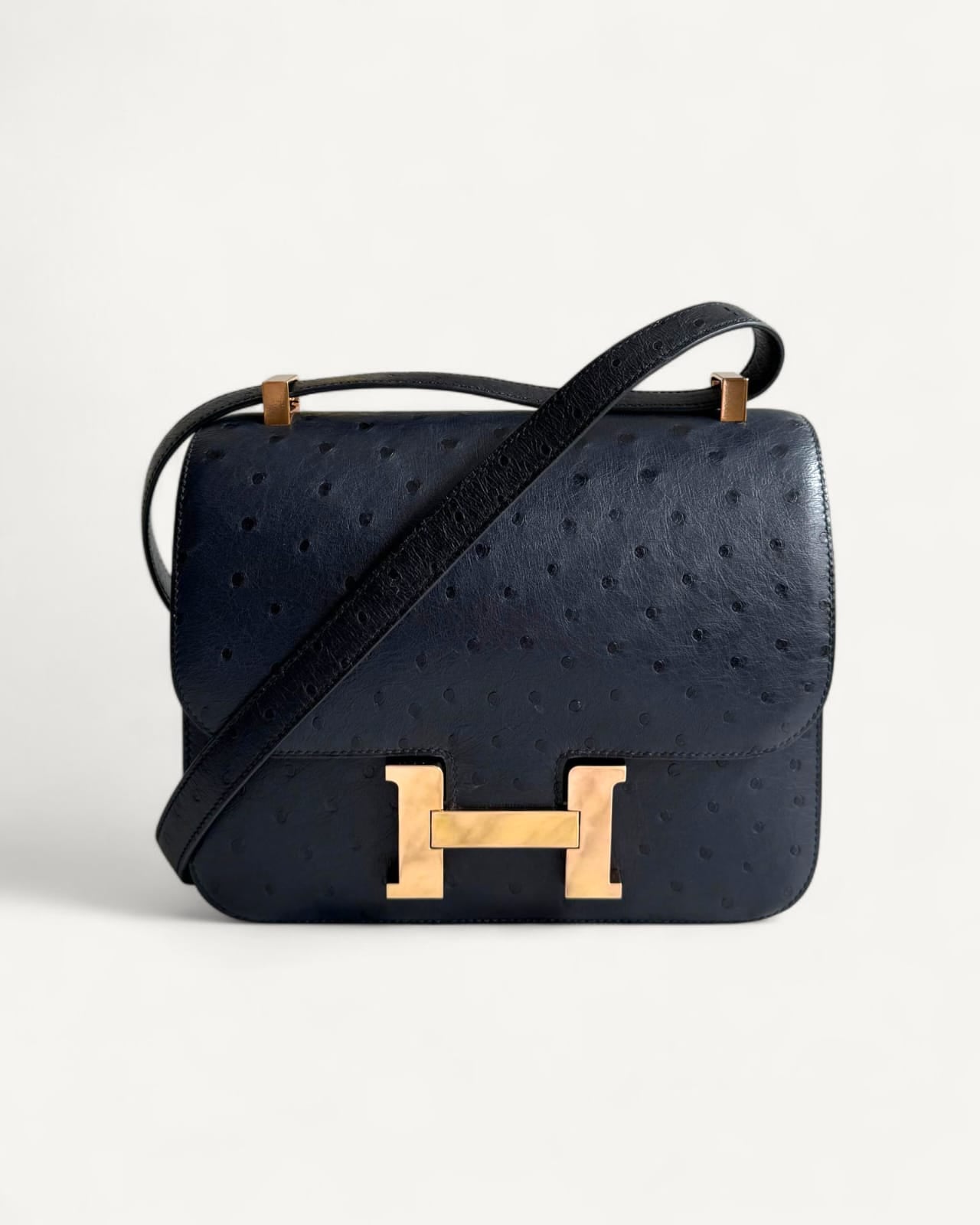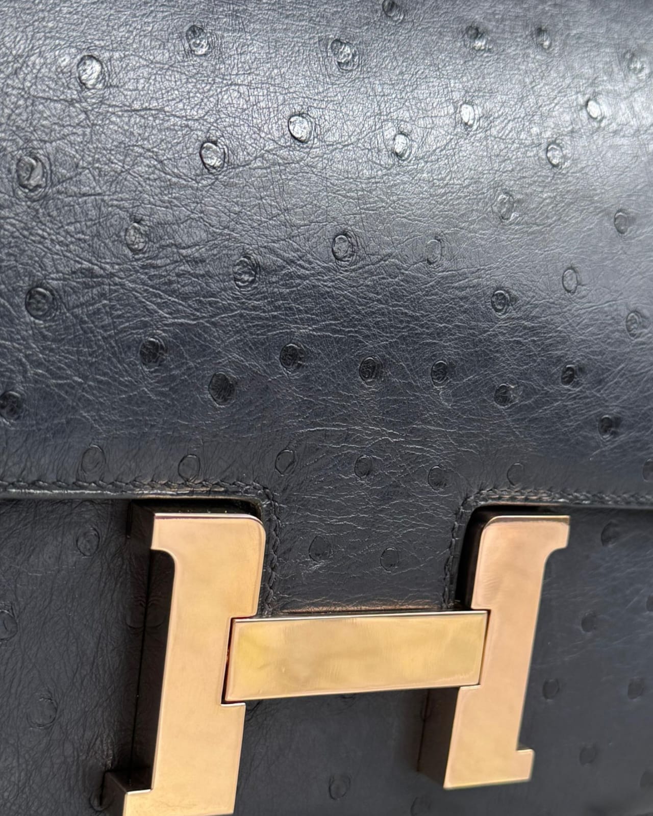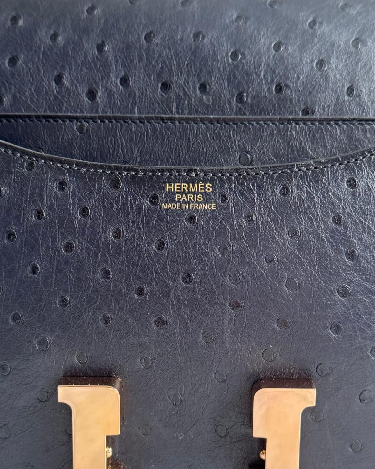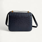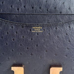 Bolsa Hermès Constance 24 Ostrich Bleu Caban com Ferragens Rosê Gold