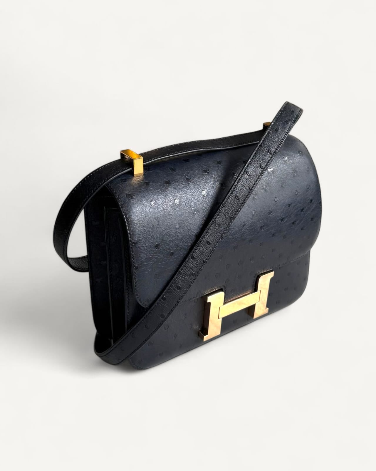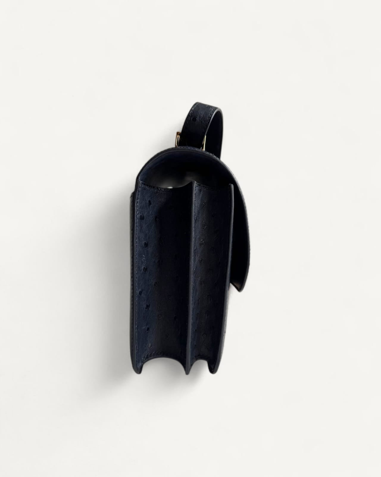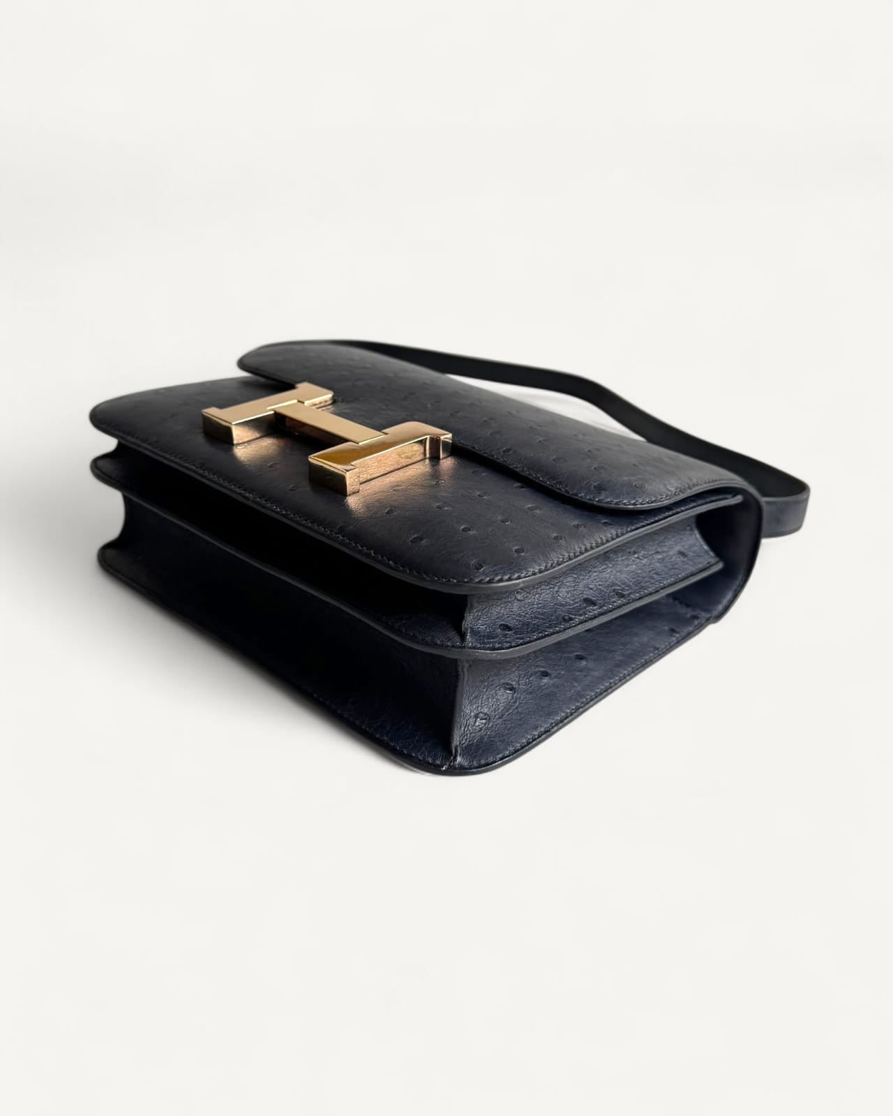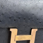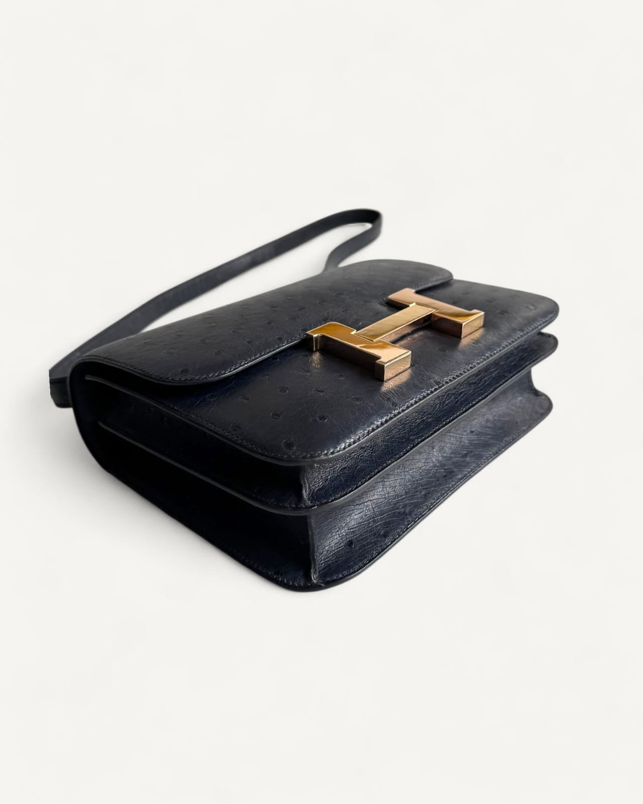 Bolsa Hermès Constance 24 Ostrich Bleu Caban com Ferragens Rosê Gold