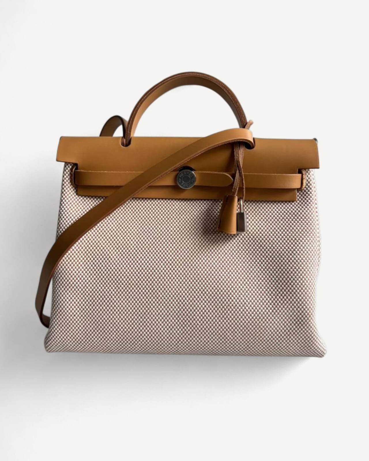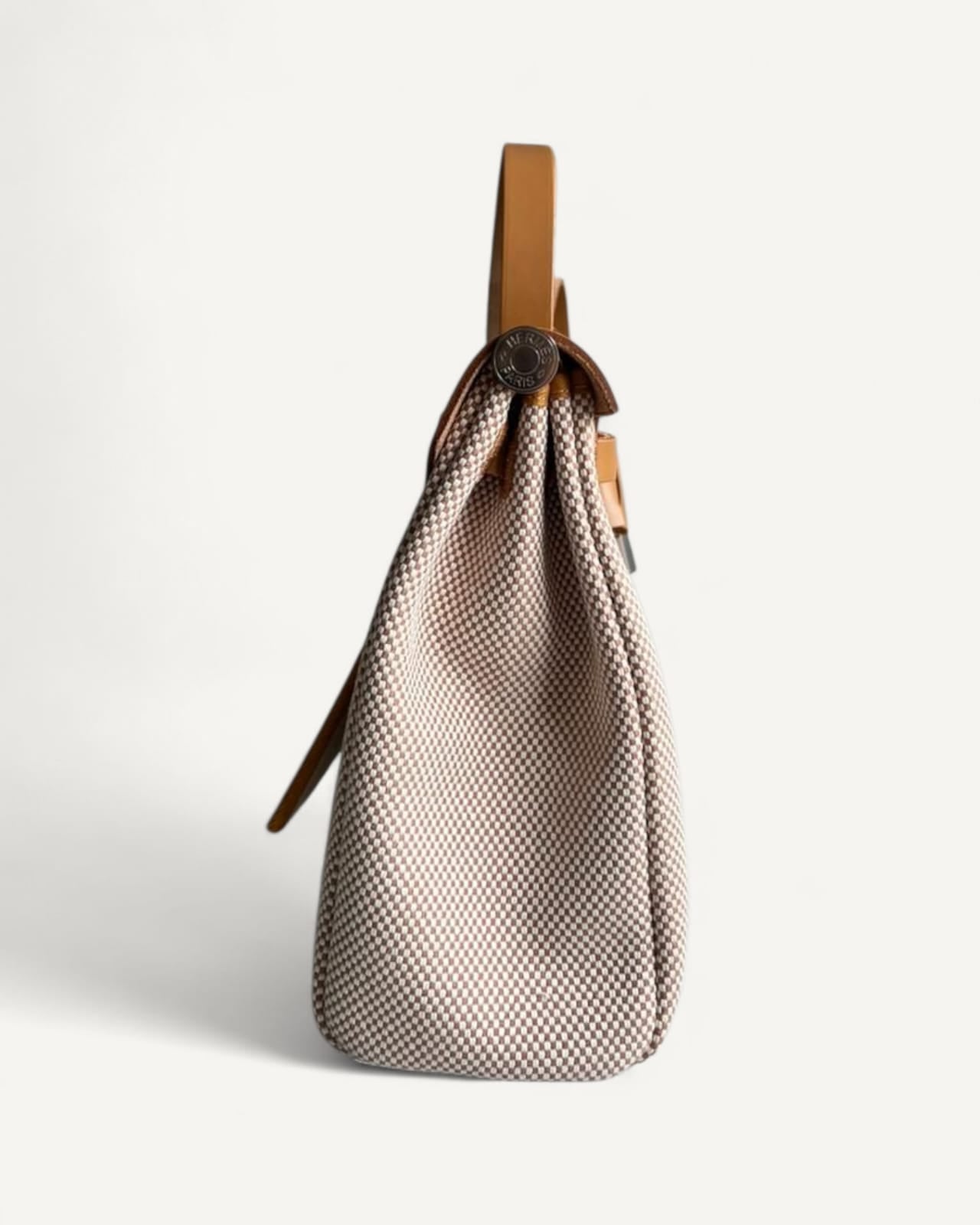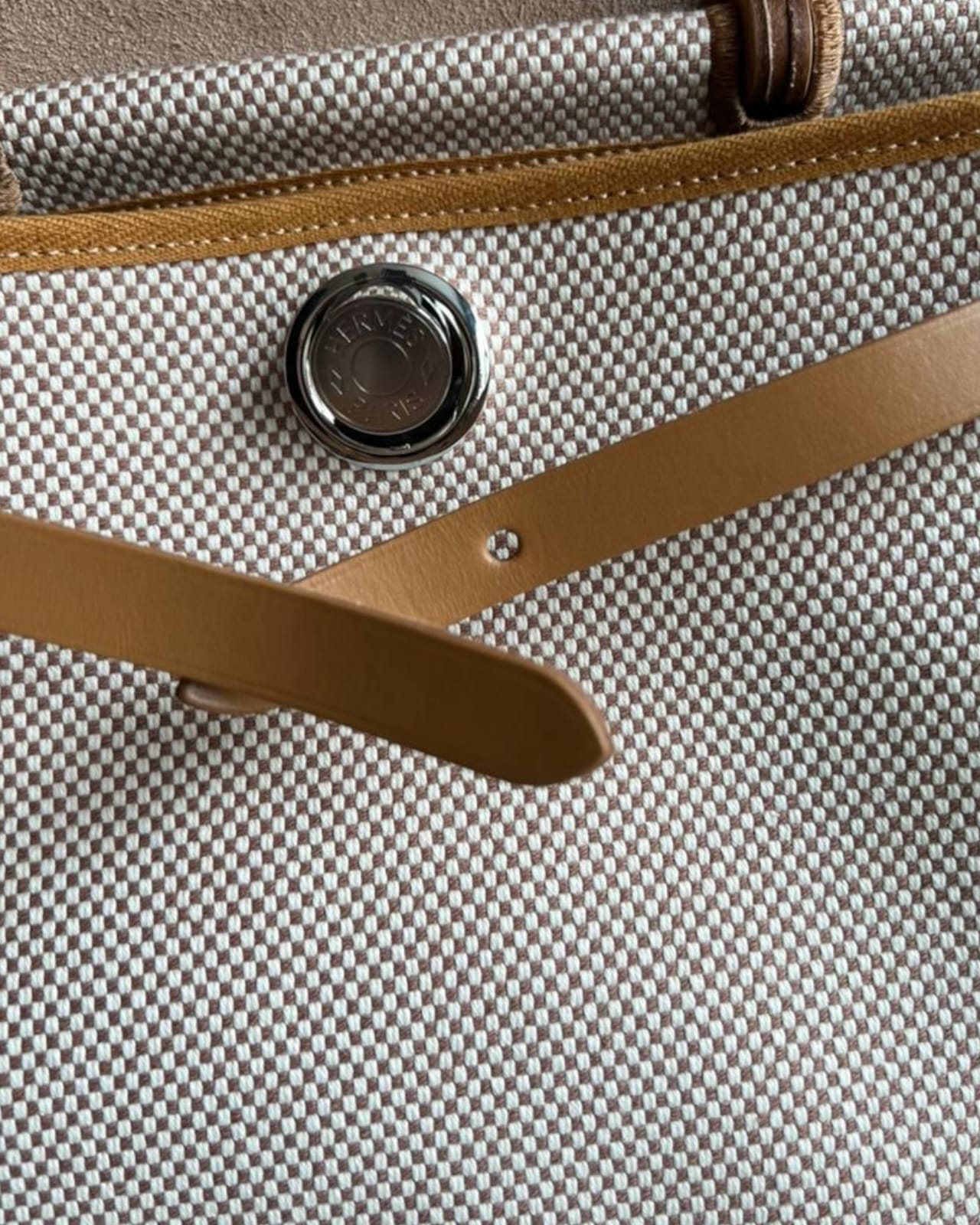 Bolsa Hermès Herbag 31 Ecru Viking Criss Toile com Ferragens Palladium