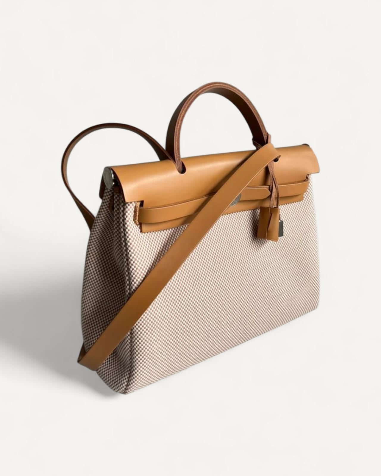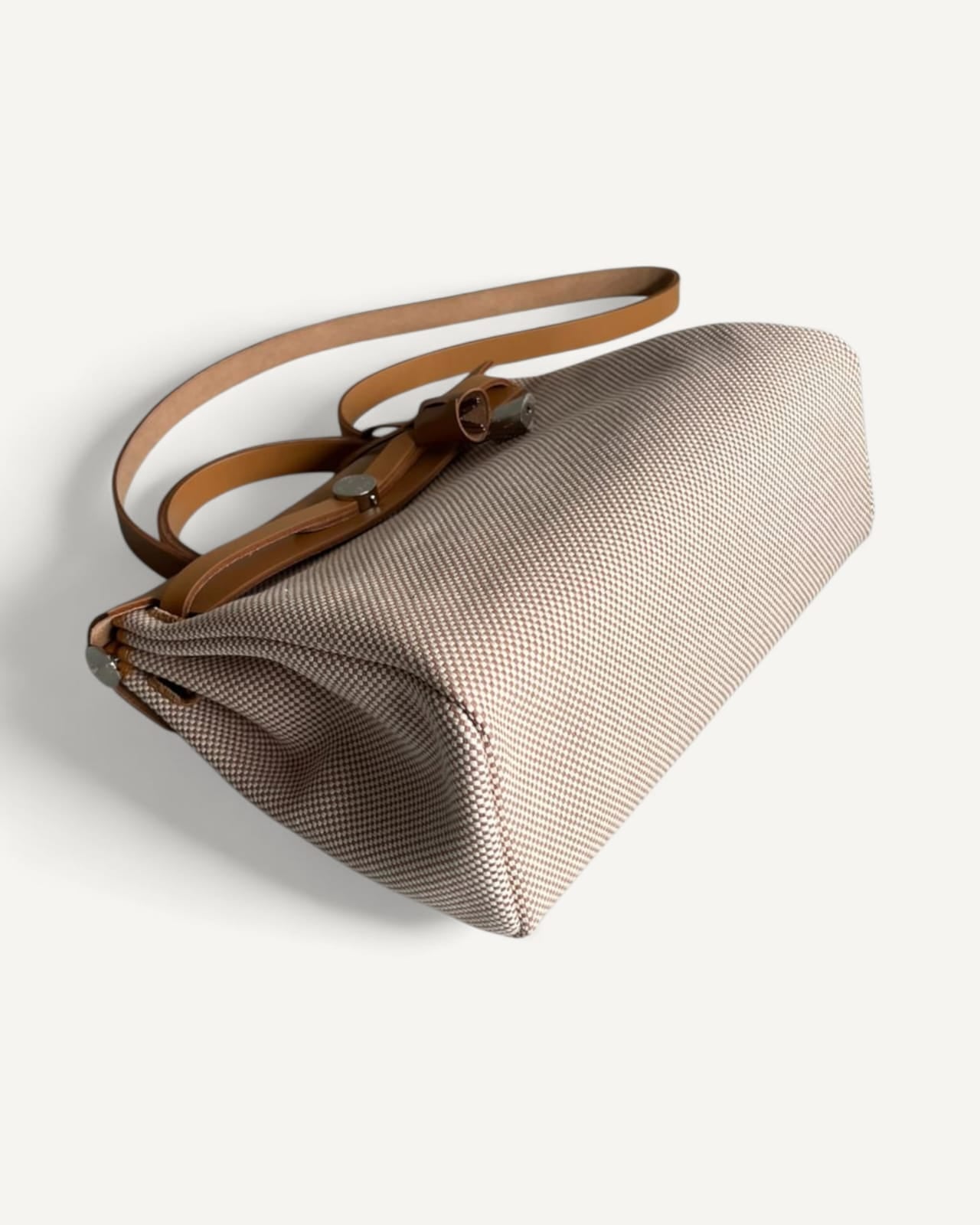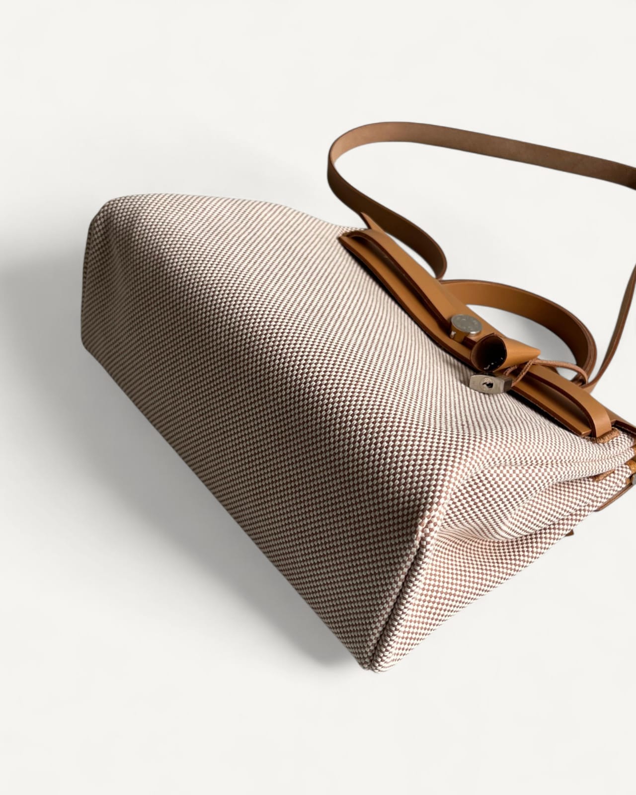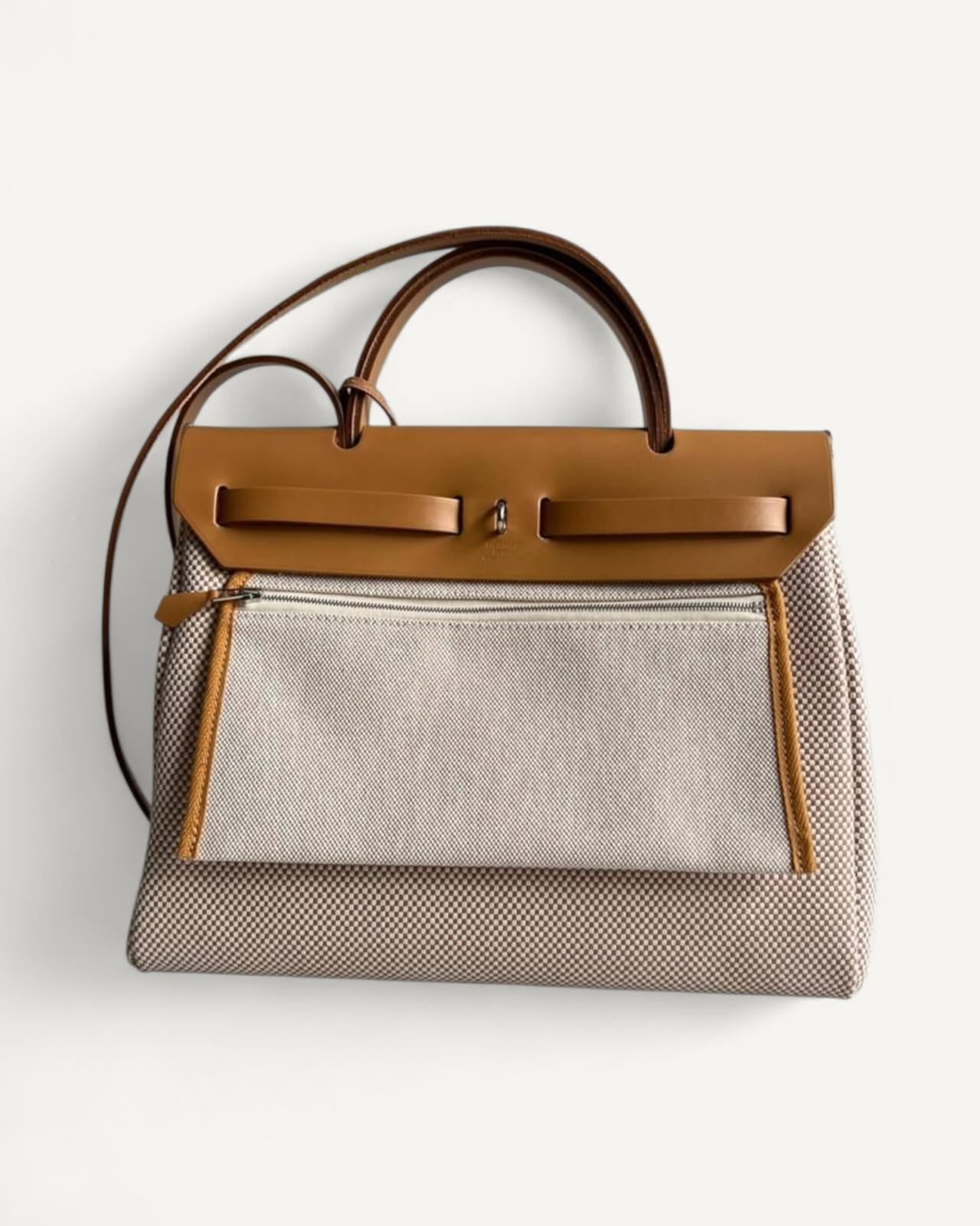 Bolsa Hermès Herbag 31 Ecru Viking Criss Toile com Ferragens Palladium