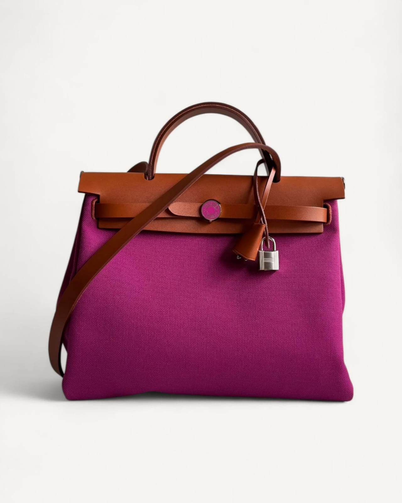 Bolsa Hermès Herbag 31 Rose Pourpre com Ferragens Palladium