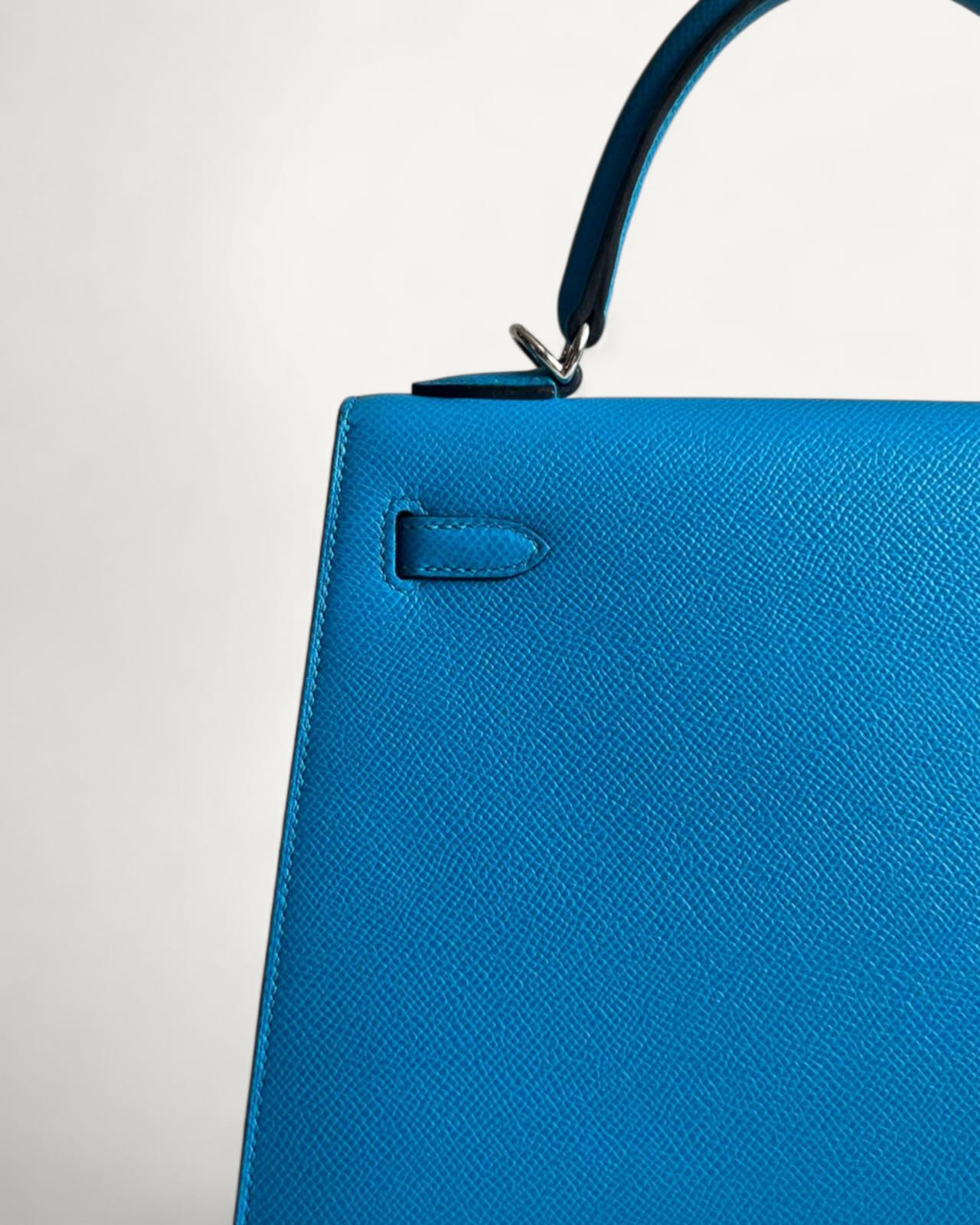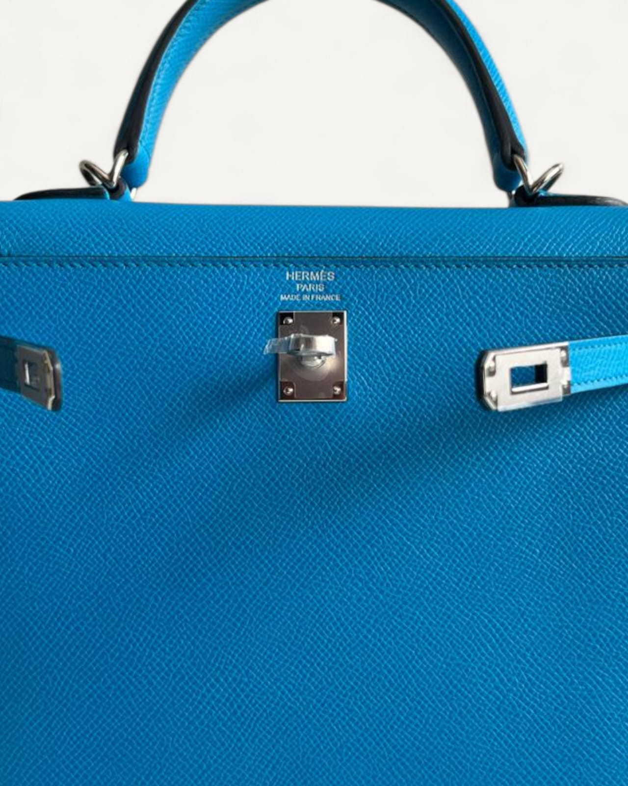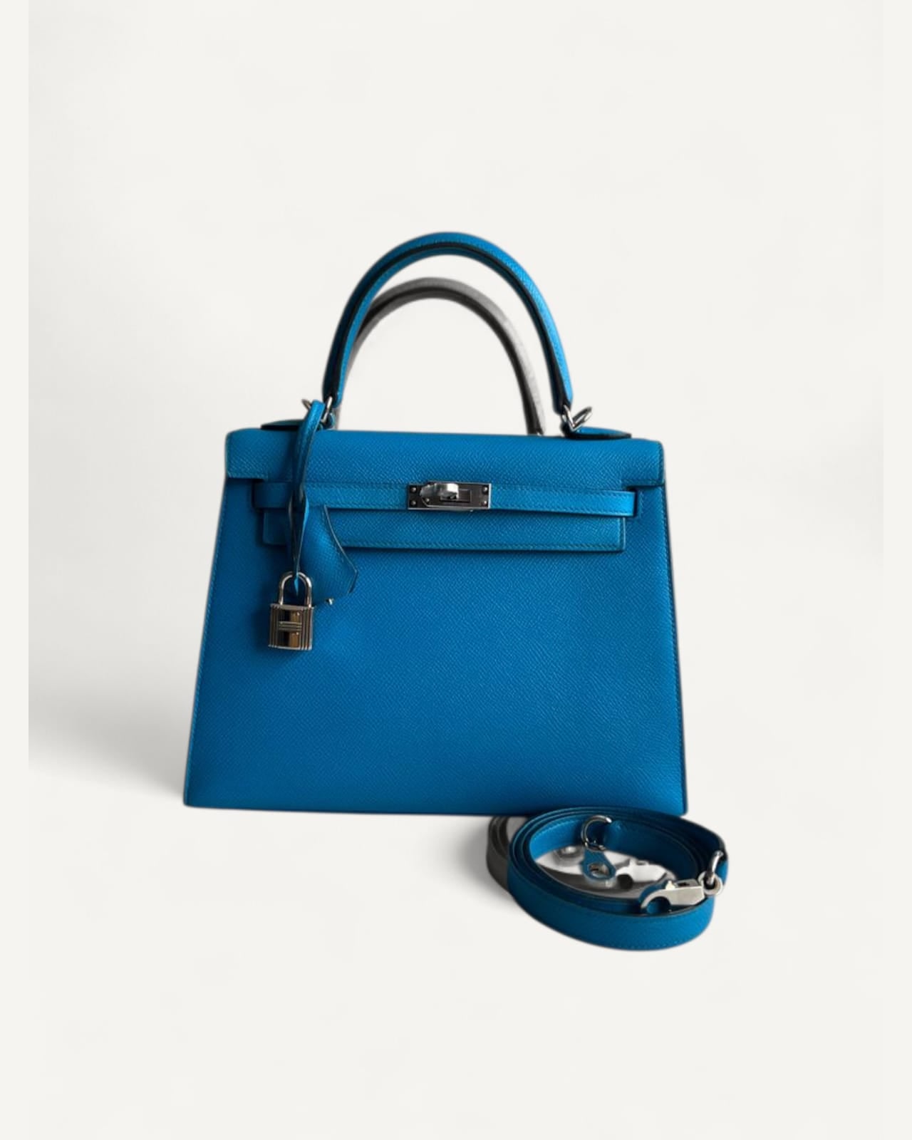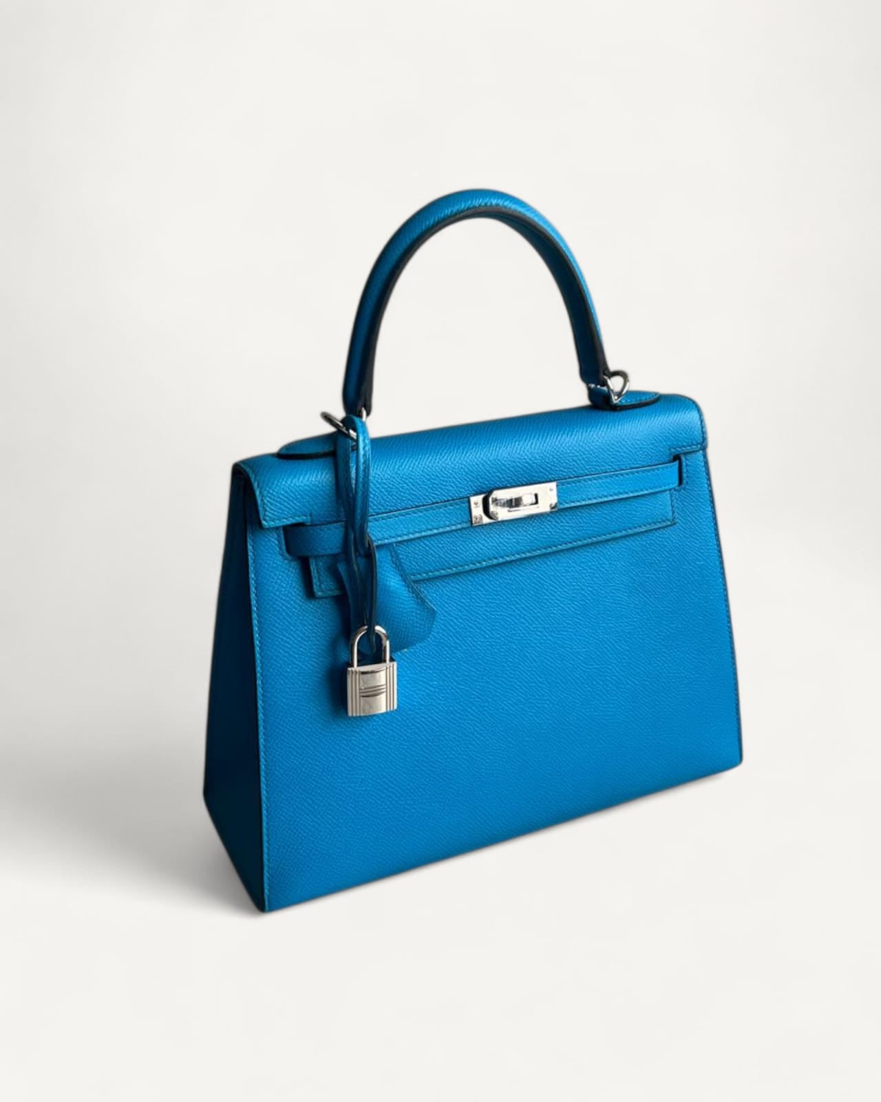 Bolsa Hermès Kelly 25 Sellier Bleu Zanzibar com Ferragens Palladium - Stamp Y