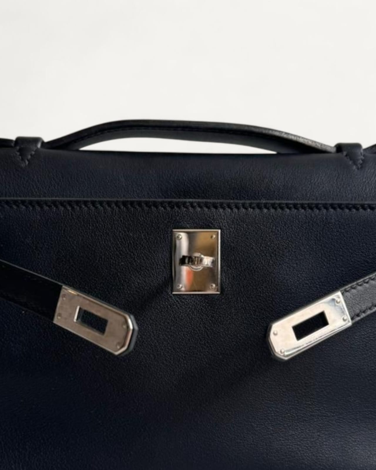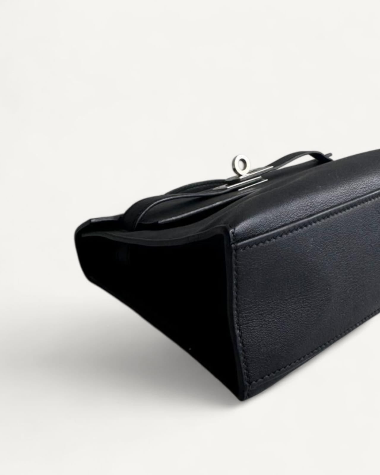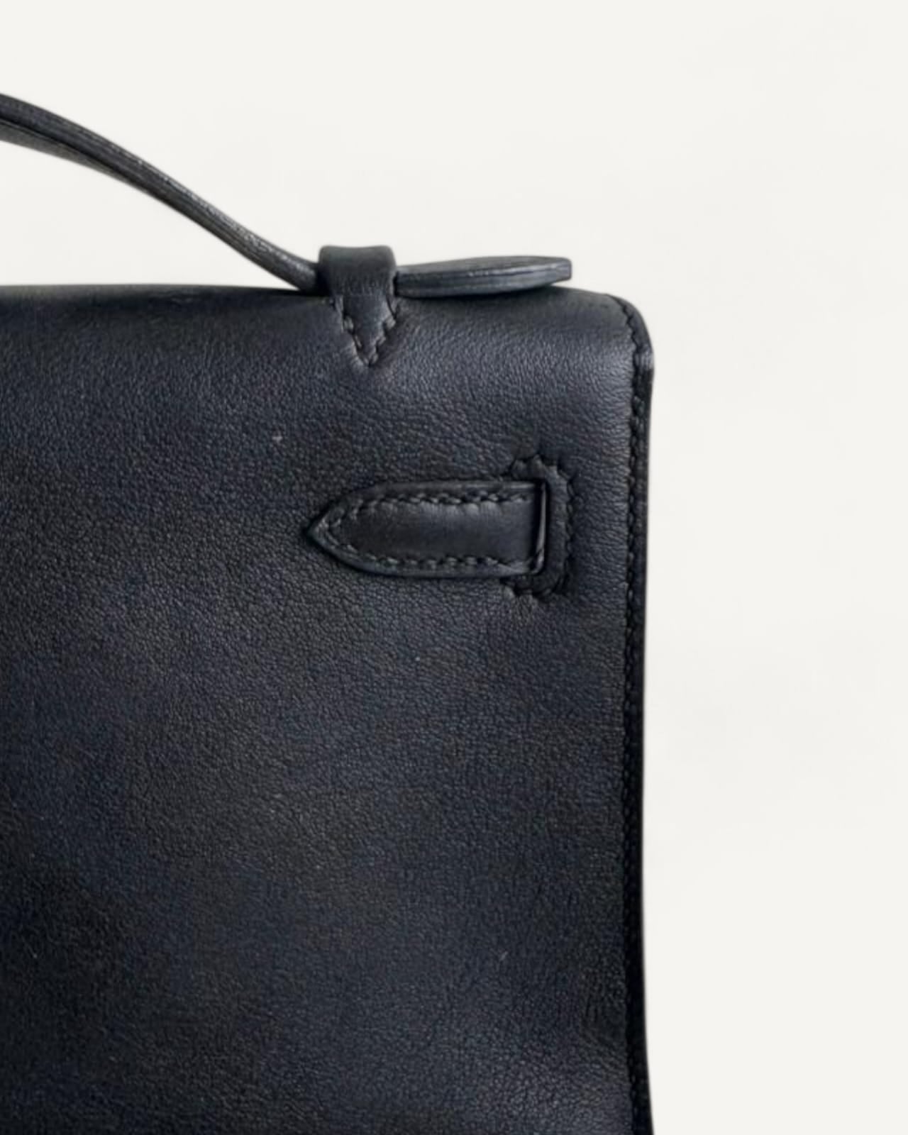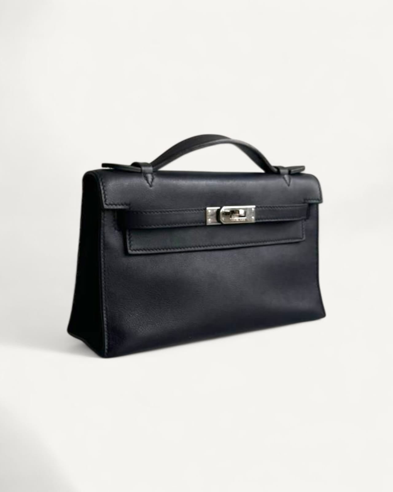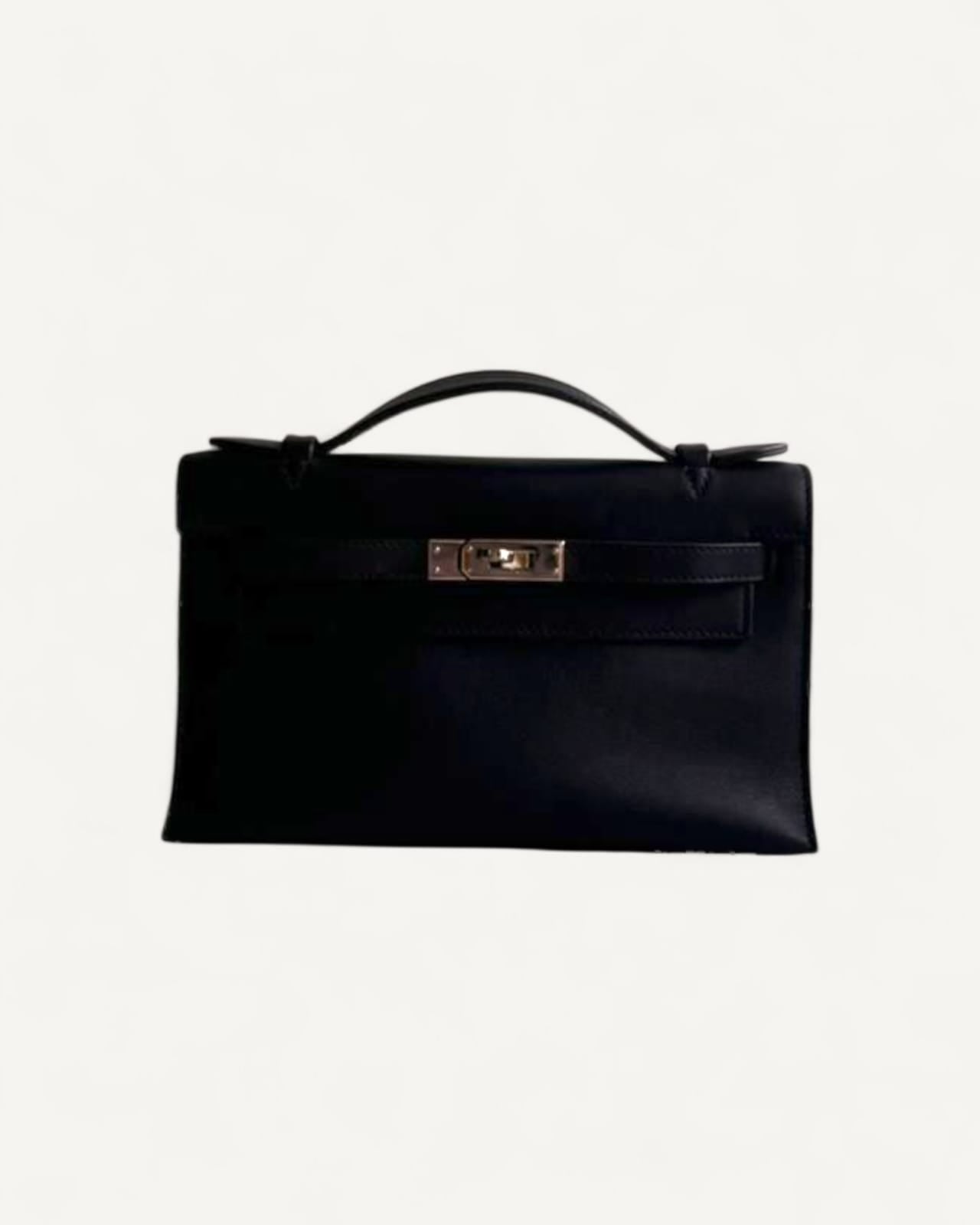 Bolsa Hermès Kelly Pochette Noir com Ferragens Palladium