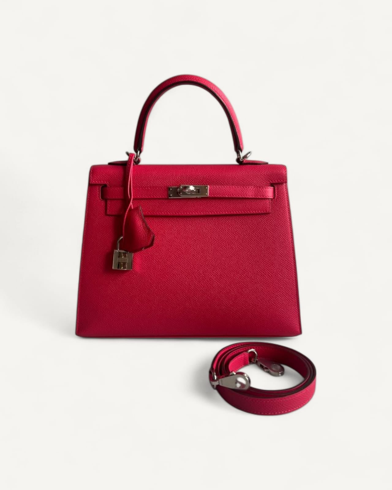 Bolsa Hermès Kelly Sellier 25 Rose Extrême com Ferragens Palladium