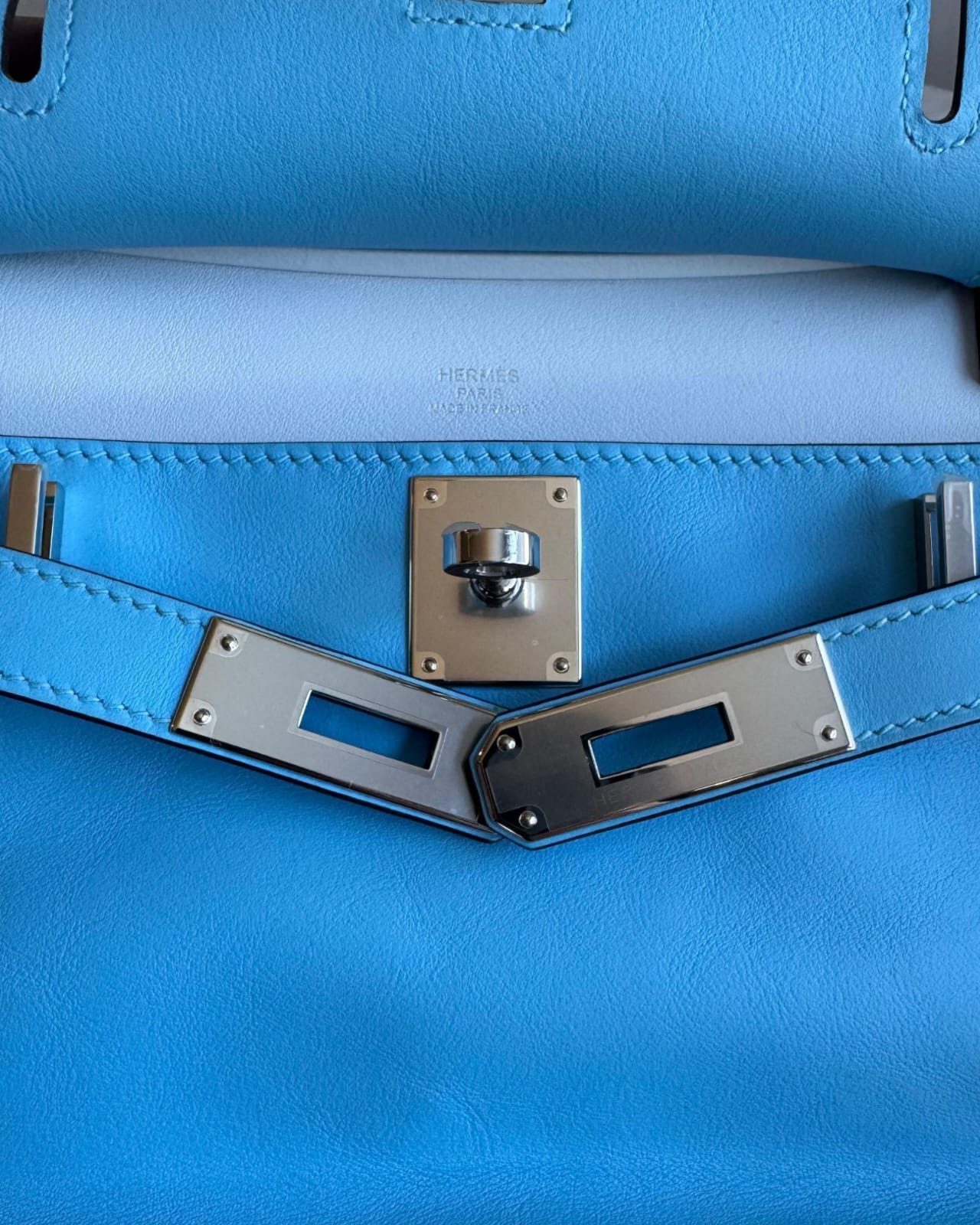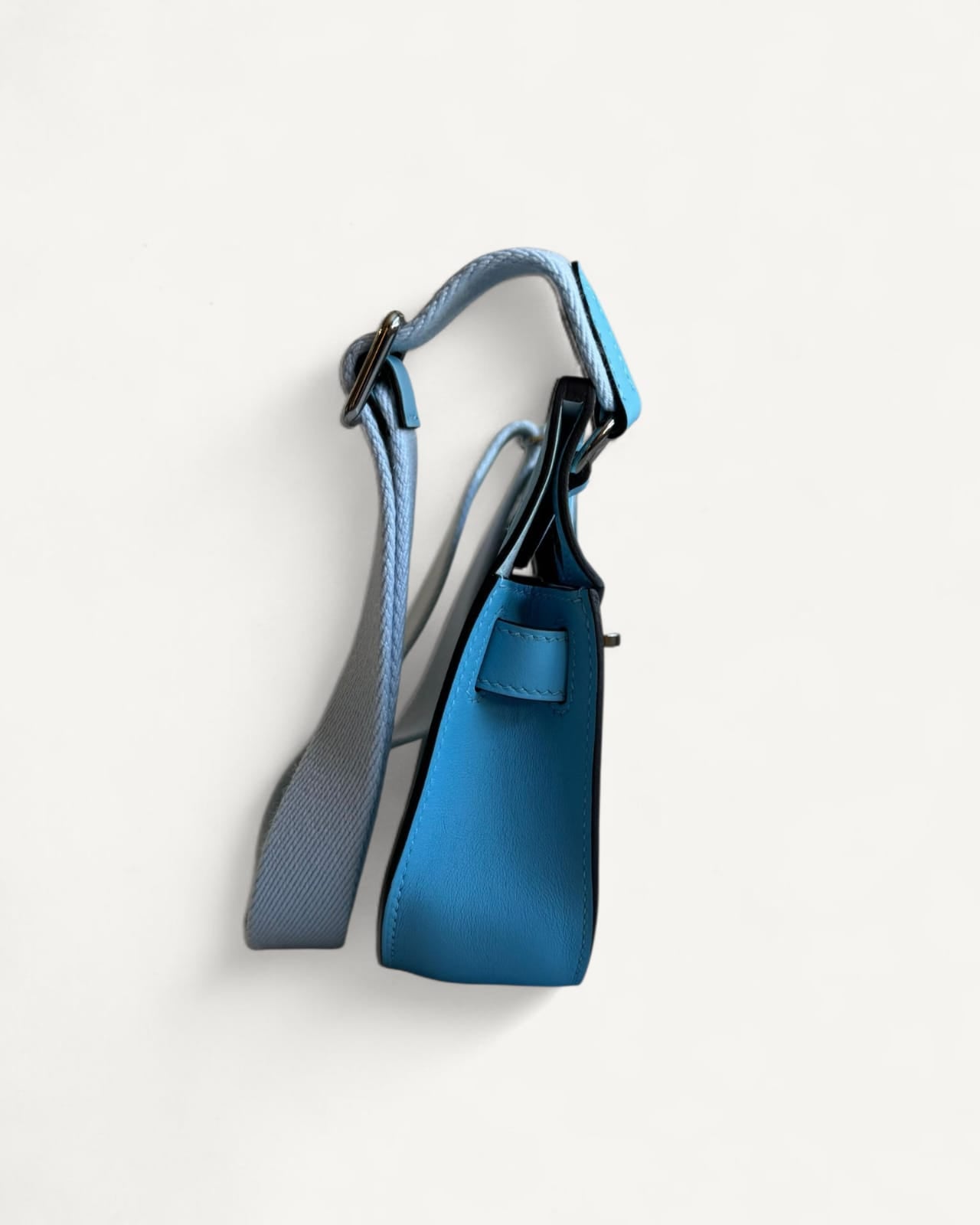 Bolsa Hermès Mini Jypsière Clemence Bleu Jeans Ferragens Palladium
