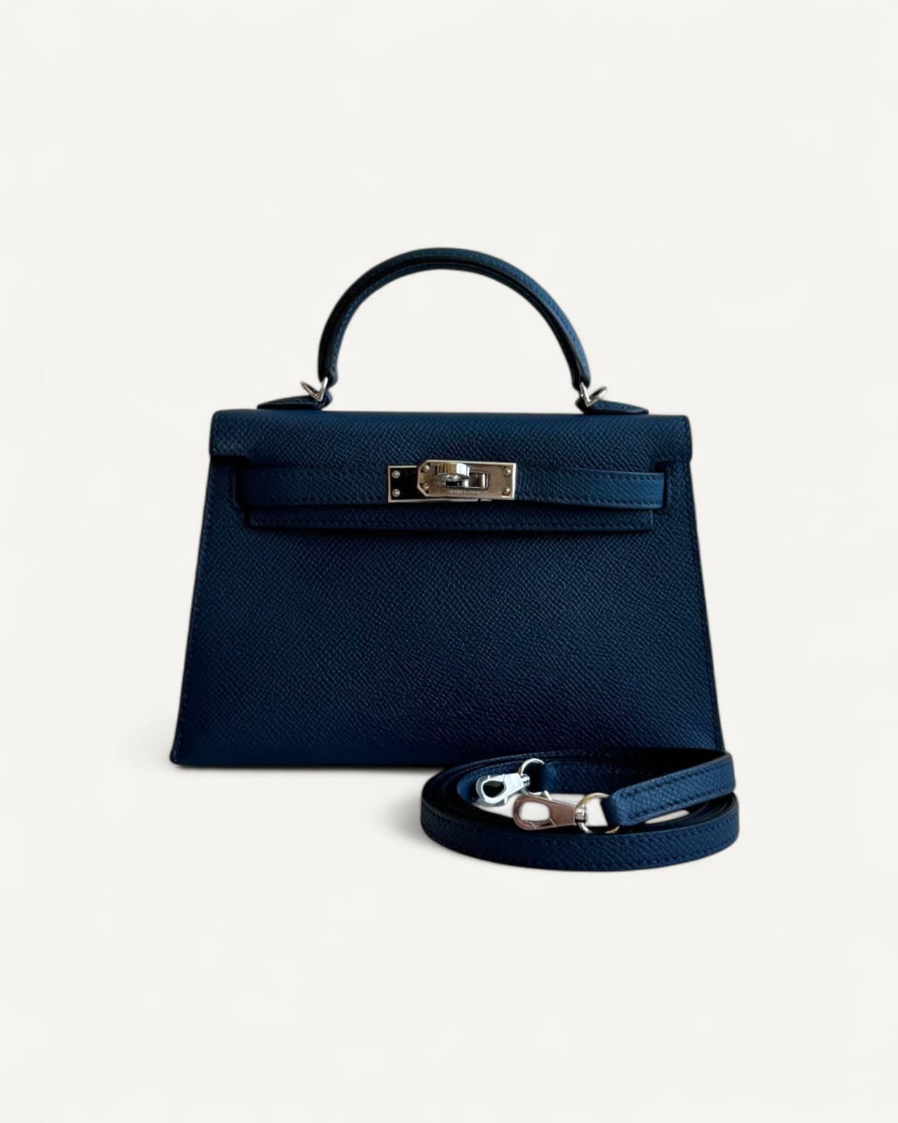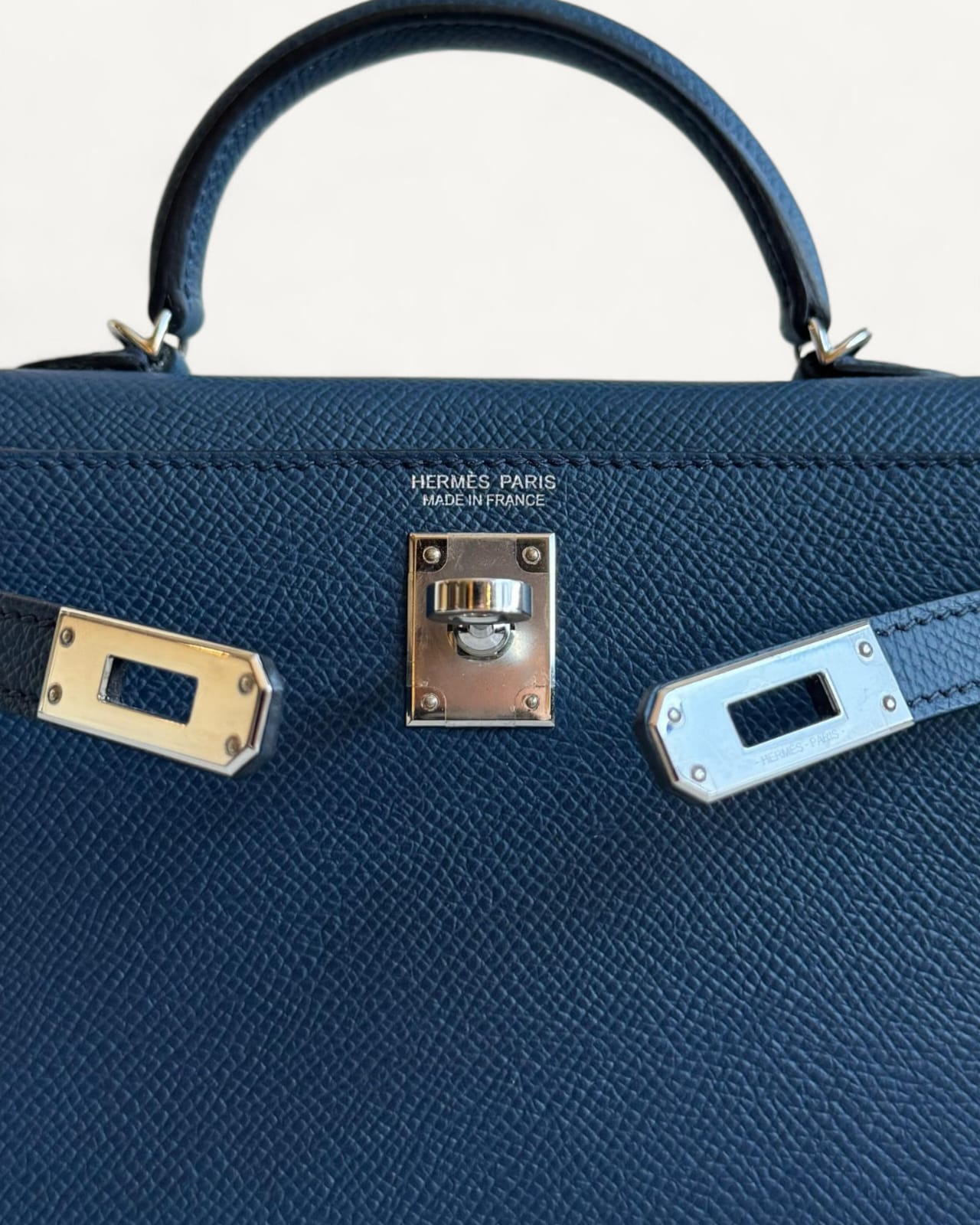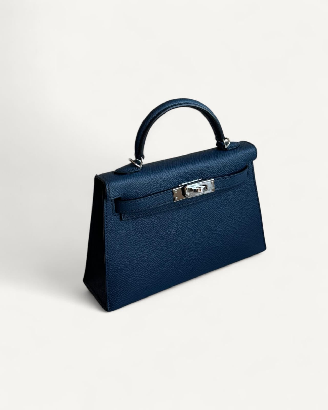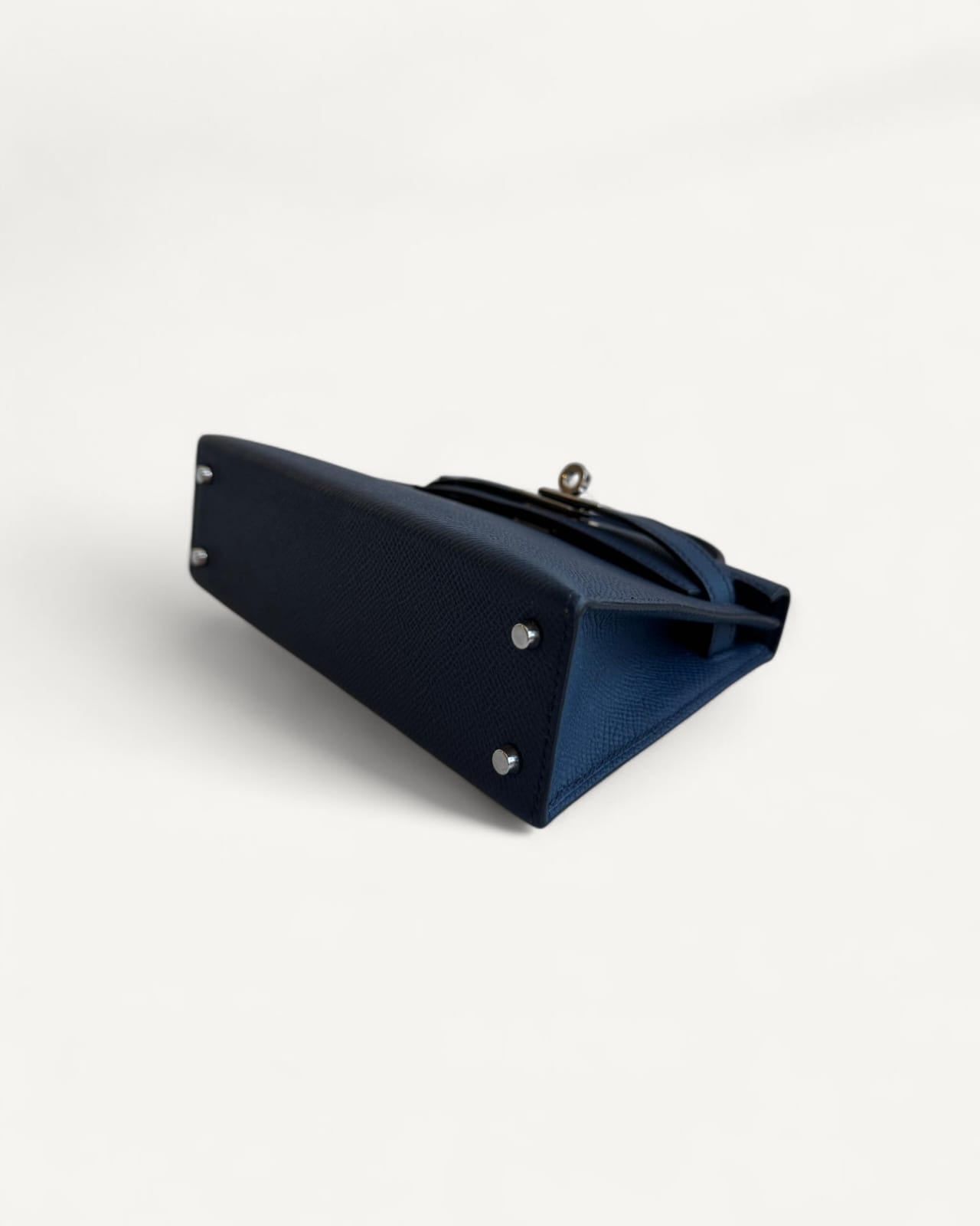 Bolsa Hermès Mini Kelly Epsom Bleu de Prusse com Ferragens Palladium