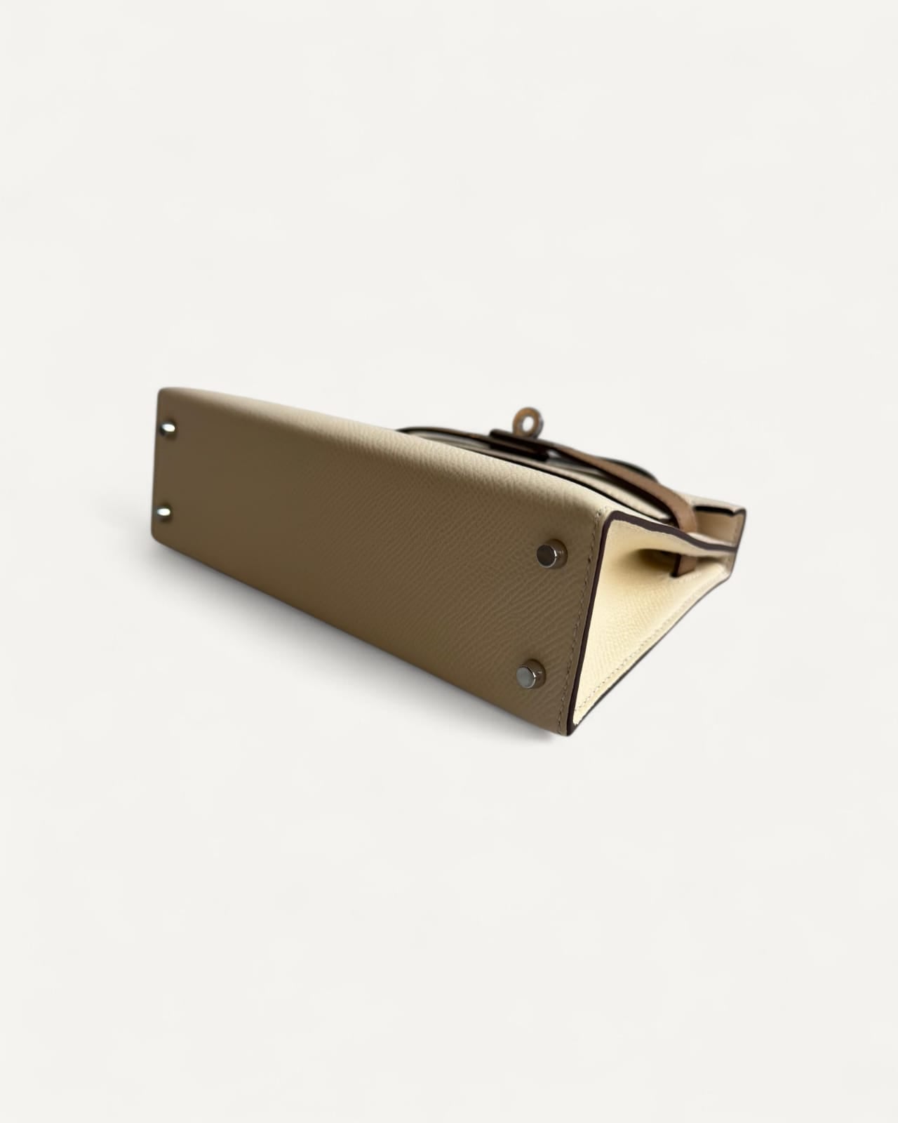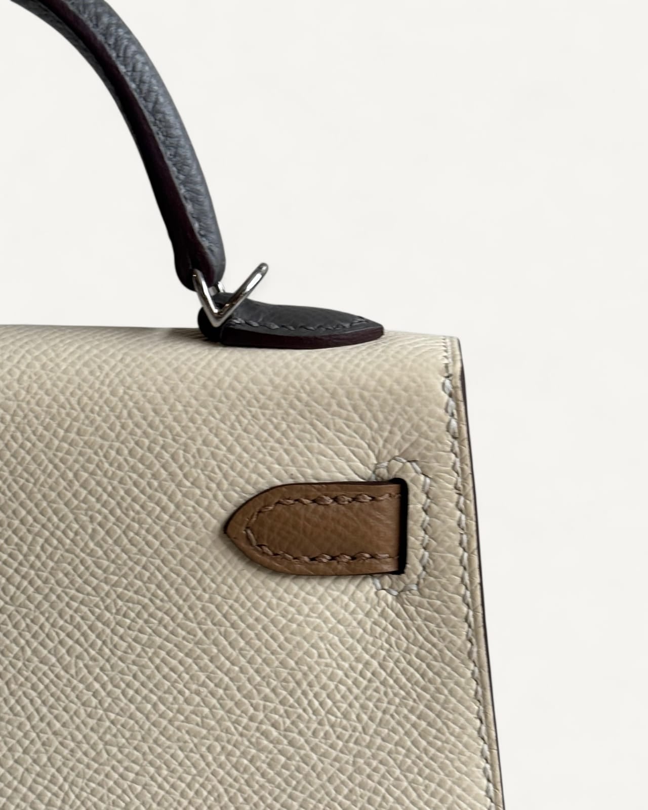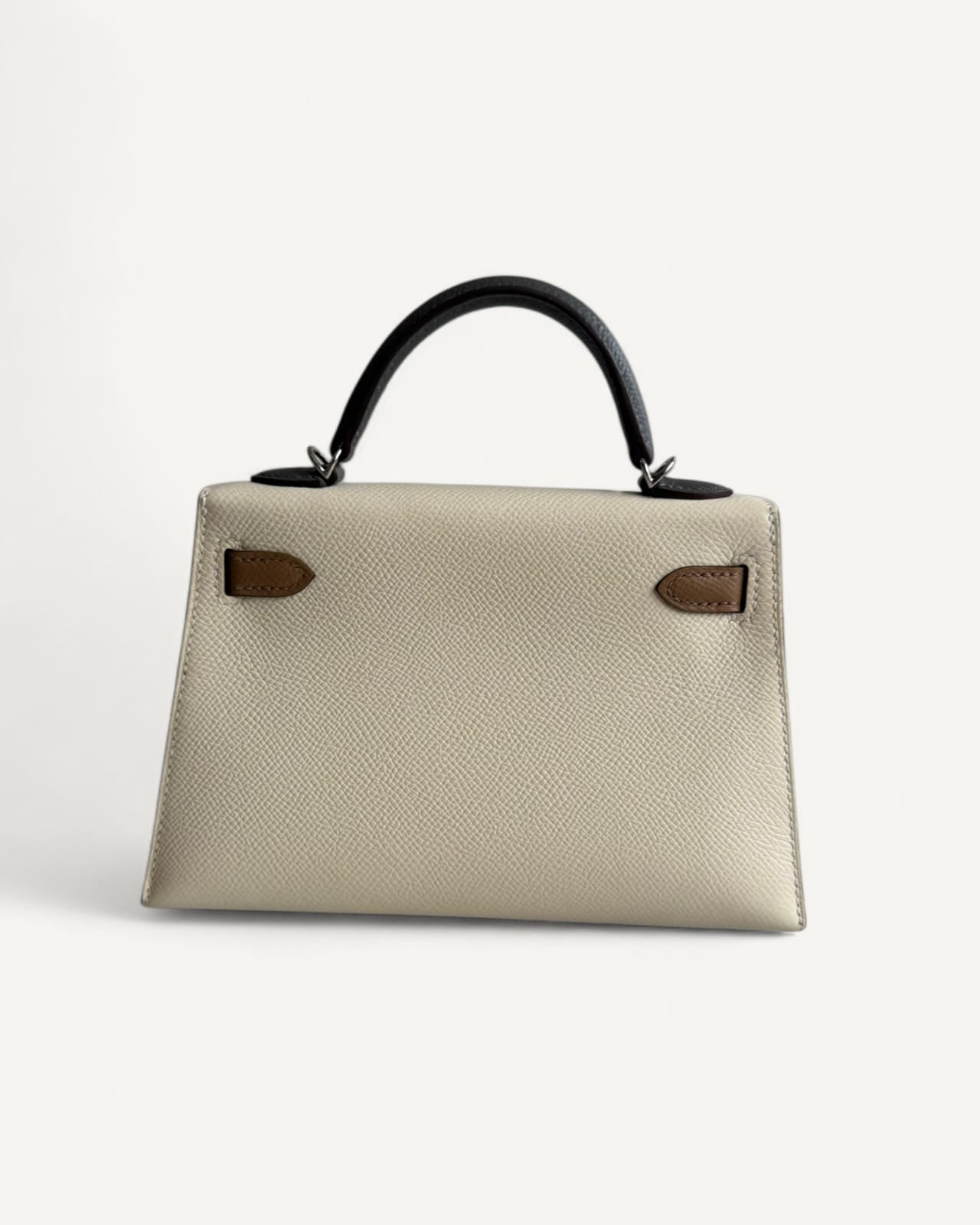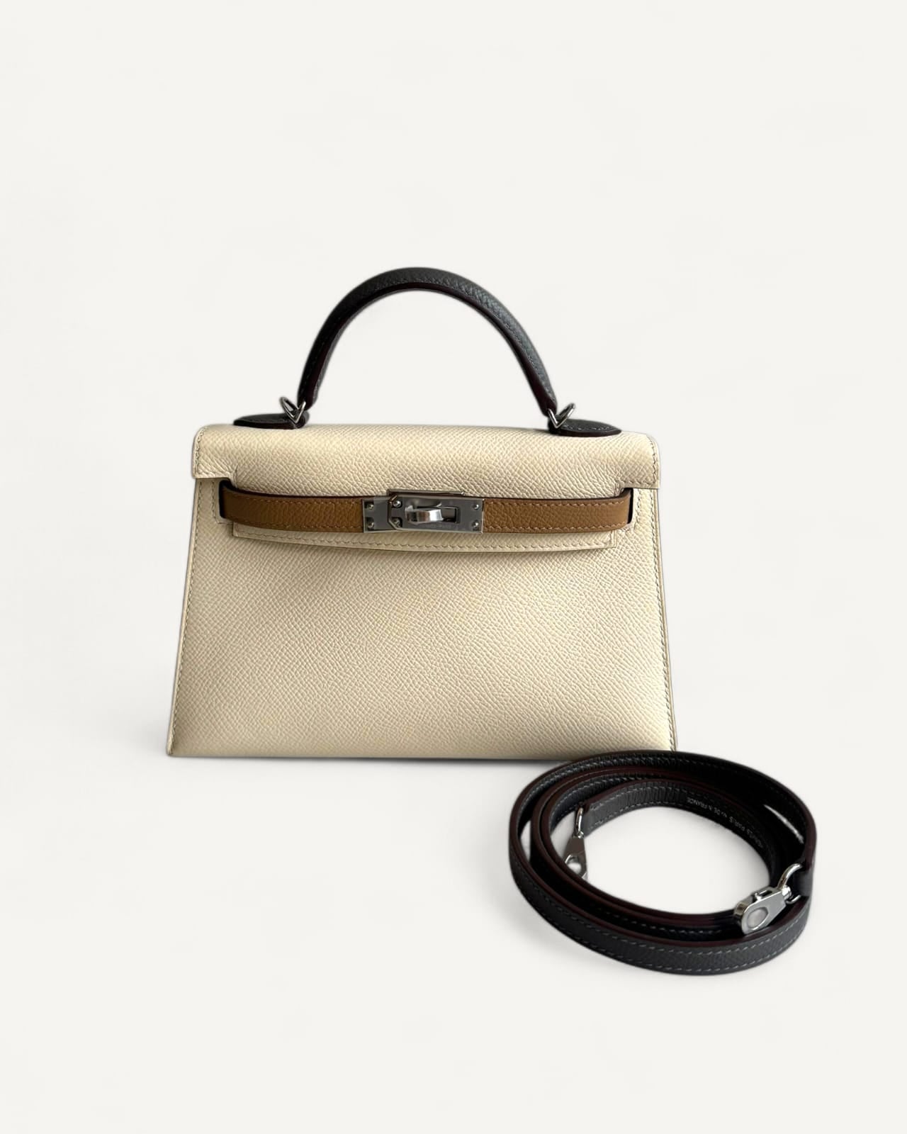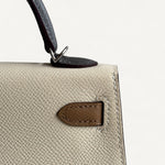 Bolsa Hermès Mini Kelly Epsom Tricolor Nata/ Chai / Gris Meyer com Ferragens Palladium