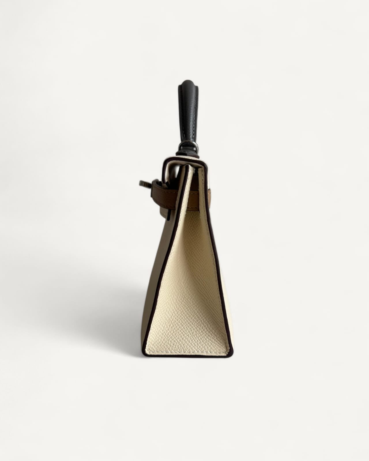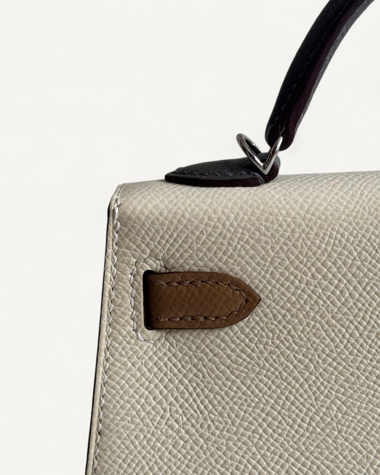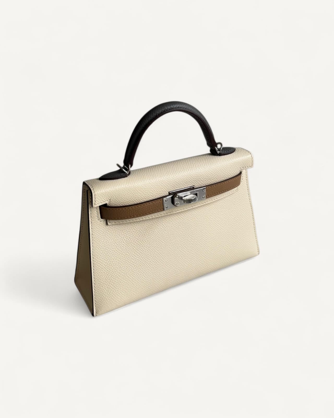 Bolsa Hermès Mini Kelly Epsom Tricolor Nata/ Chai / Gris Meyer com Ferragens Palladium