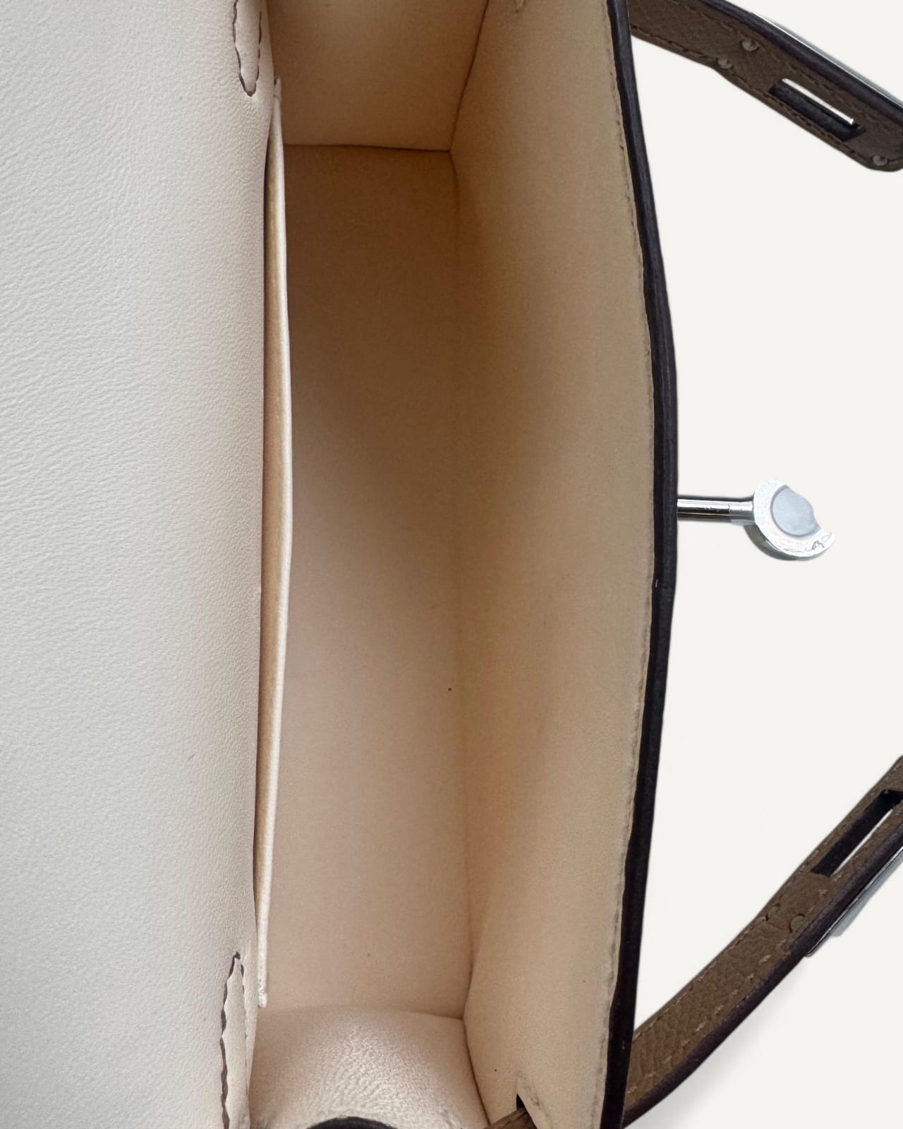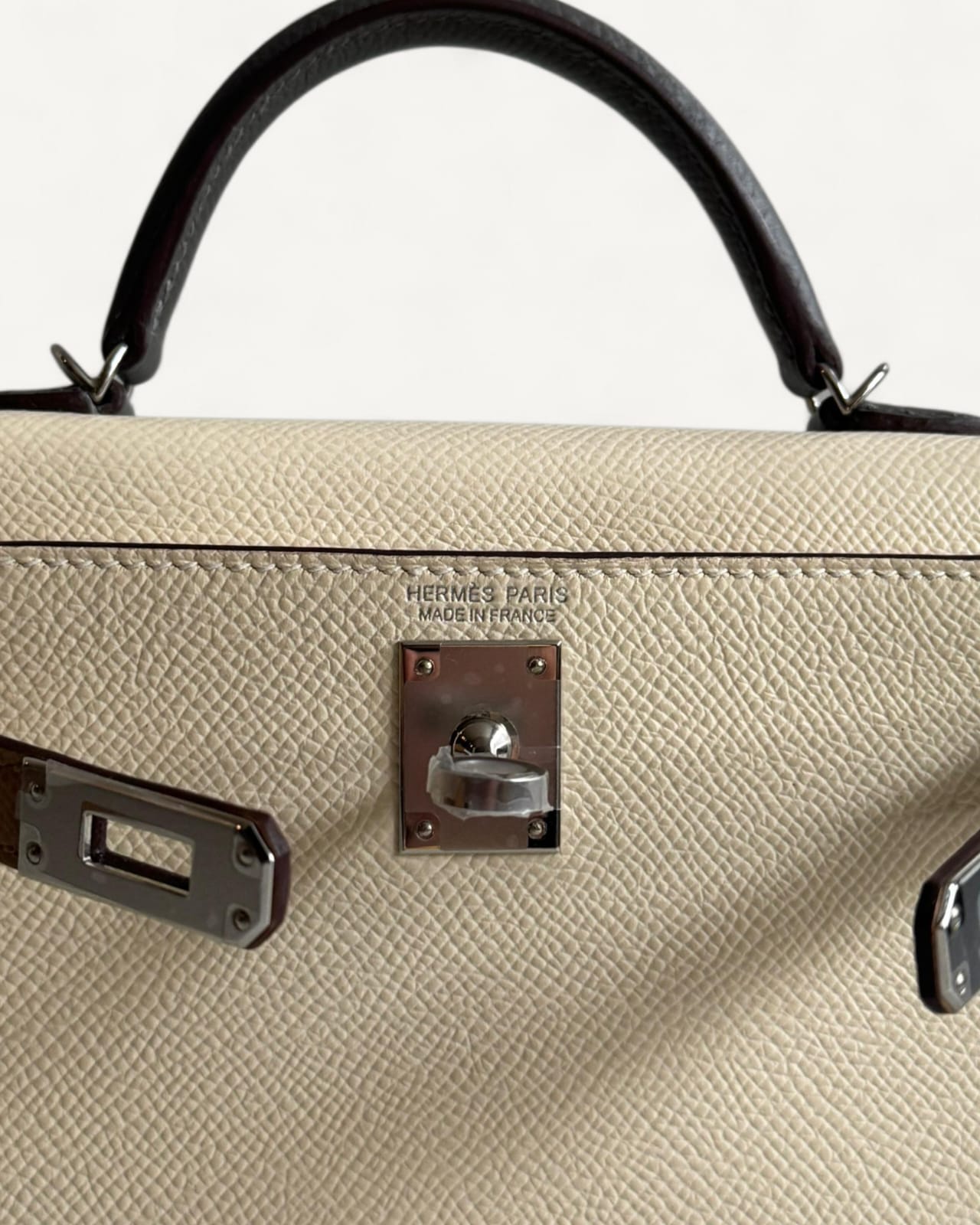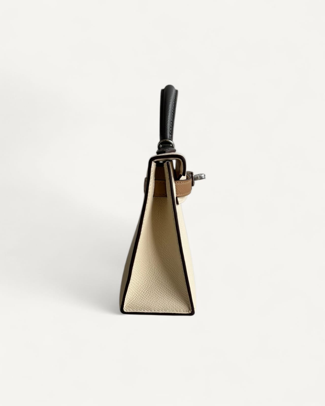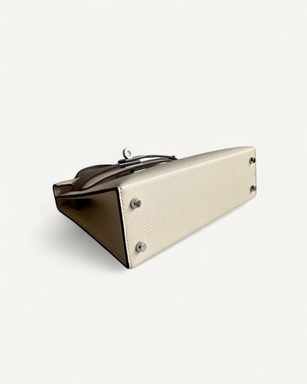 Bolsa Hermès Mini Kelly Epsom Tricolor Nata/ Chai / Gris Meyer com Ferragens Palladium
