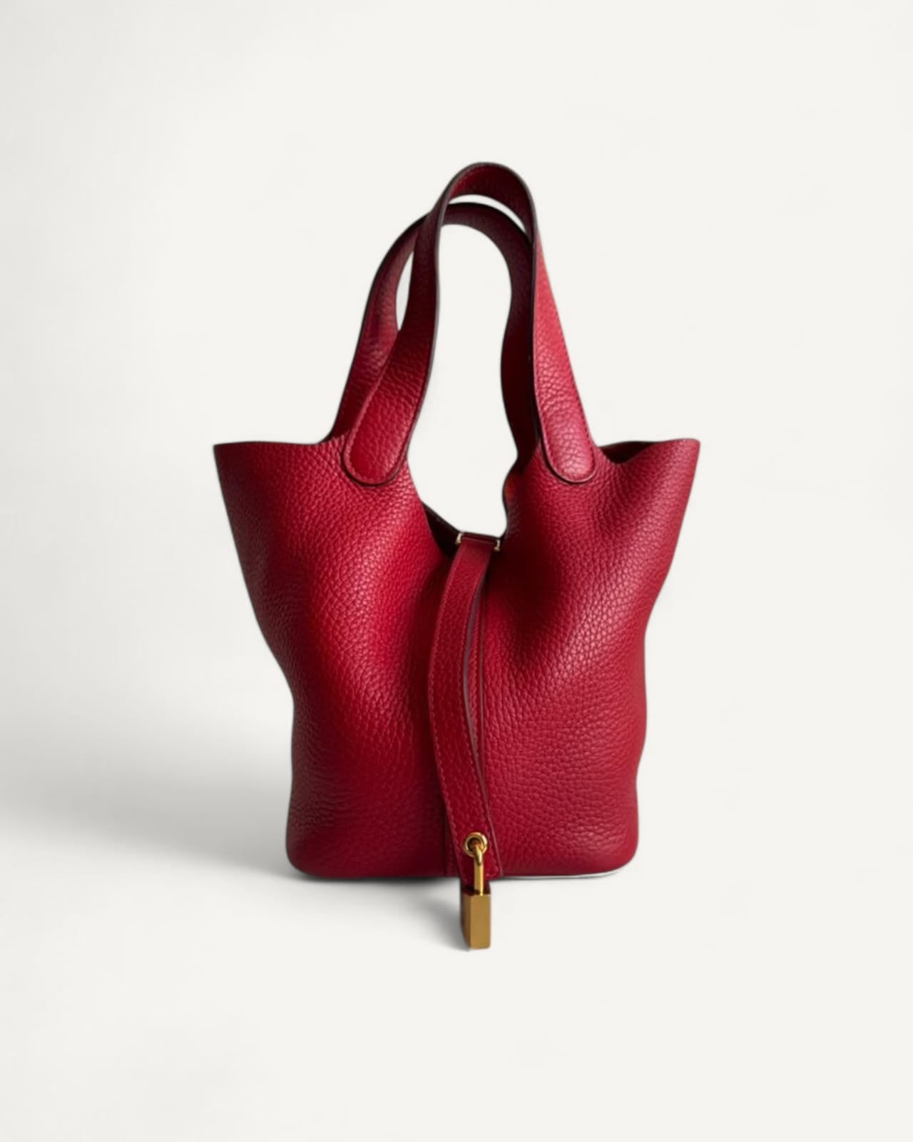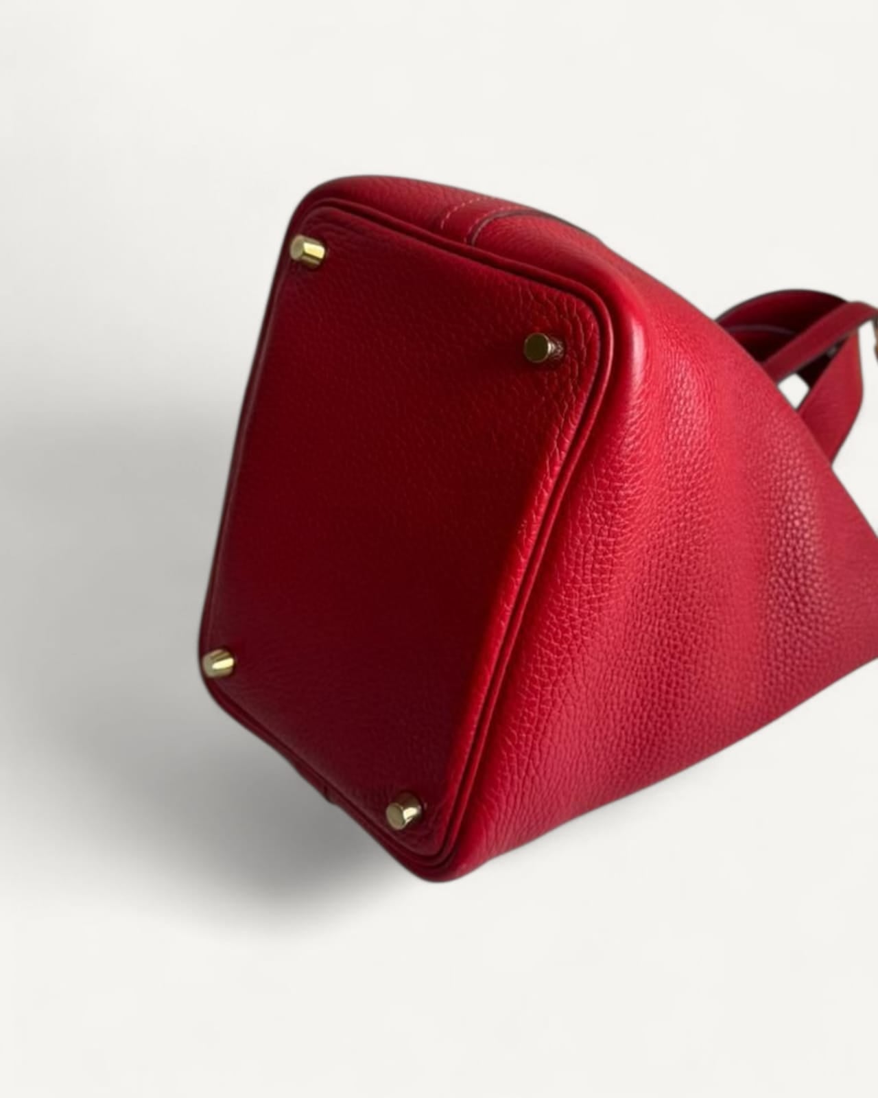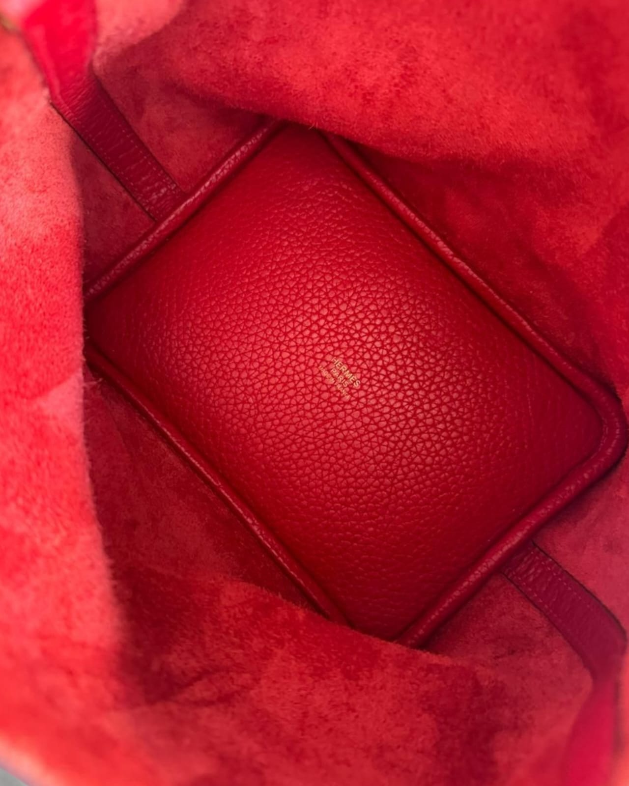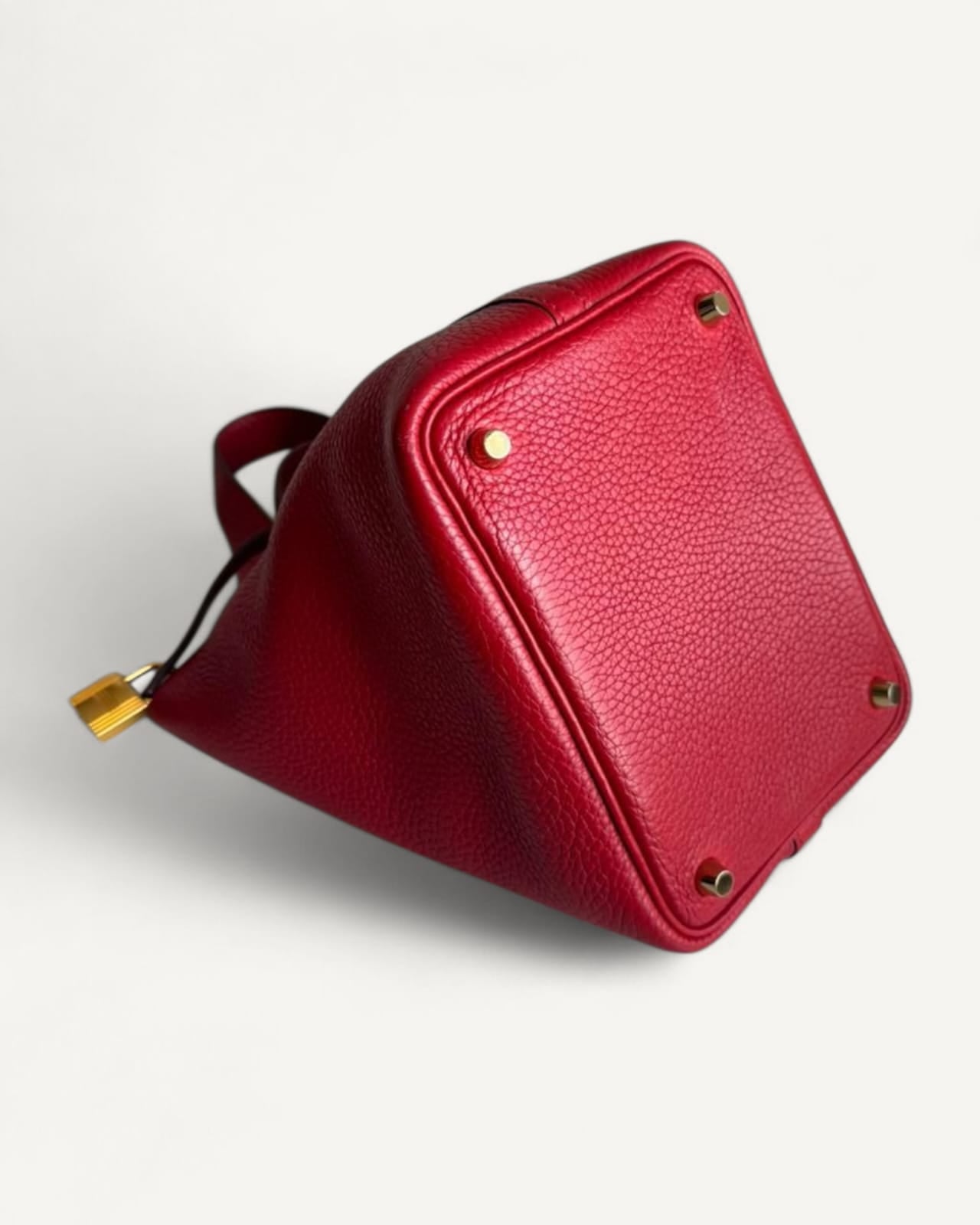 Bolsa Hermès Picotin 18 Clemence Rouge Moyen com Ferragens Gold