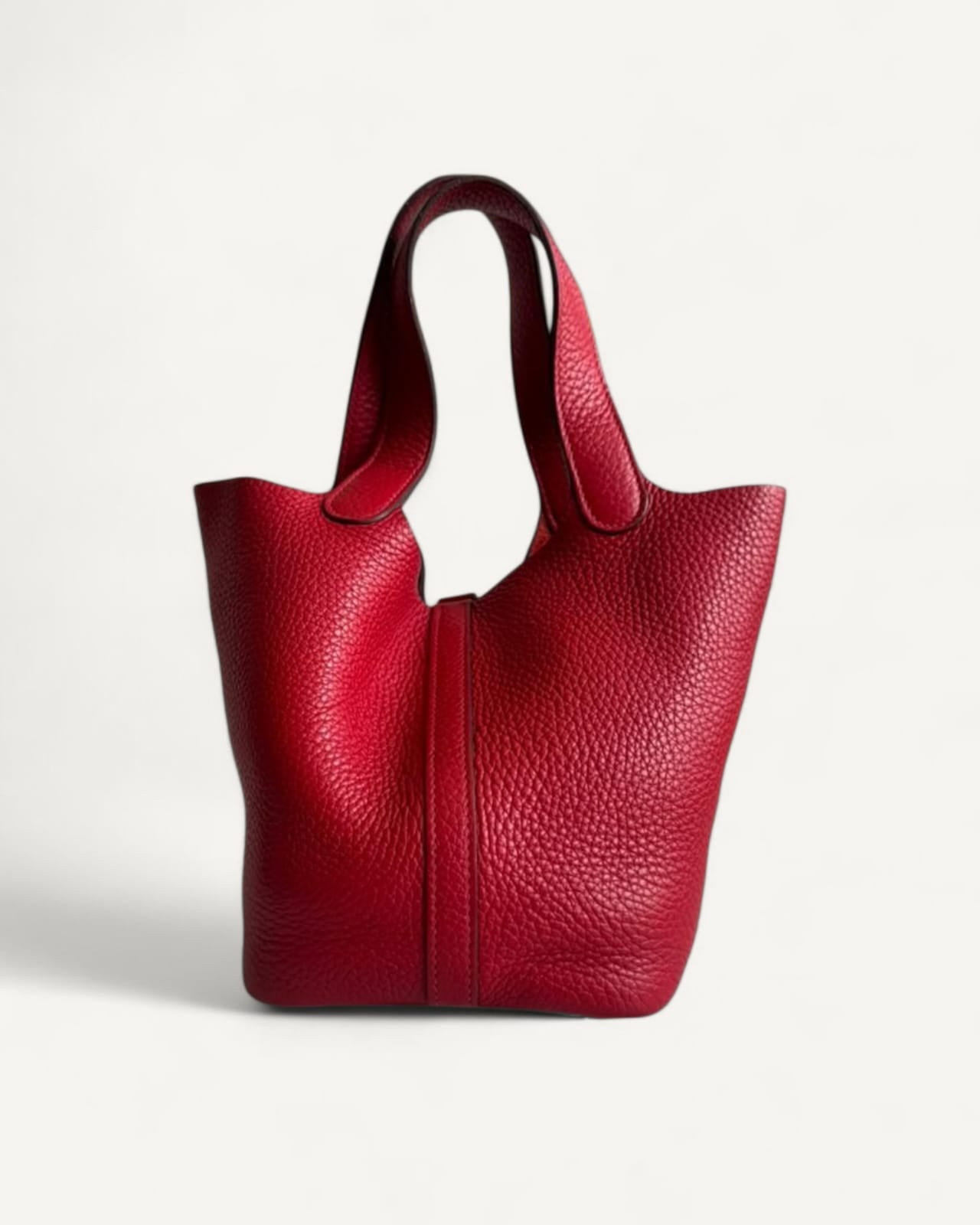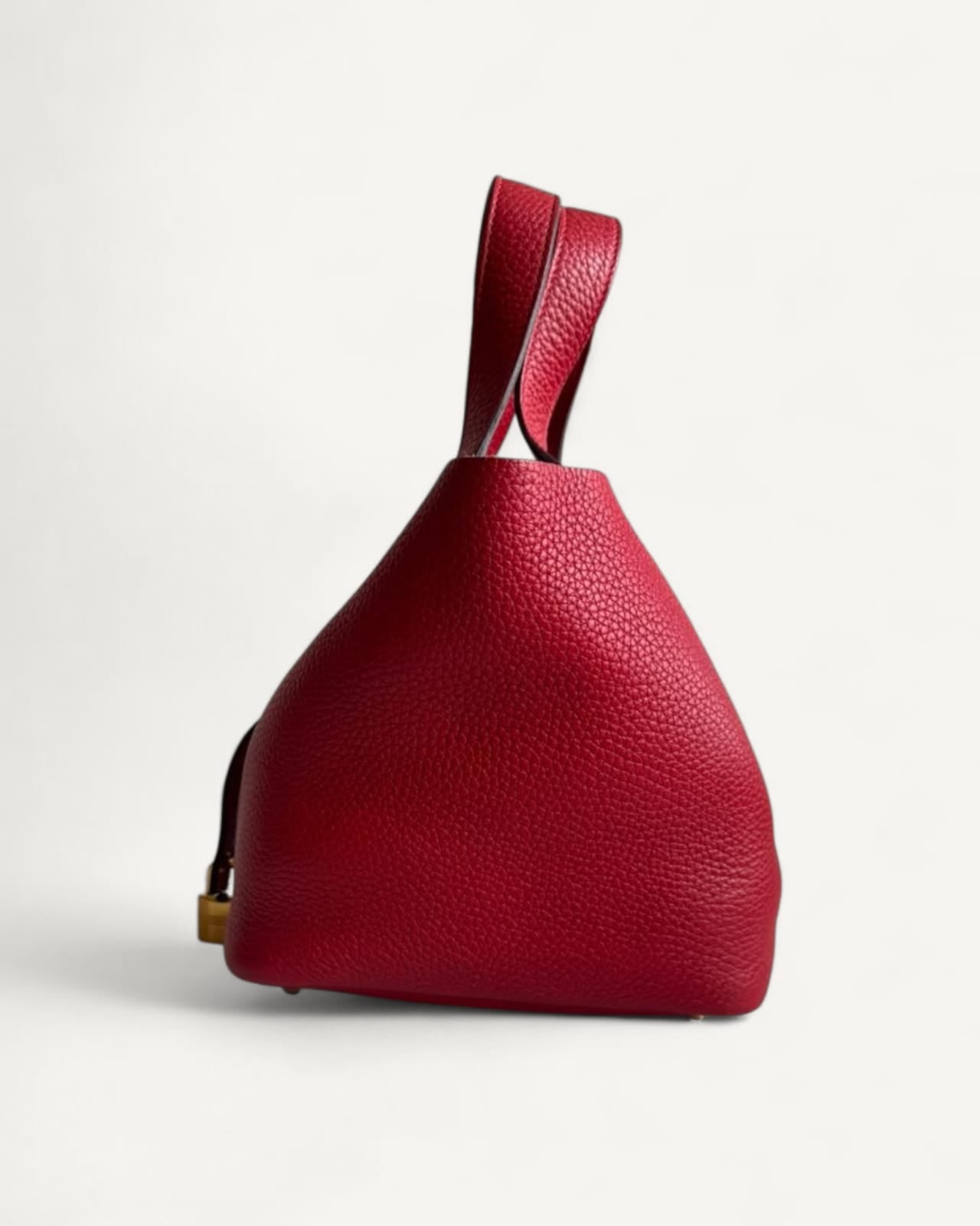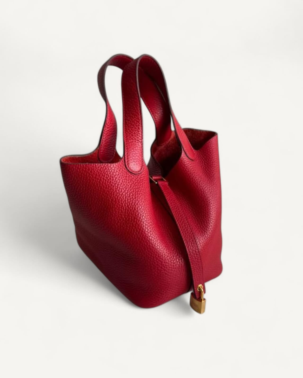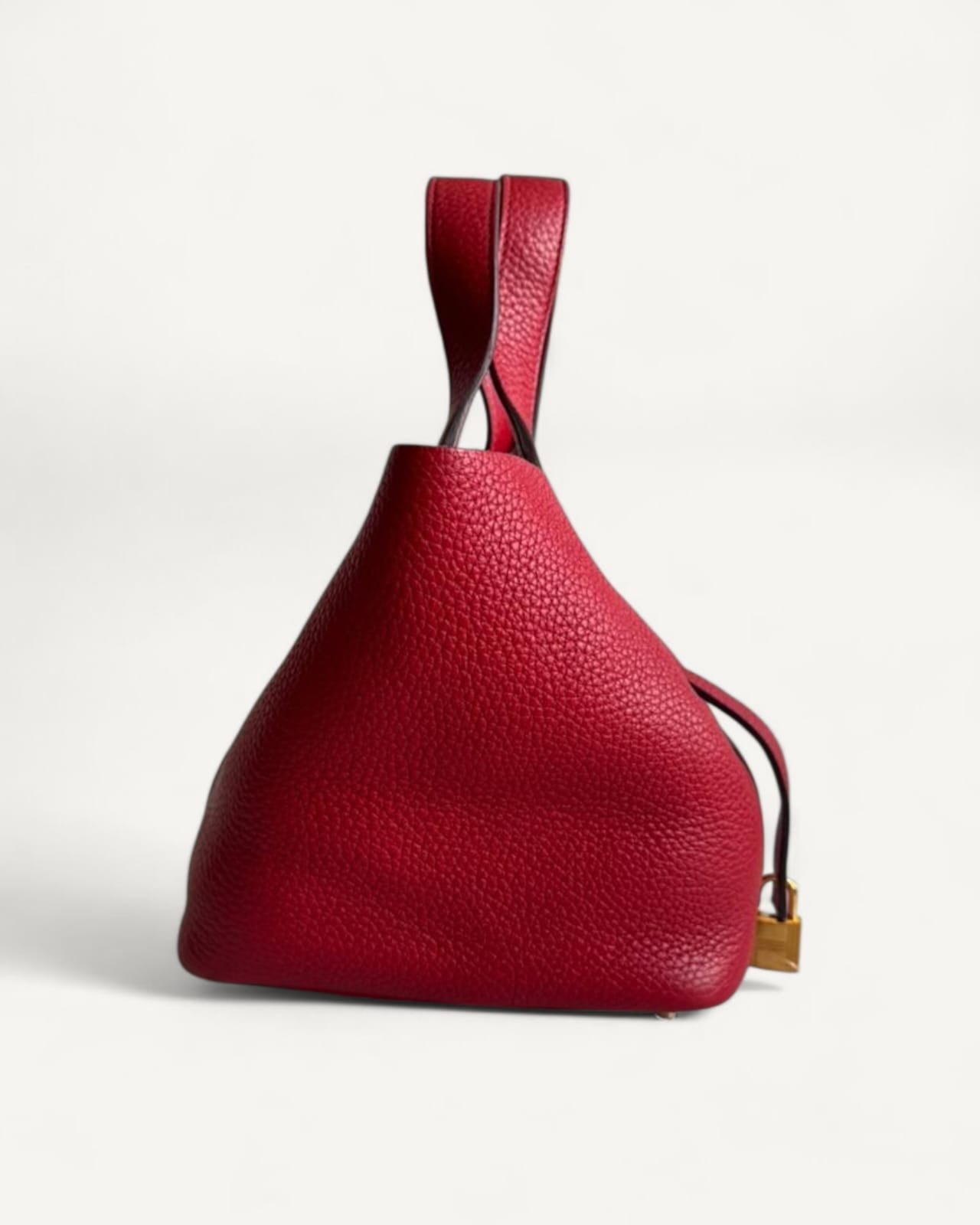Bolsa Hermès Picotin 18 Clemence Rouge Moyen com Ferragens Gold