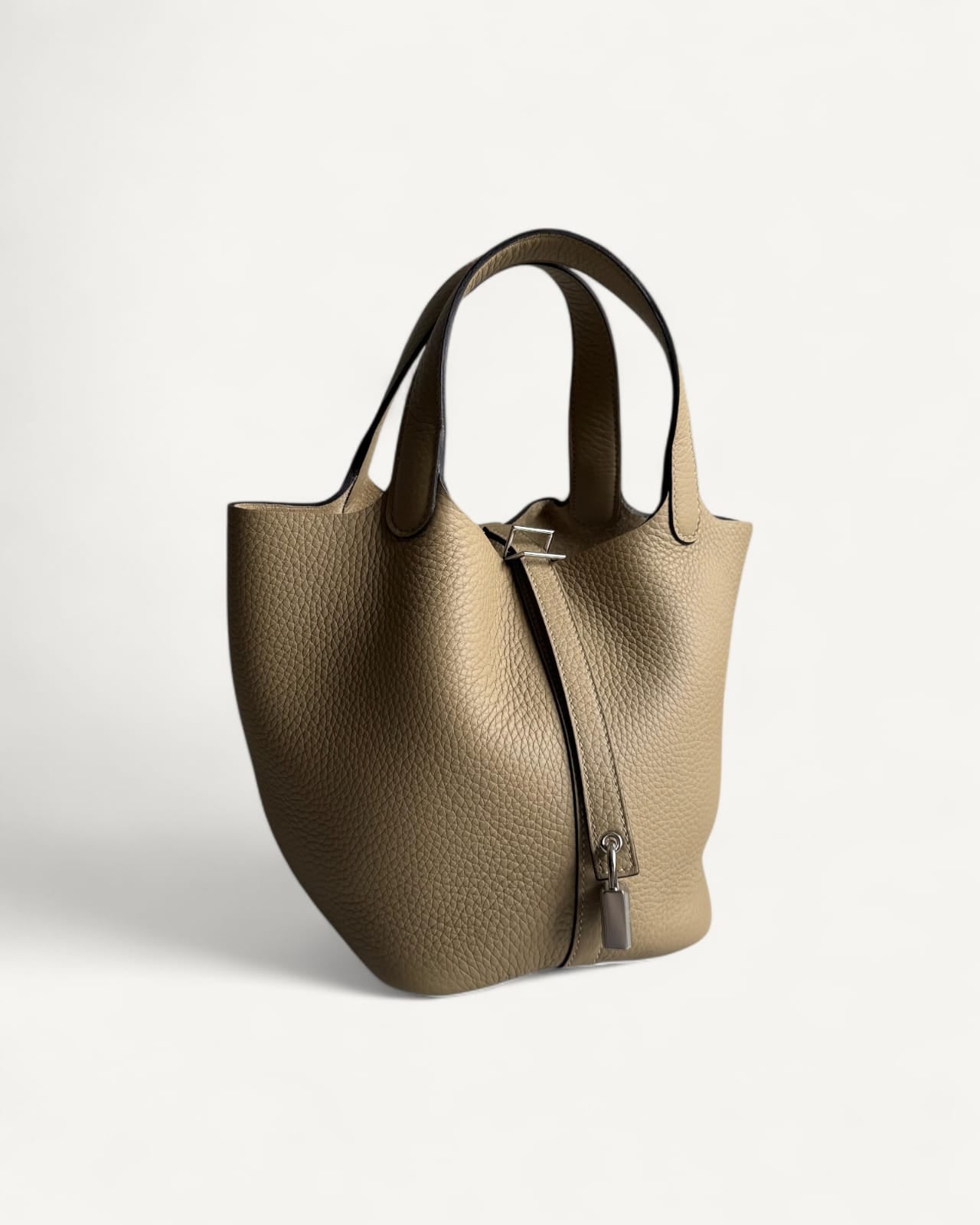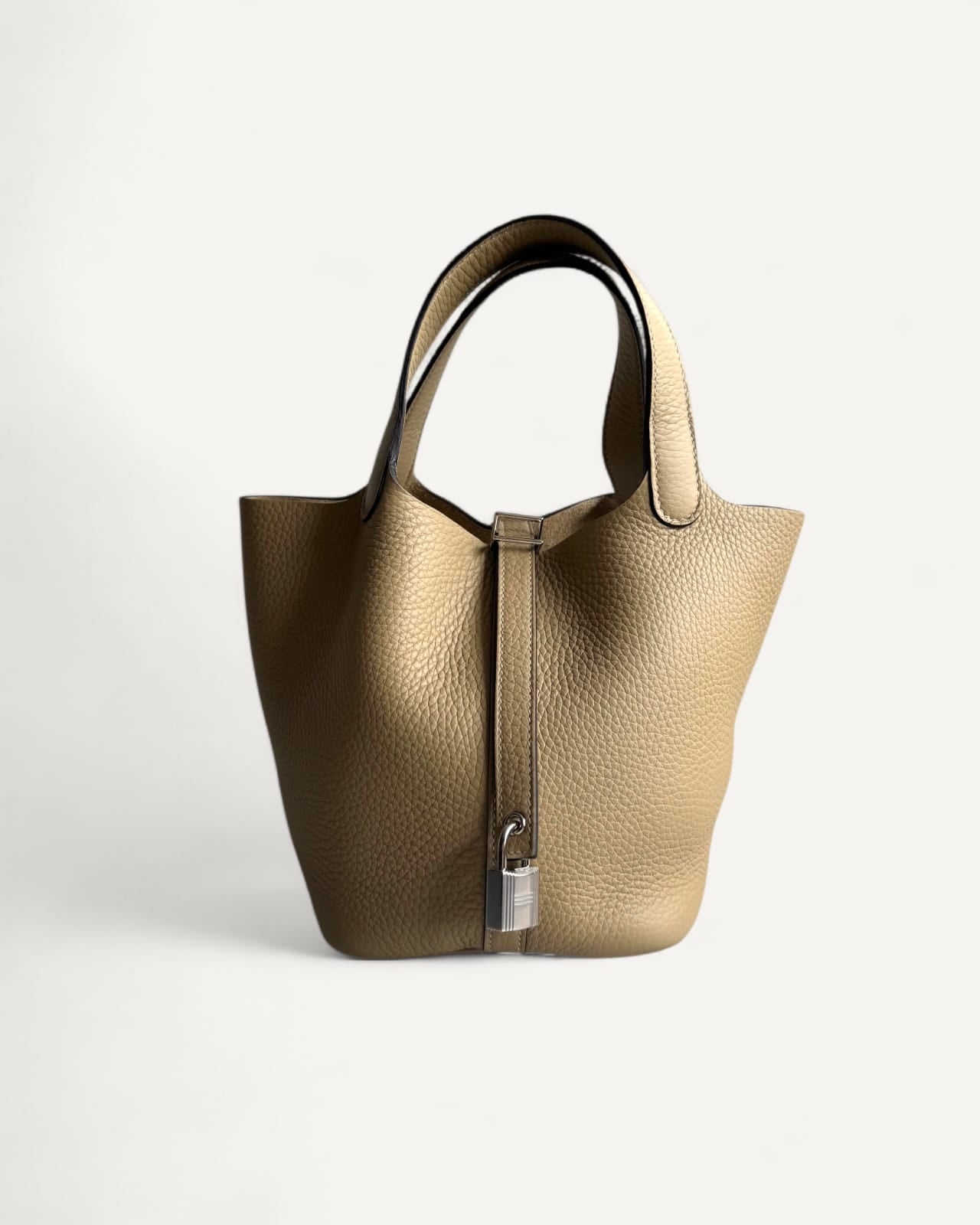 Bolsa Hermés Picotin 18 Taurillon Clemence Biscuit Ferragem Paladium