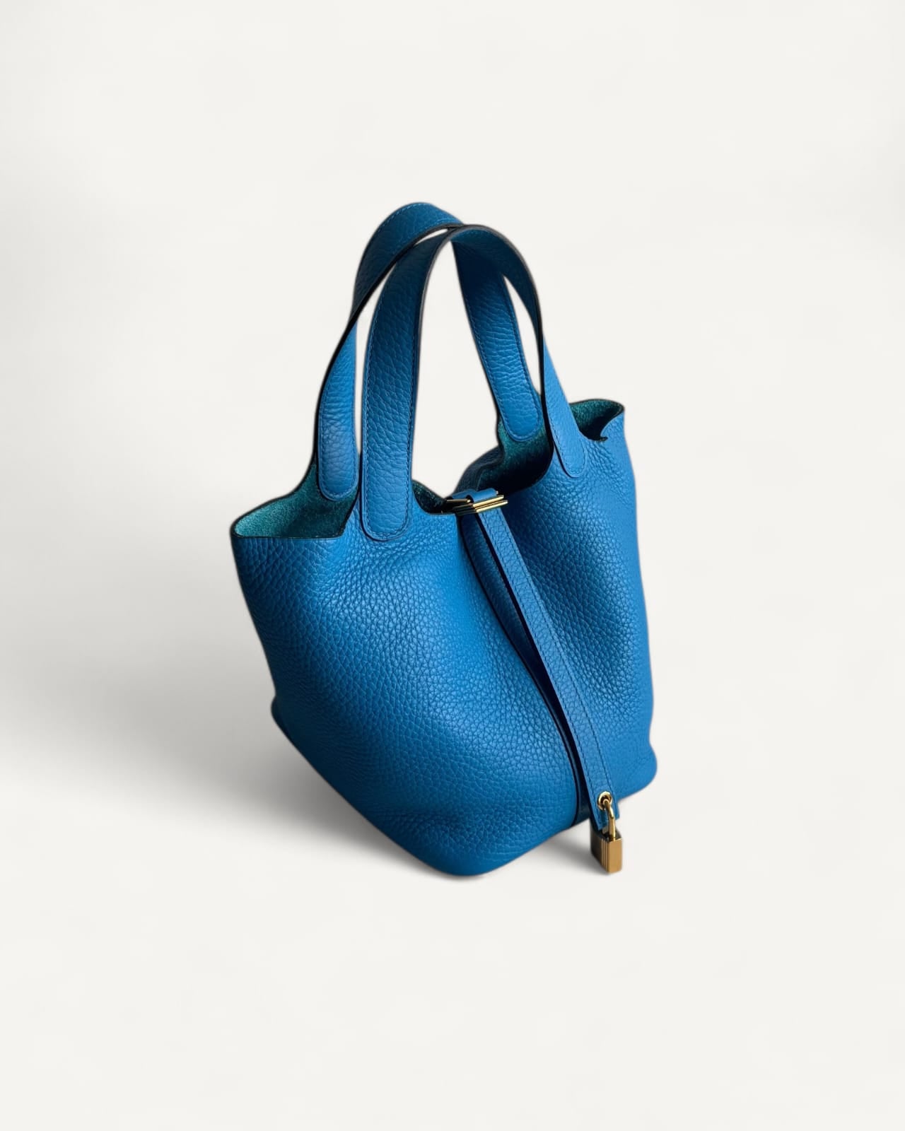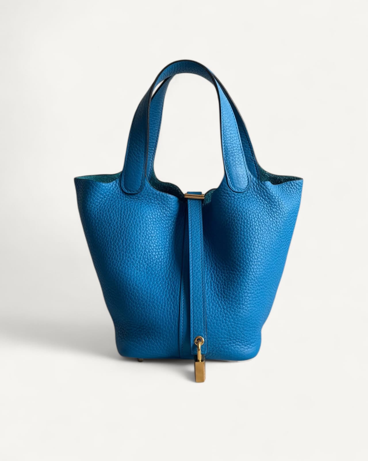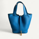 Bolsa Hermes Picotin 18 Togo Bleu France com Ferragens Gold