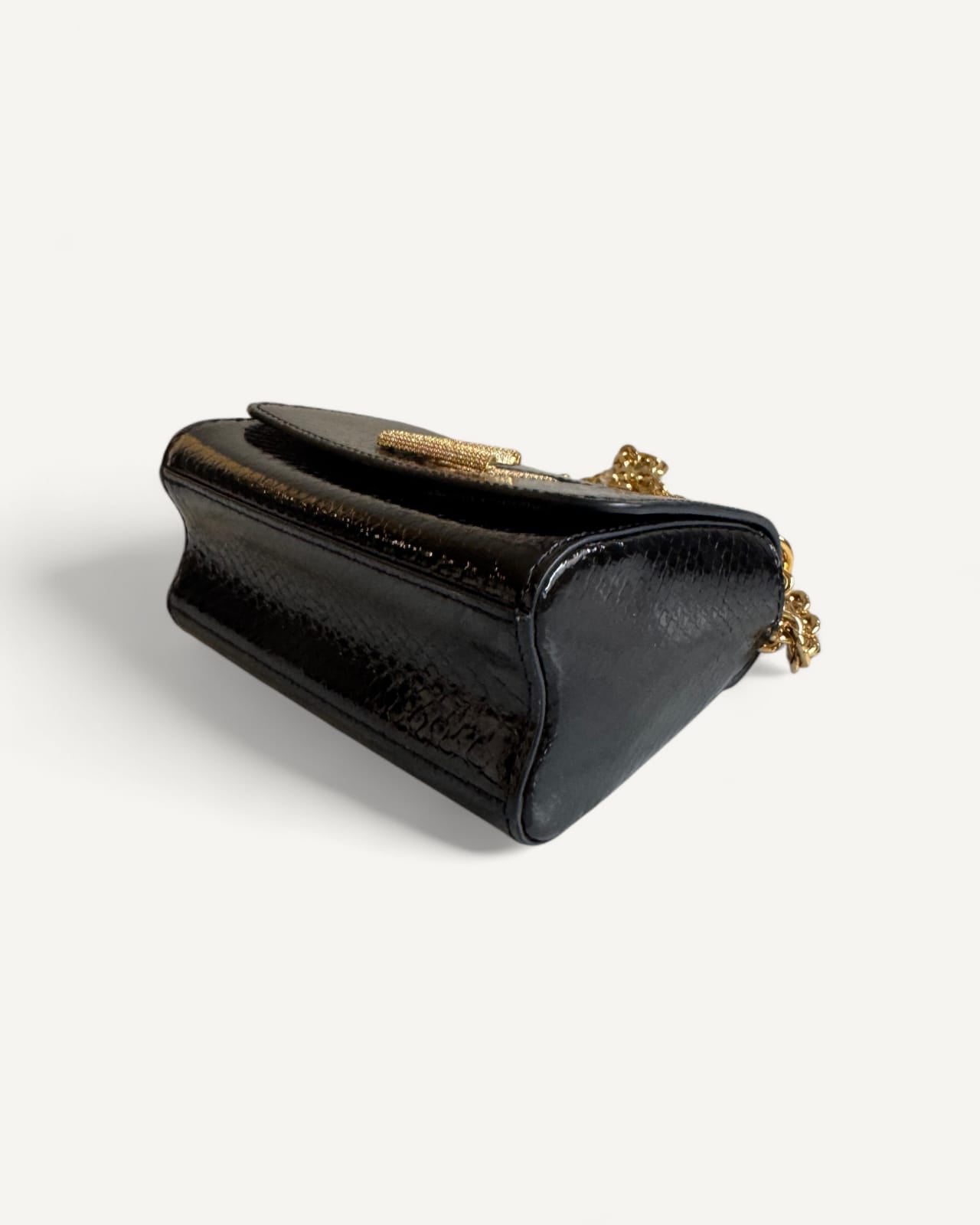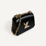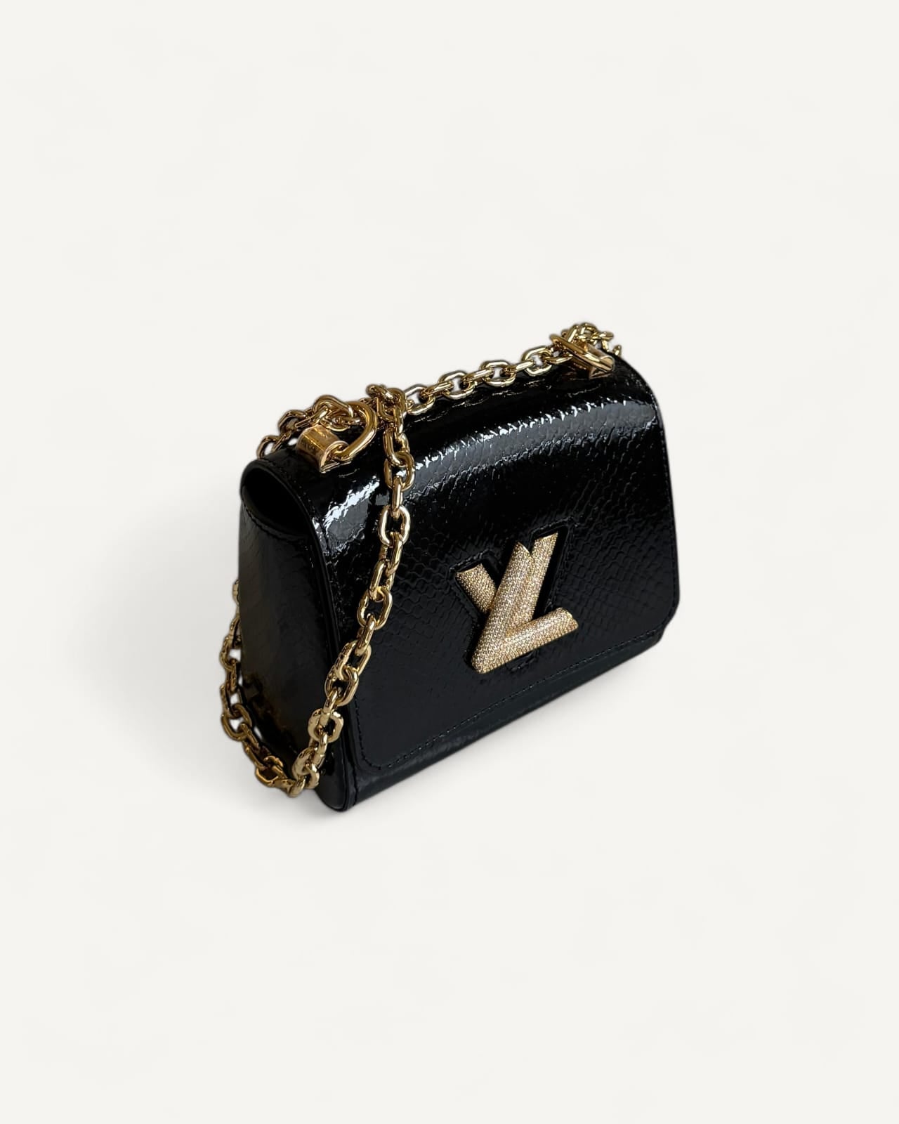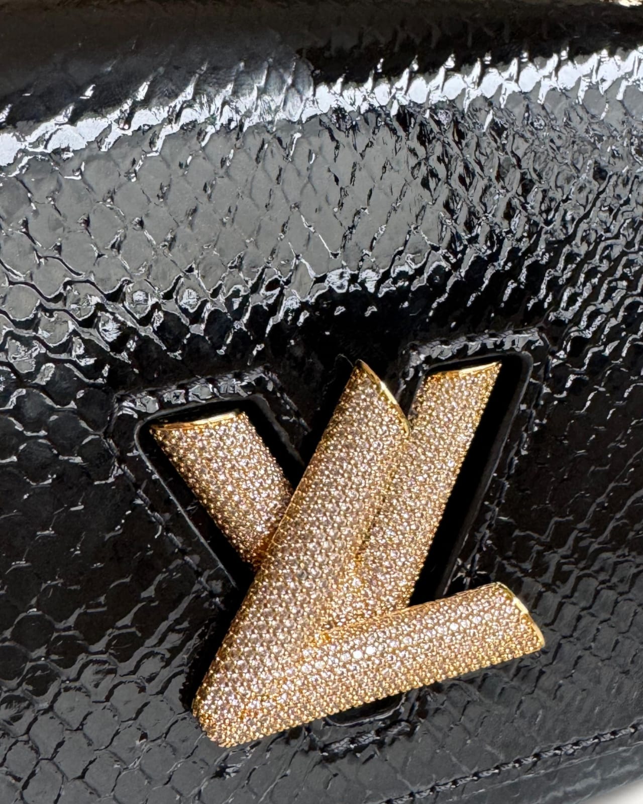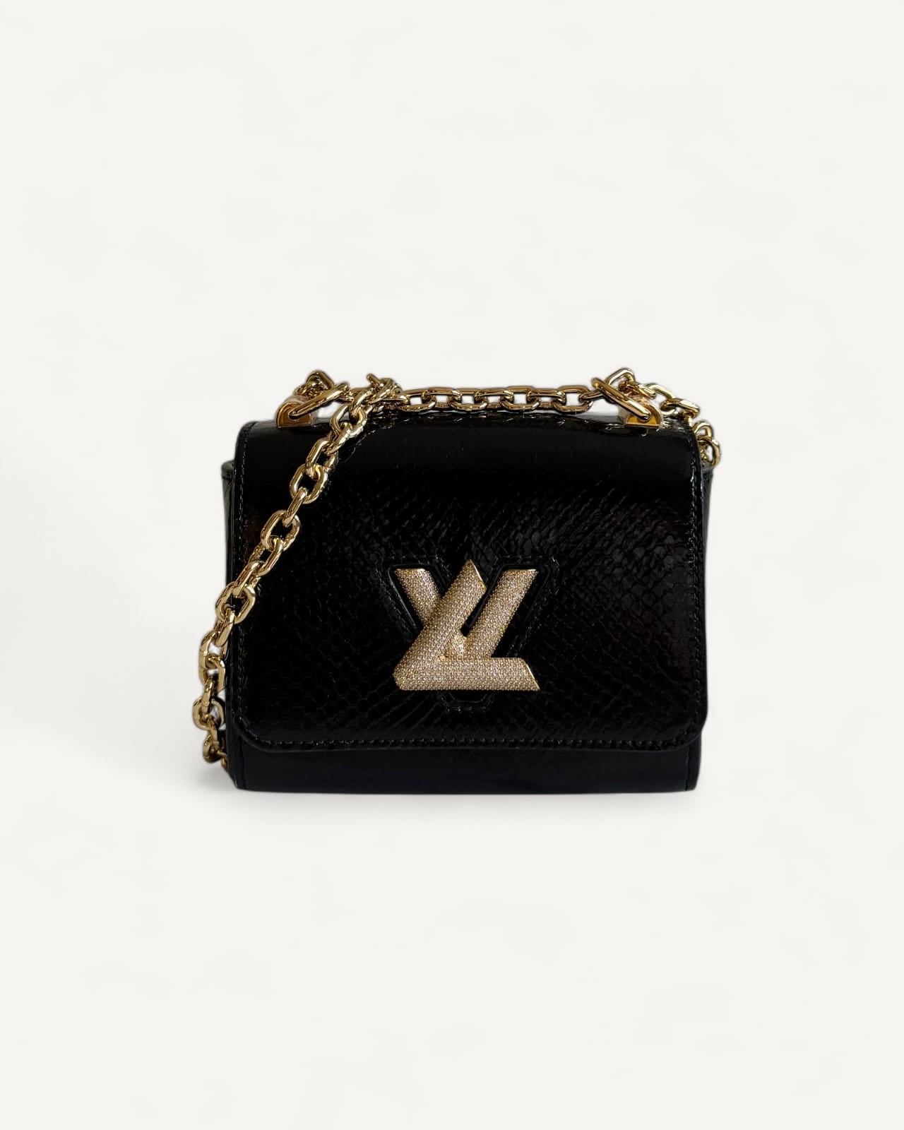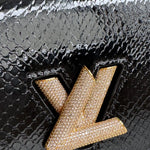 Bolsa Louis Vuitton Twist Phyton Preta com Ferragens Douradas Cravejadas