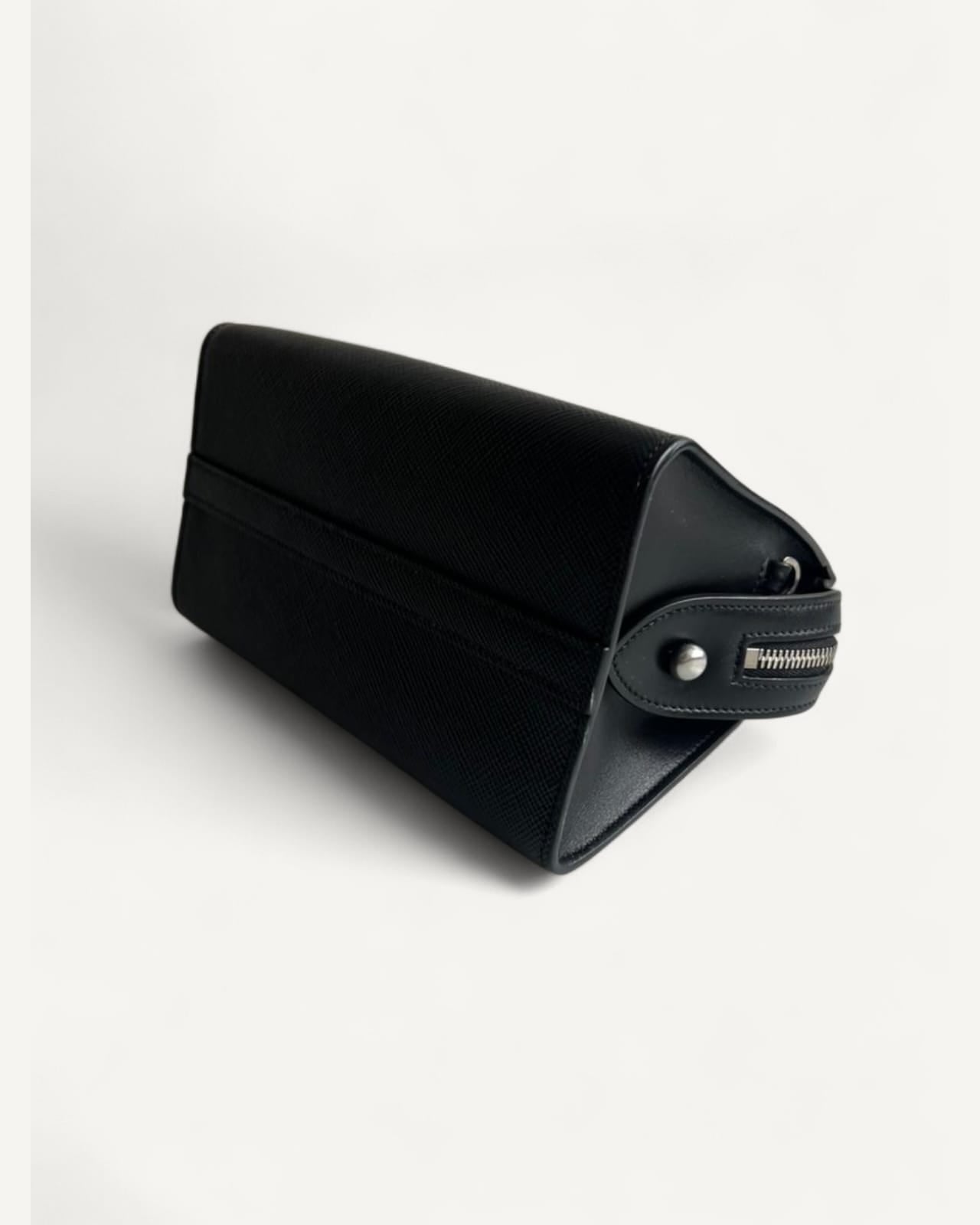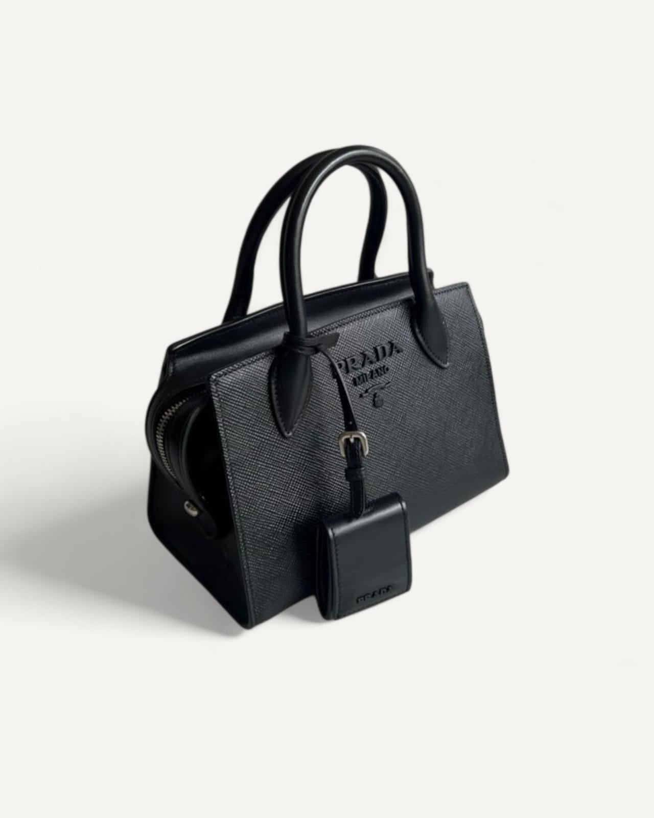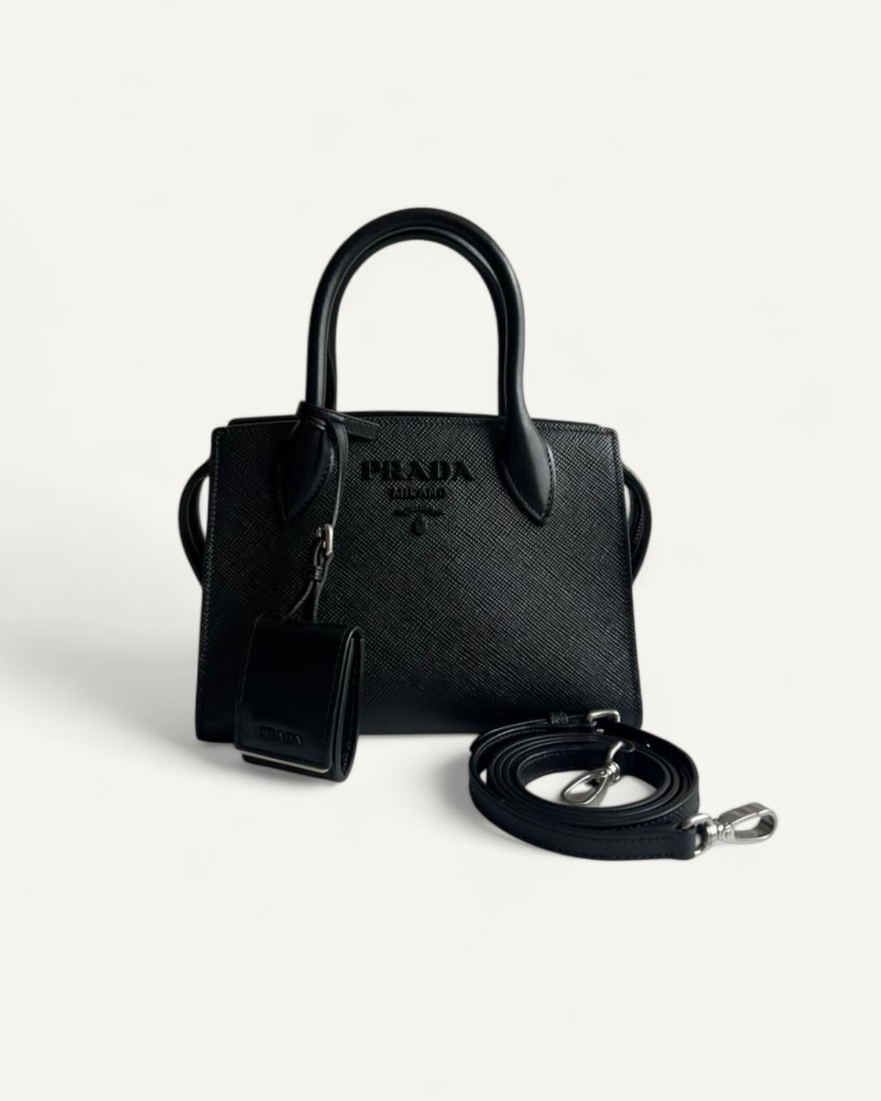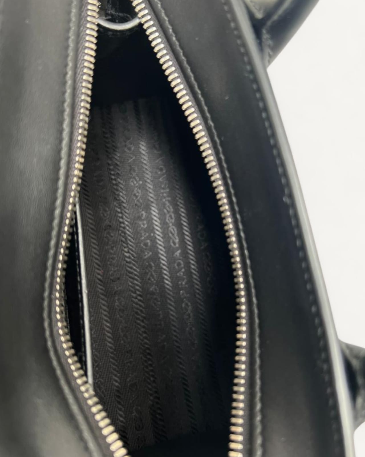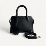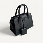 Bolsa Prada Monochrome Preta com Ferragens Prateadas