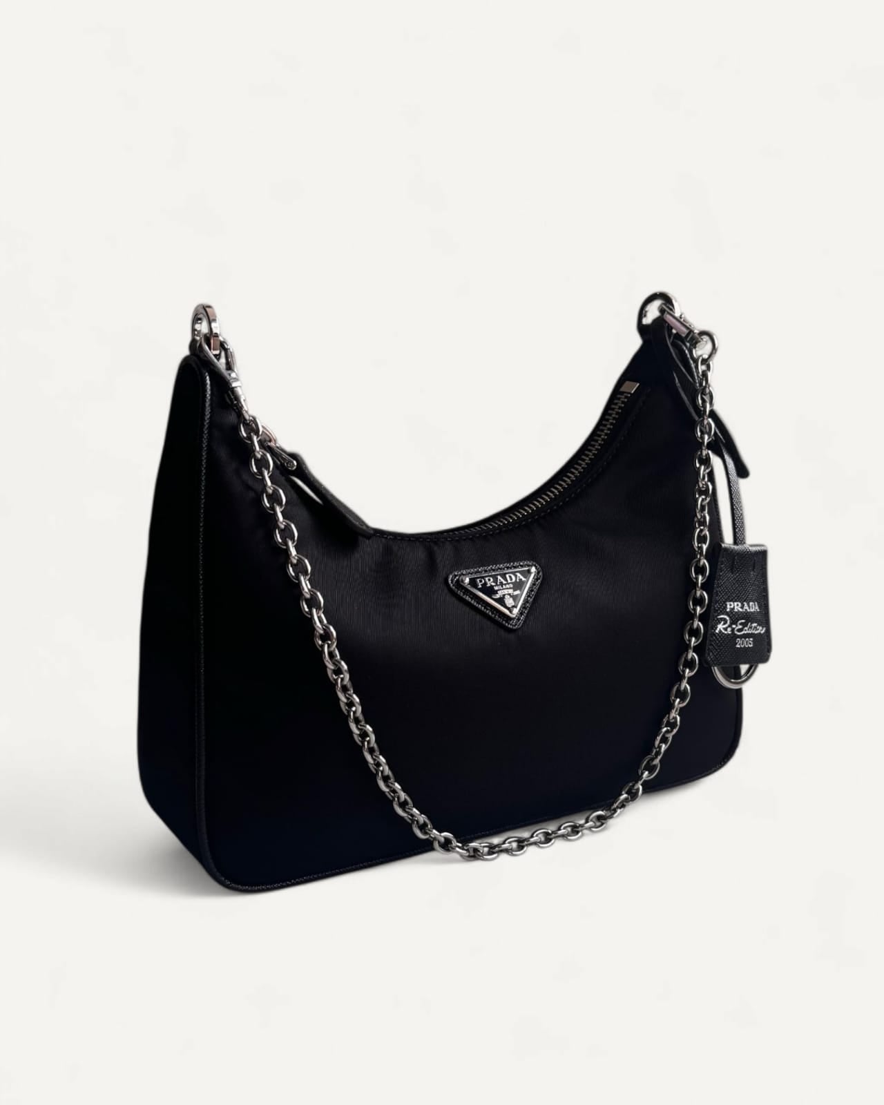 Bolsa Prada Re- Edition 2005 Preta com Ferragens Prata