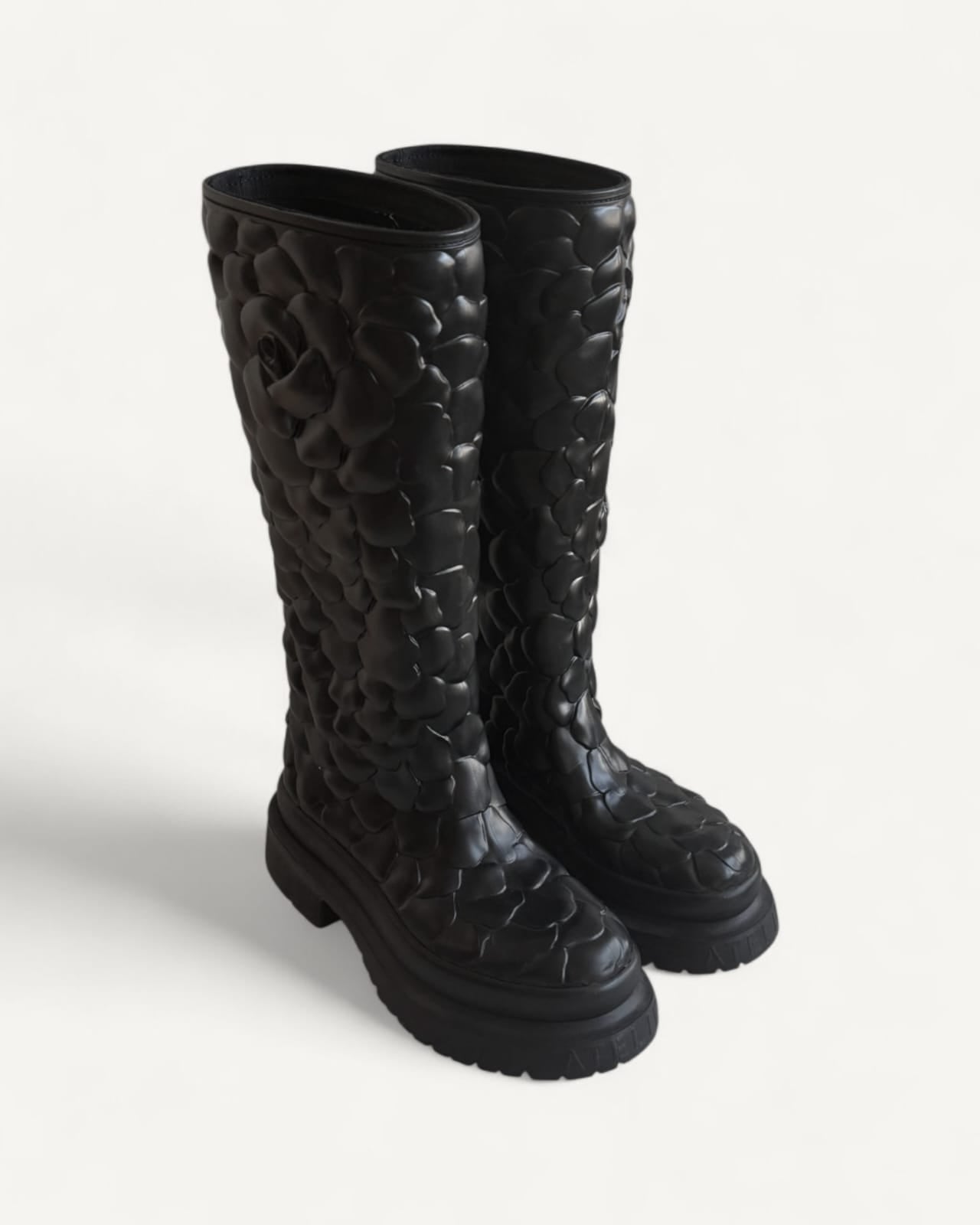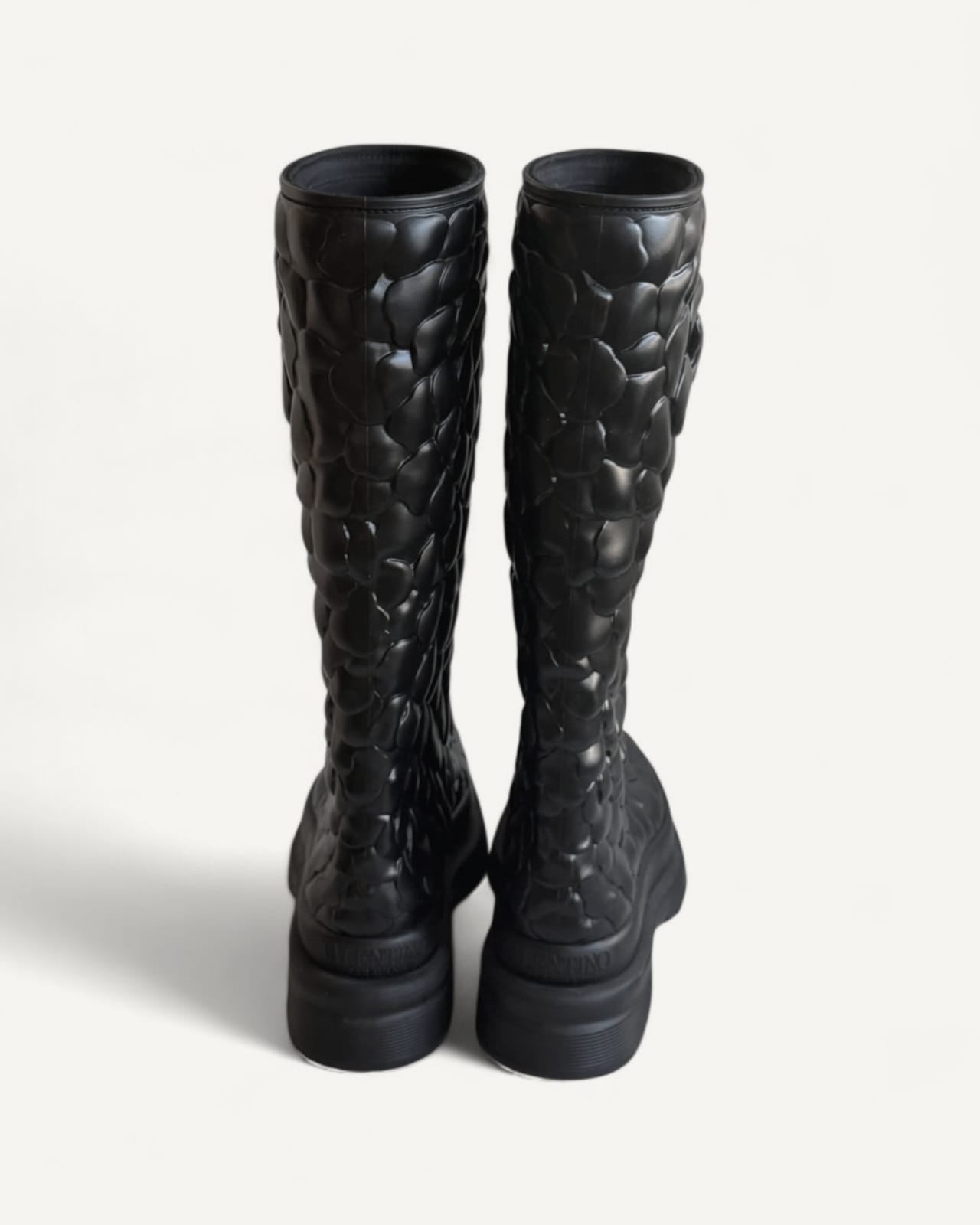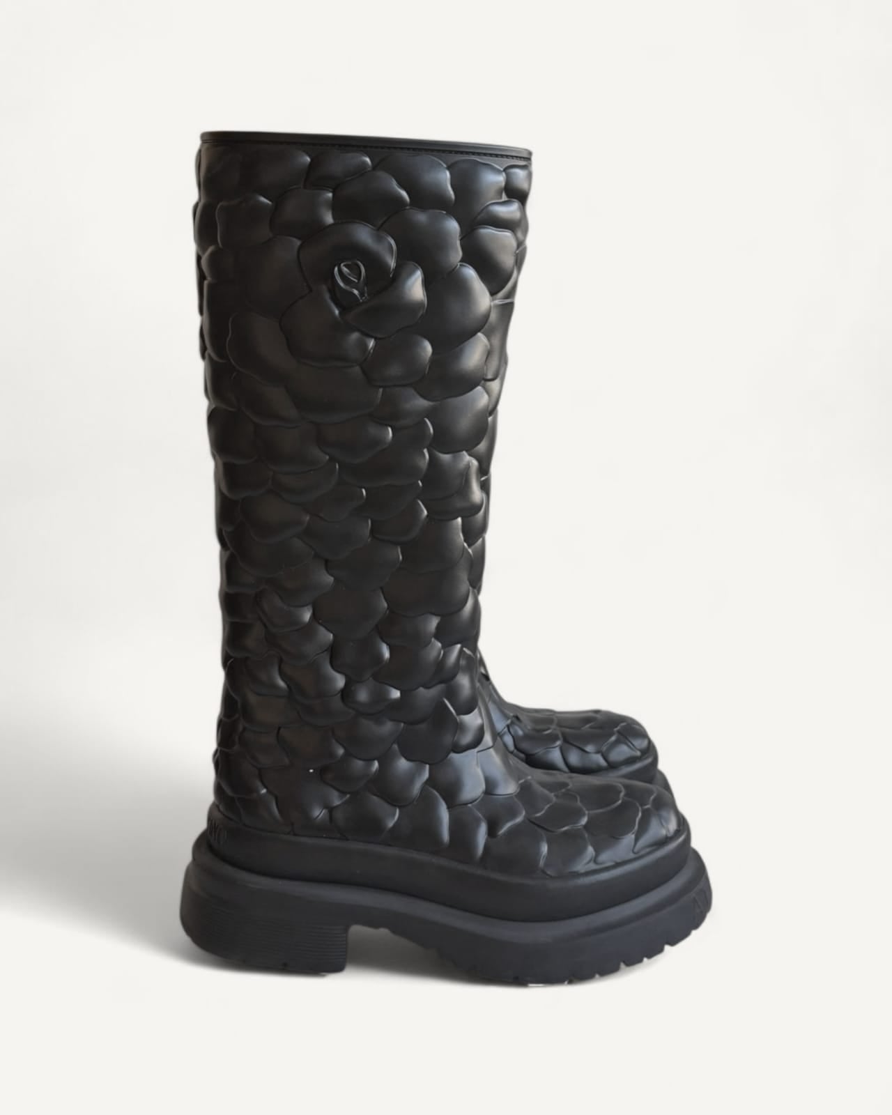 Bota Valentino Black Rubber Rose Atelier Knee Length