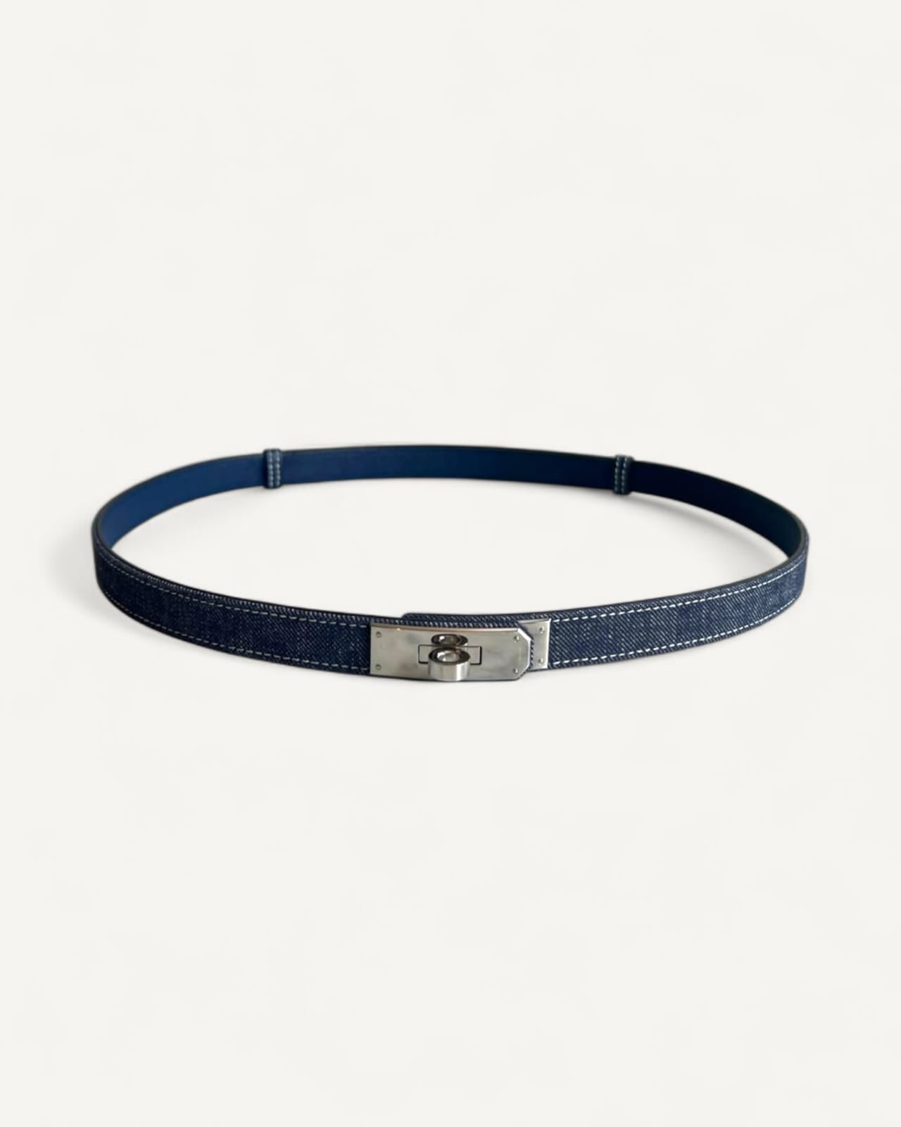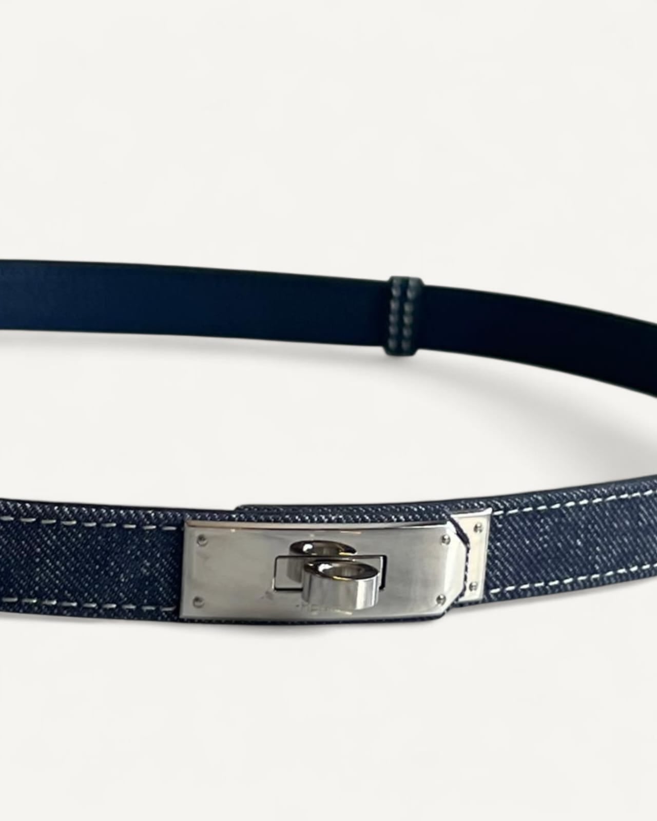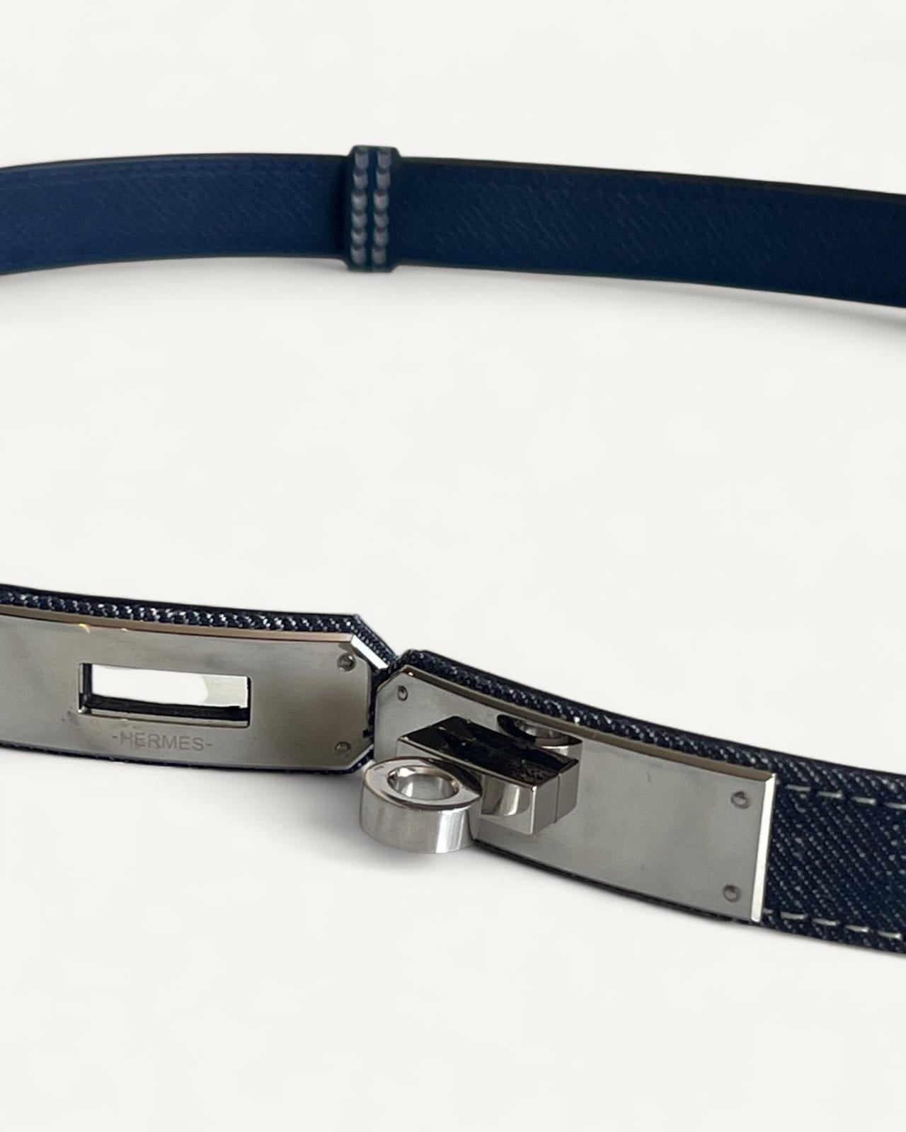 Cinto Hermès Kelly 18 Denim com Ferragens Palladium