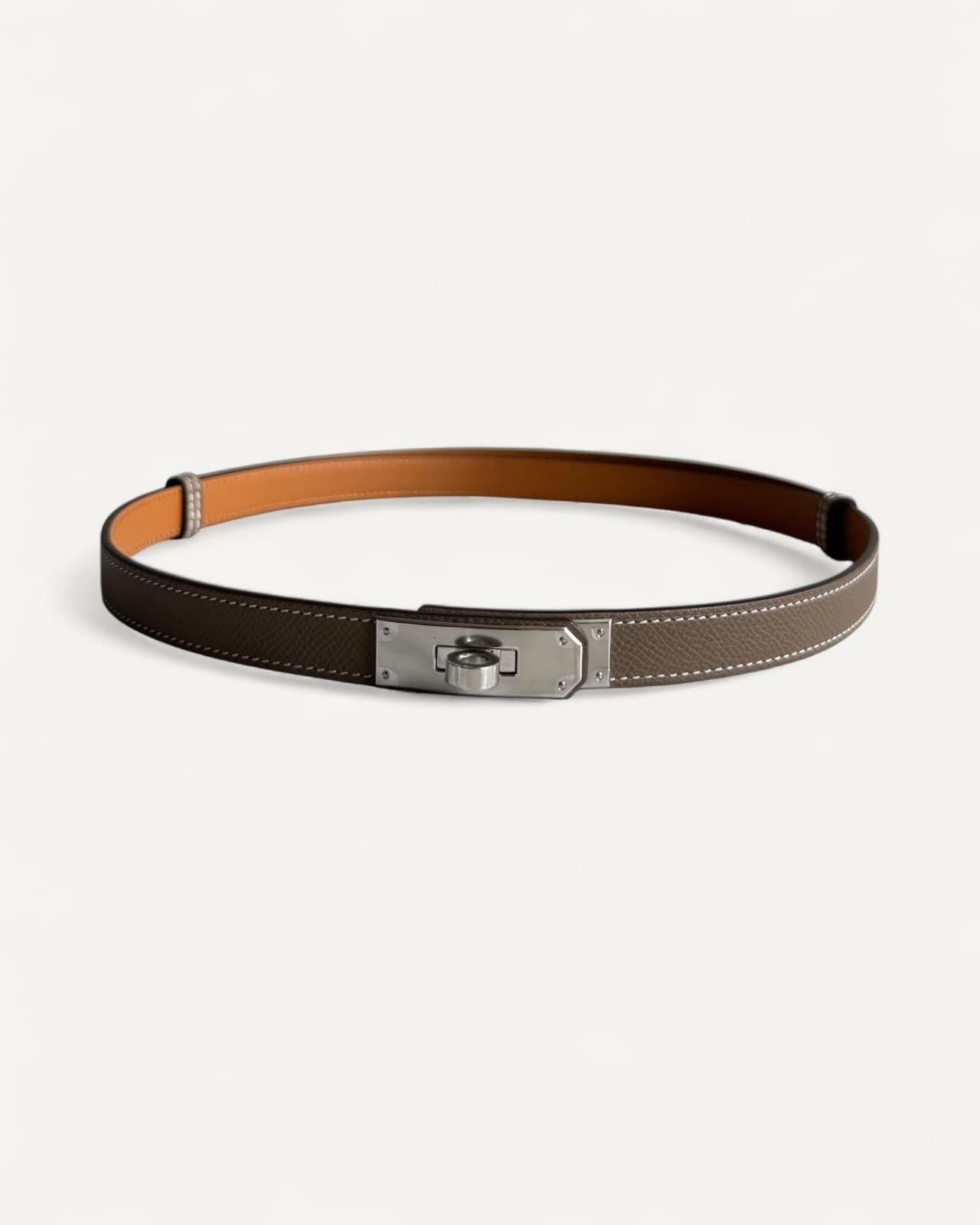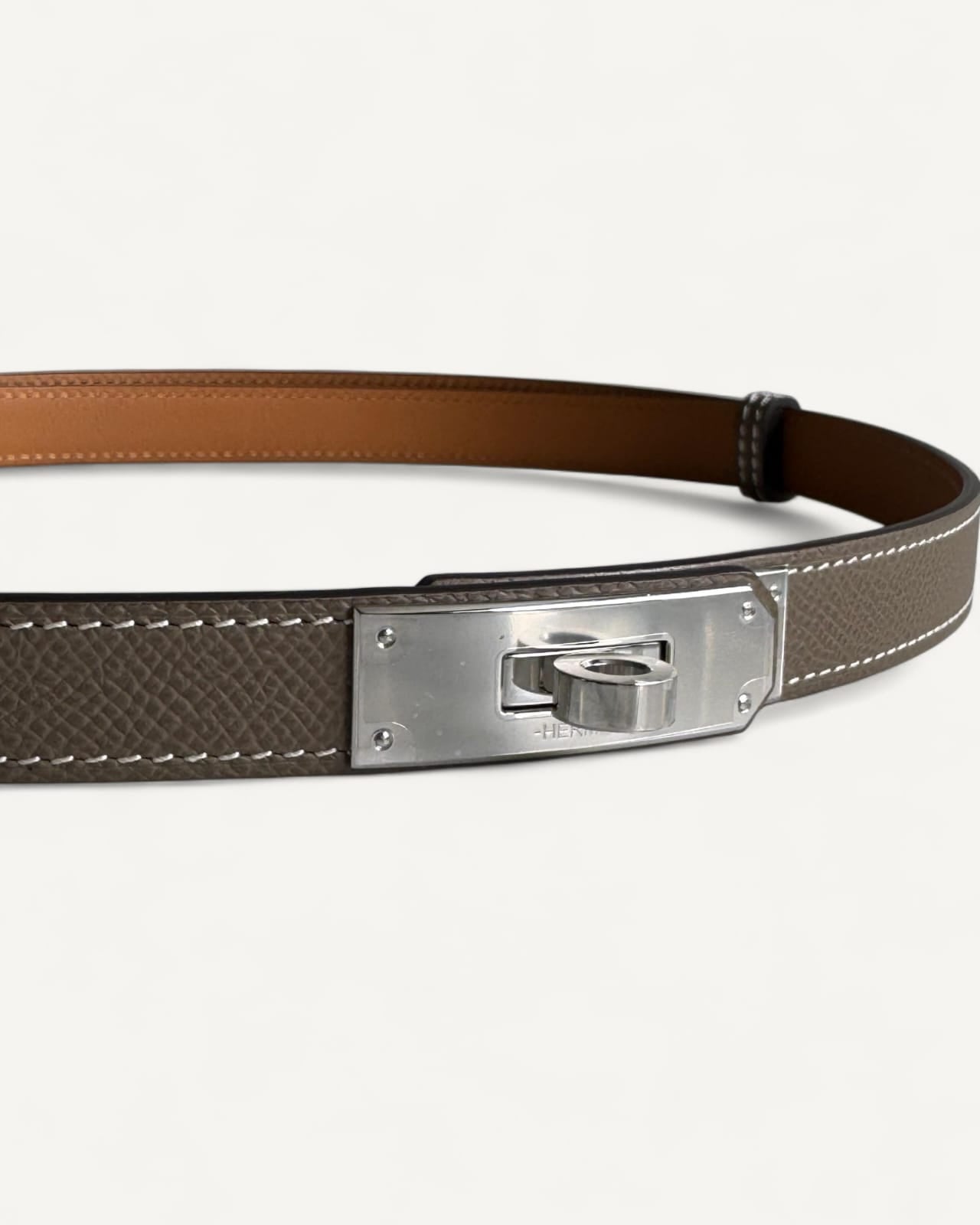Cinto Hermés Kelly Epsom Etoupe Ferragem Palladium