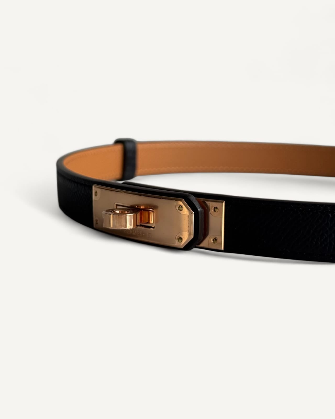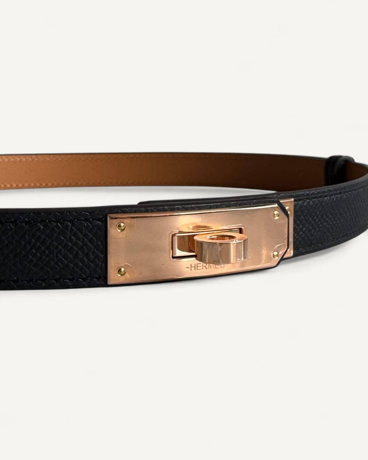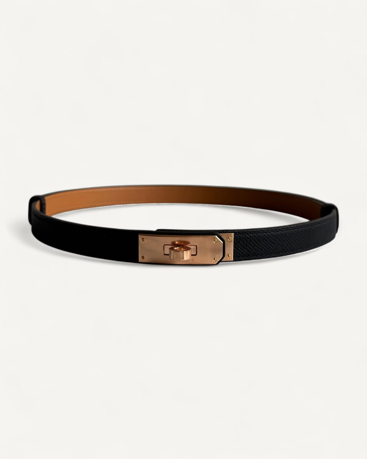Cinto Hermés Kelly Epsom Noir Ferragem Rosé Gold