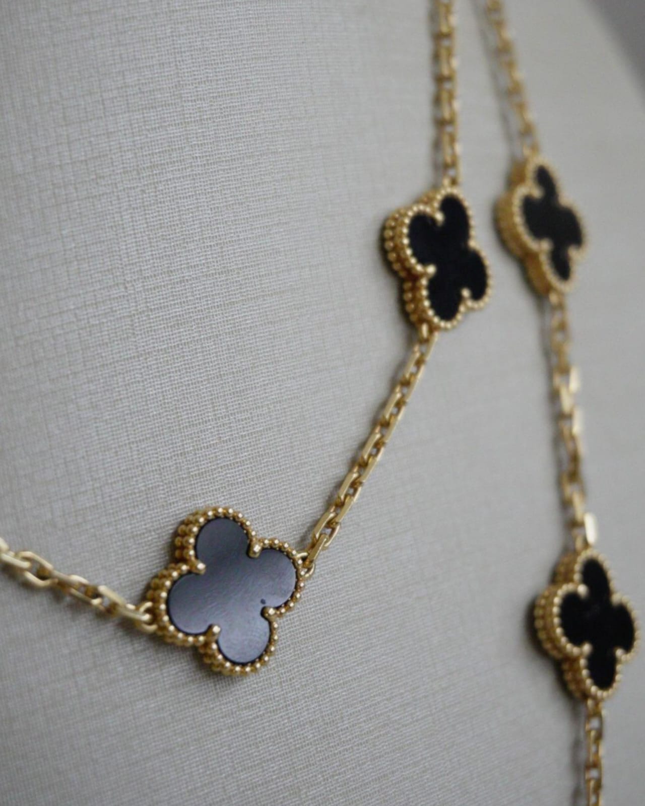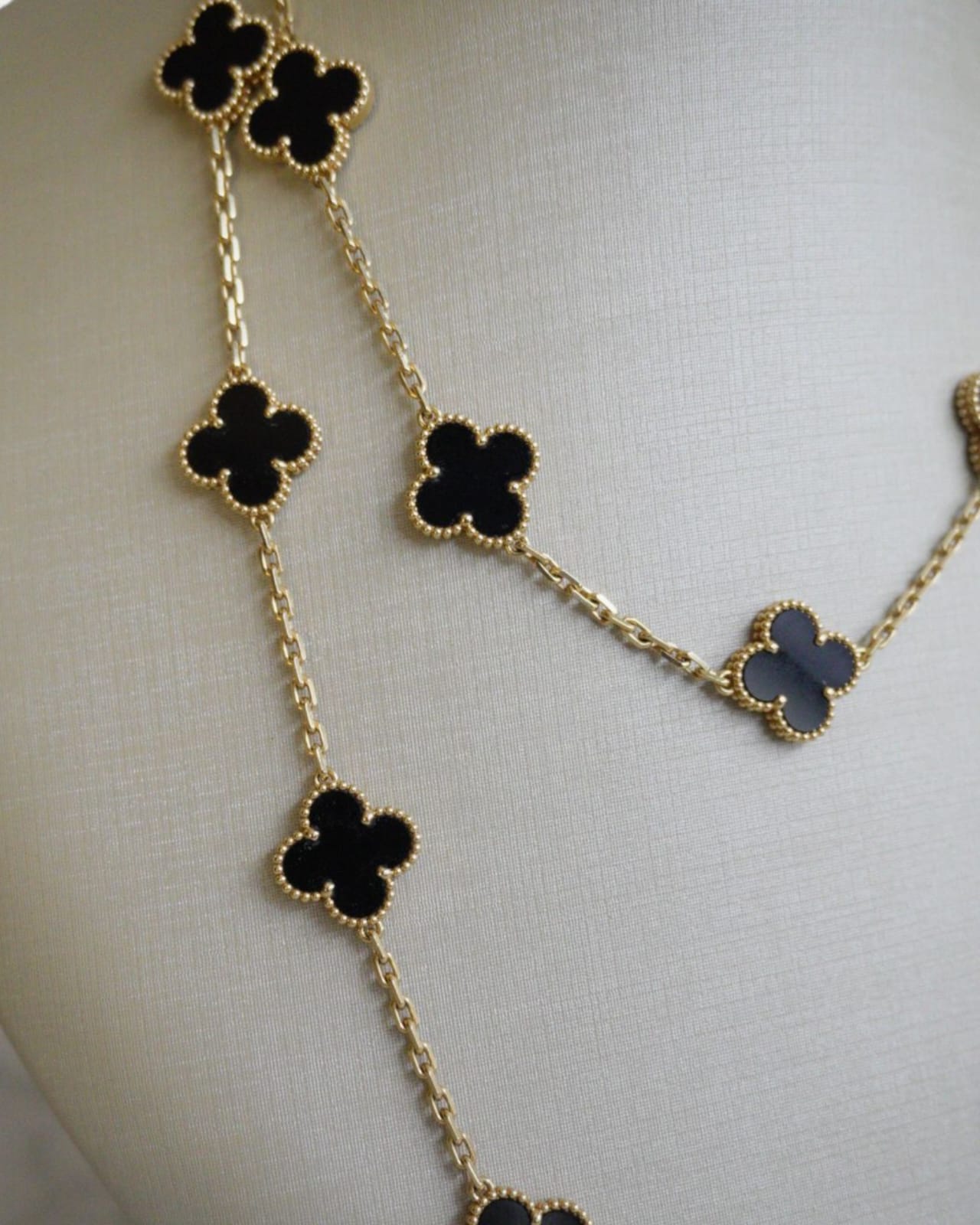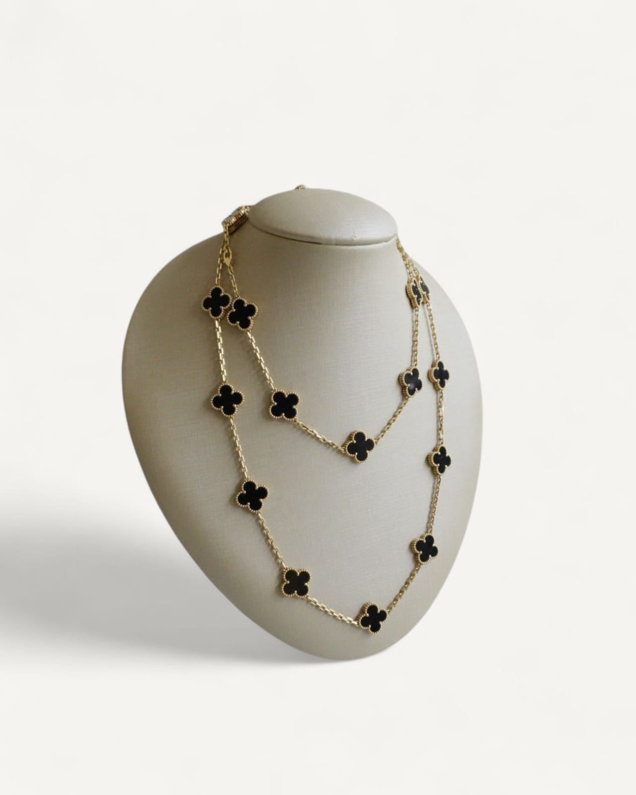 Colar Van Cleef Longo Vintage Alhambra 20 motivos Ônix em Ouro Amarelo