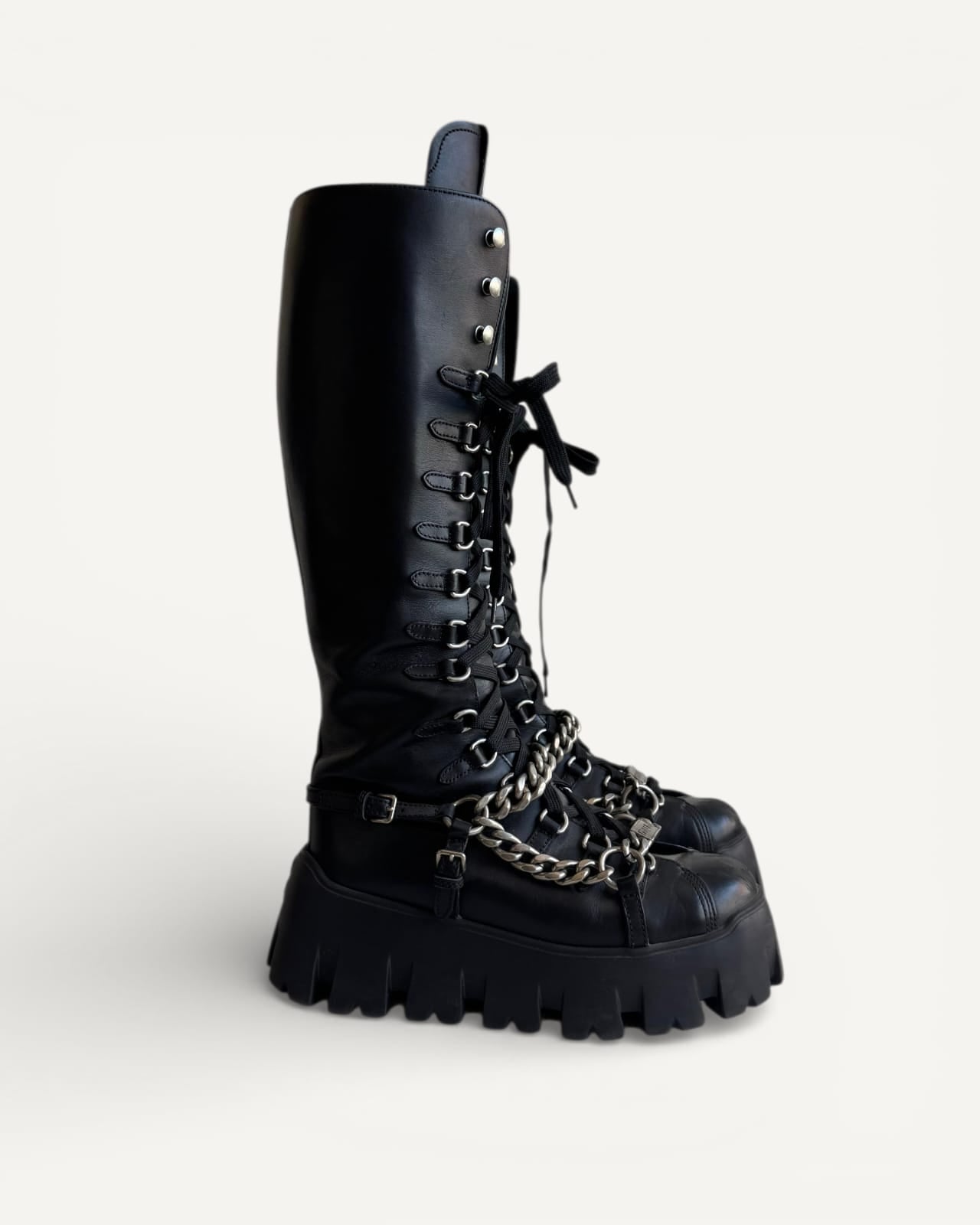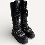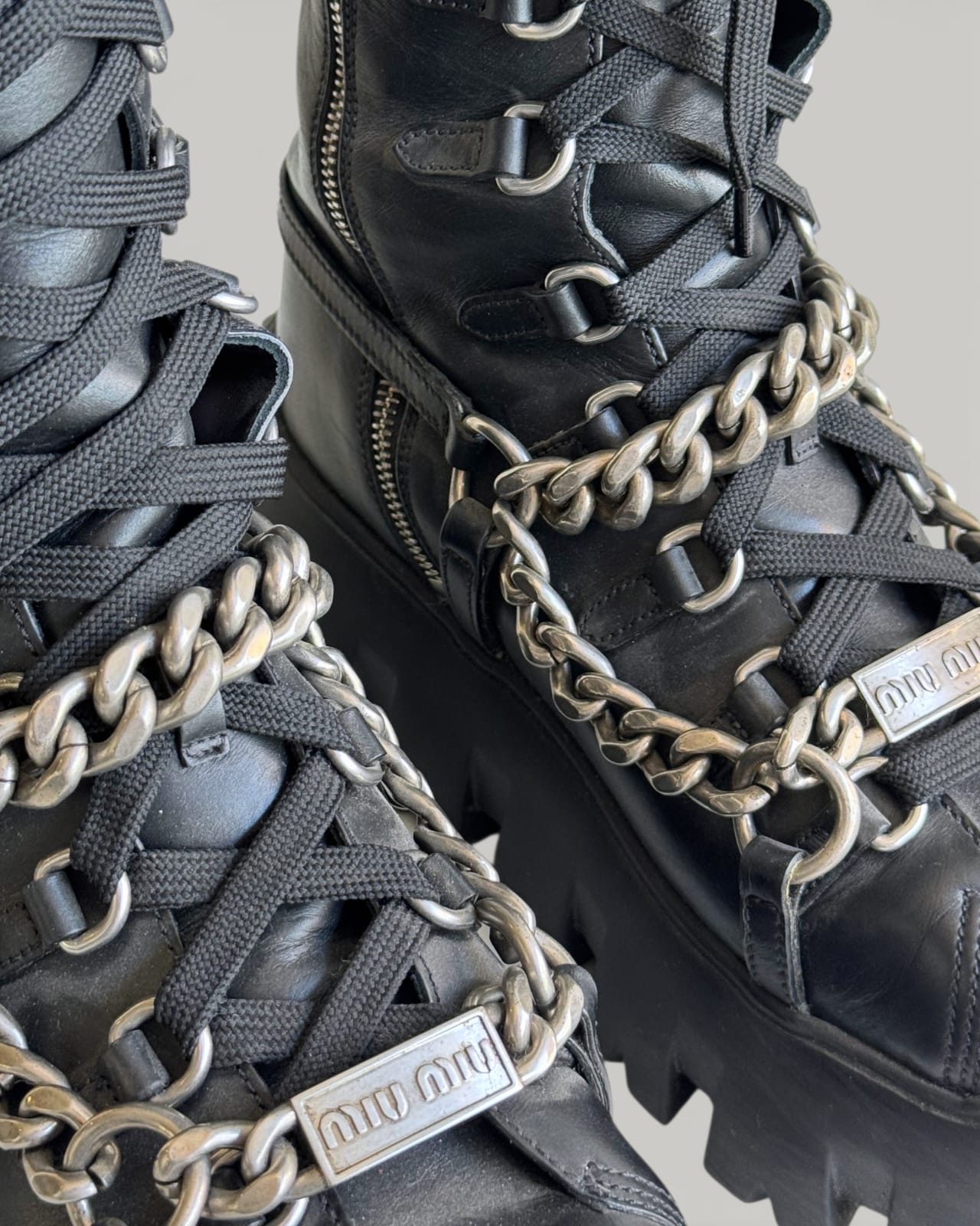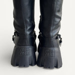 Coturno Miu Miu Preto e Corrente Prateada