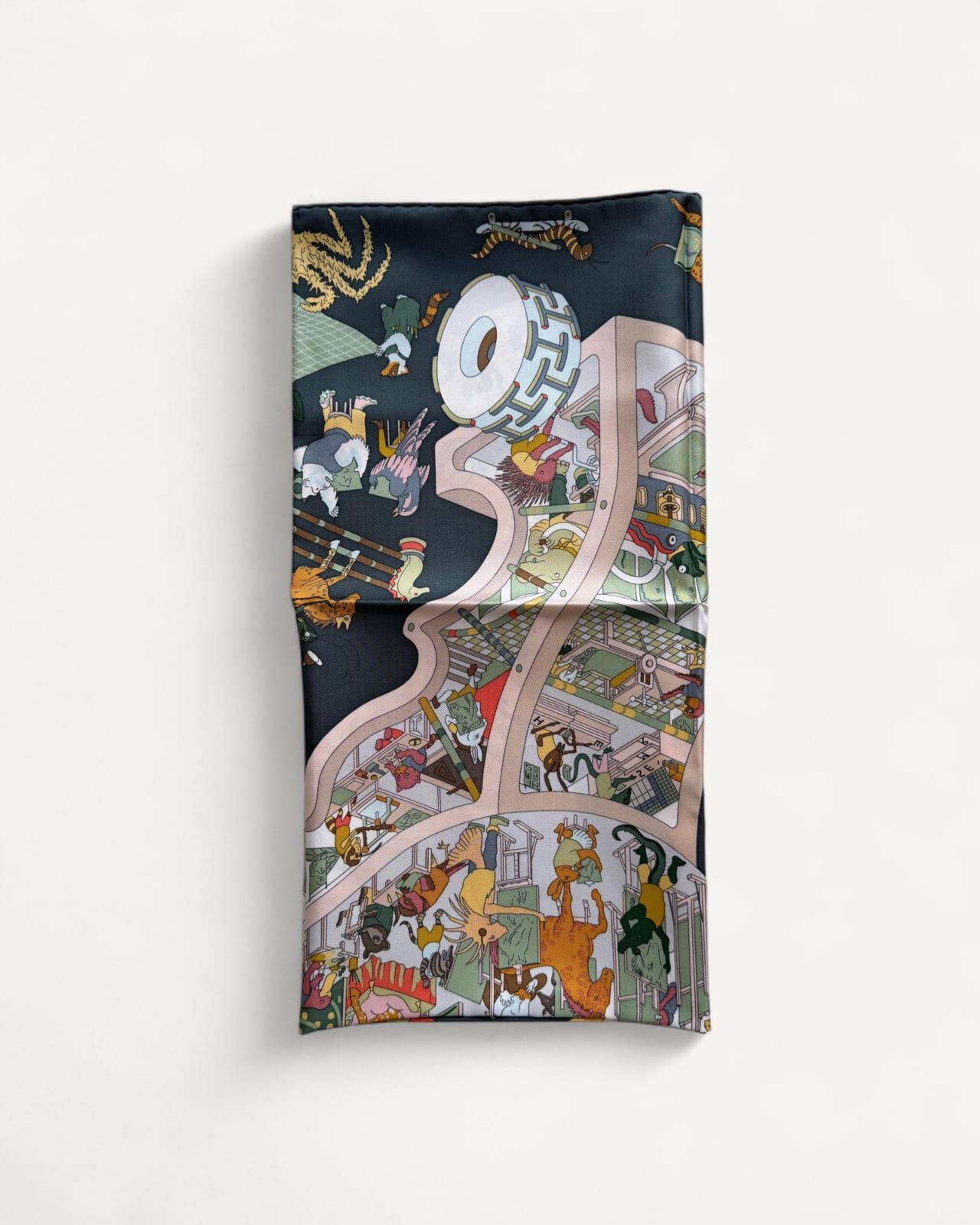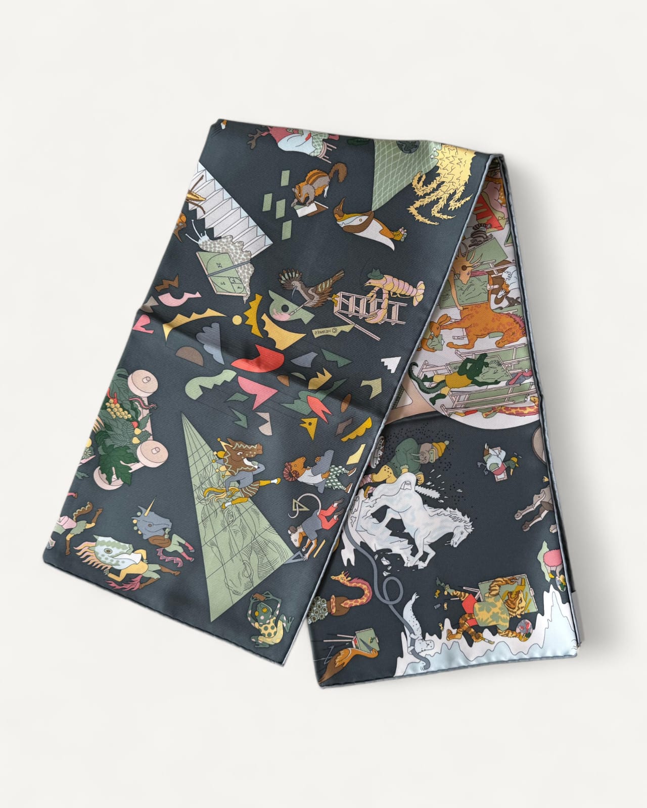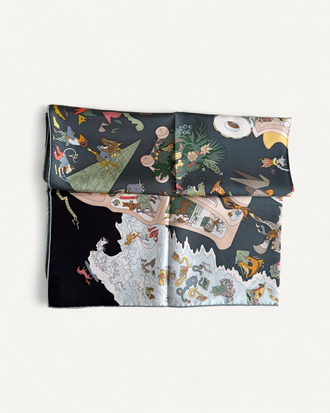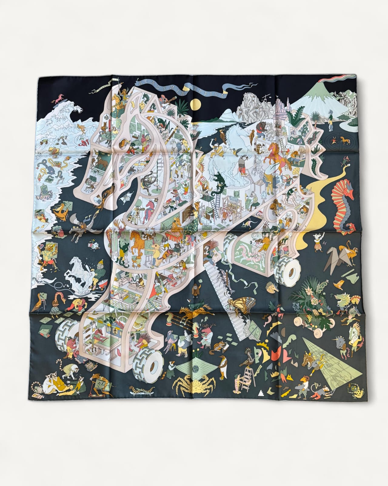 Lenço Hermès 90 Academia Hippica Noir / Ardoise / Rose Poudre