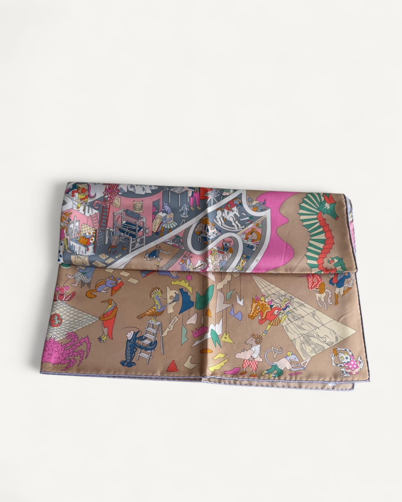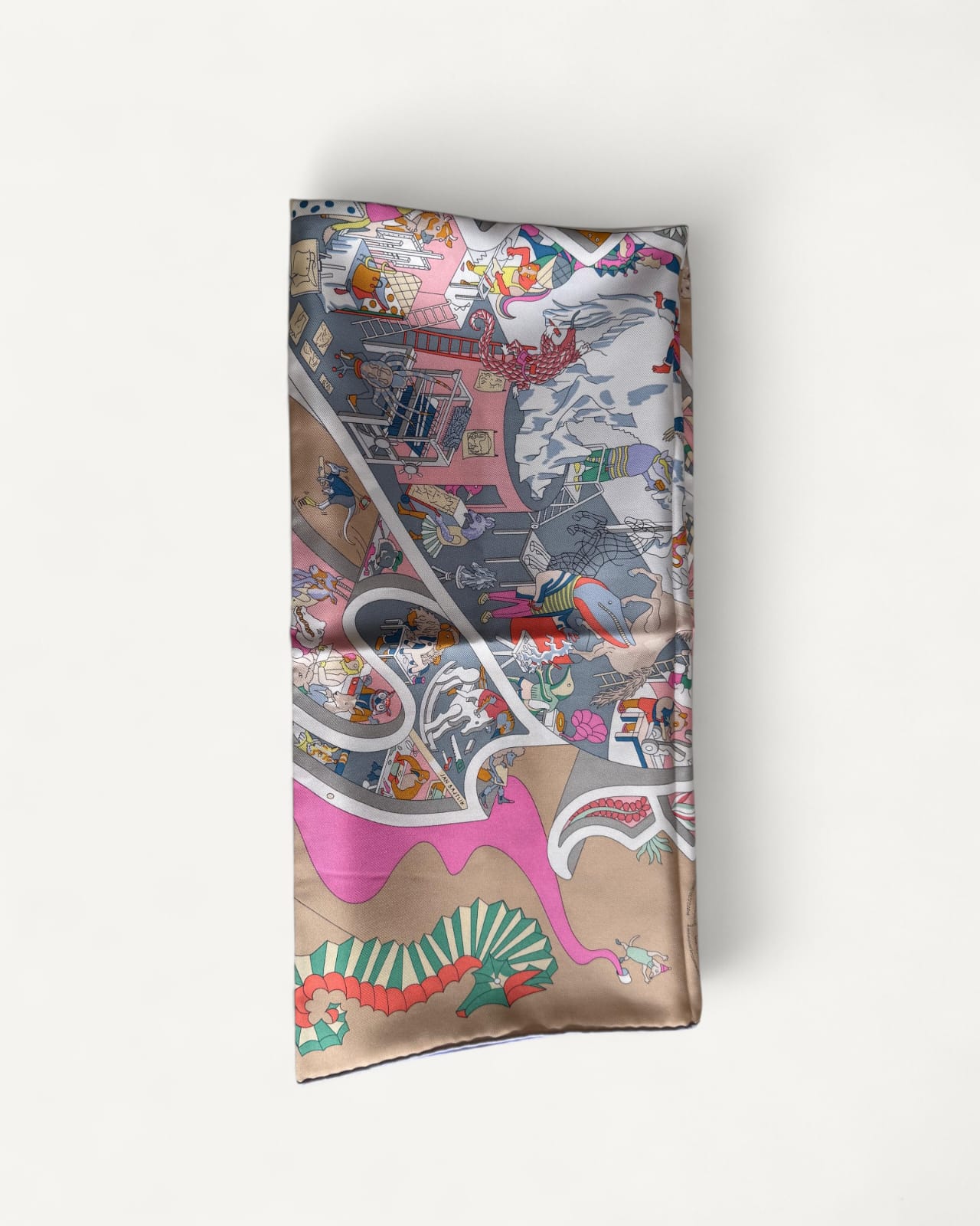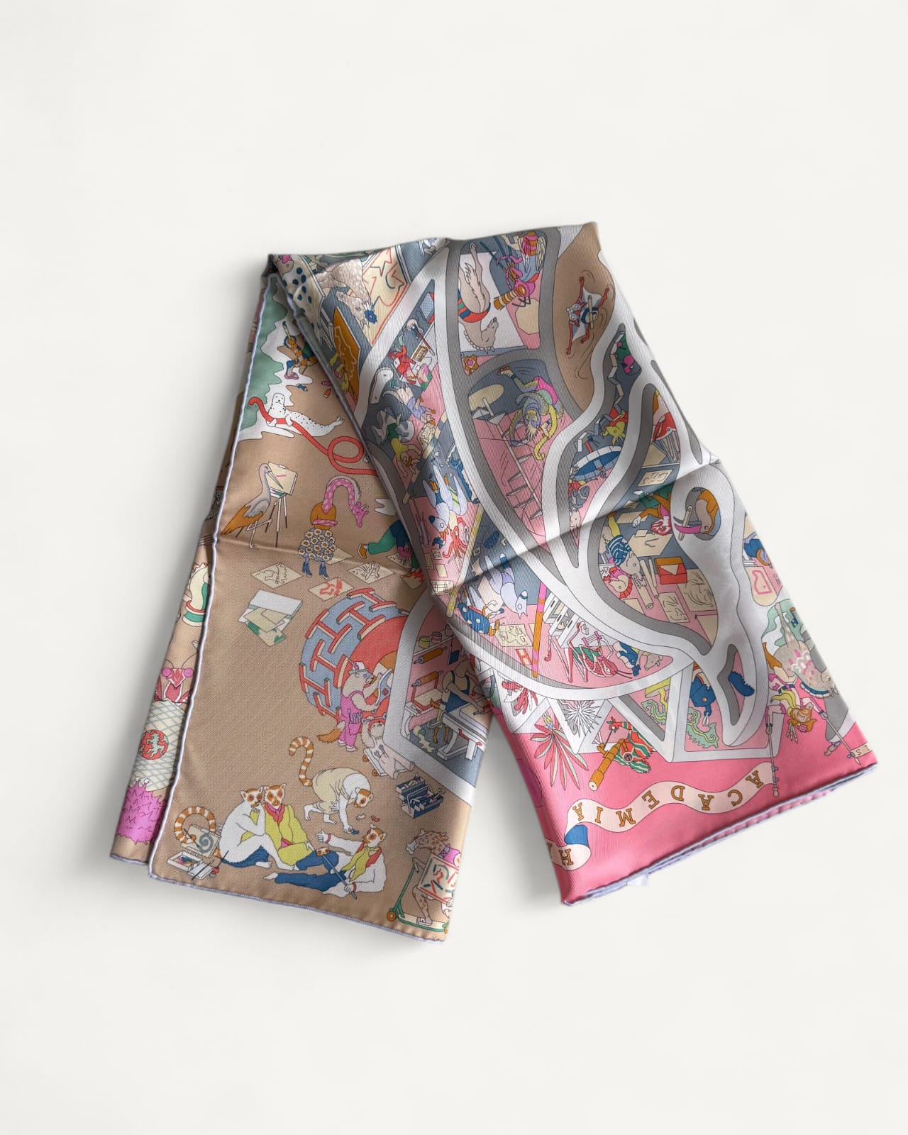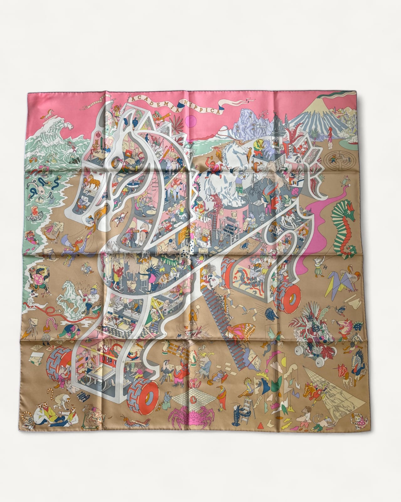 Lenço Hermès 90 Academia Hippica Rose Bonbon / Gris Beuté / Multicolore
