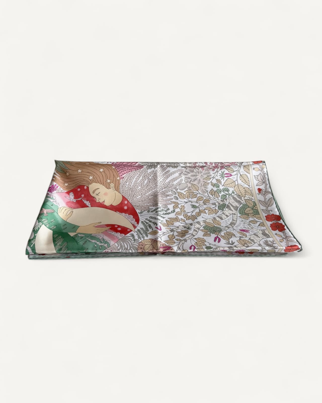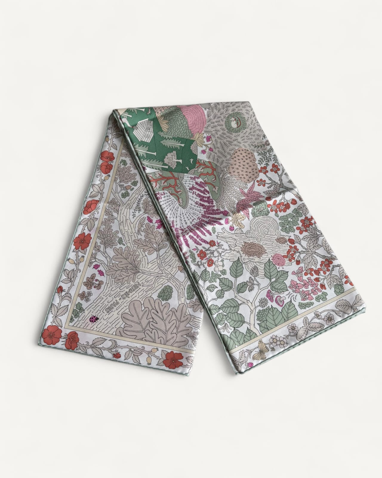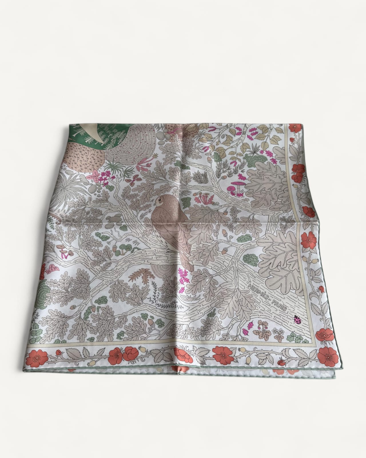 Lenço Hermès 90 Dans Le Bras de Séléné Blanc / Rose / Vert