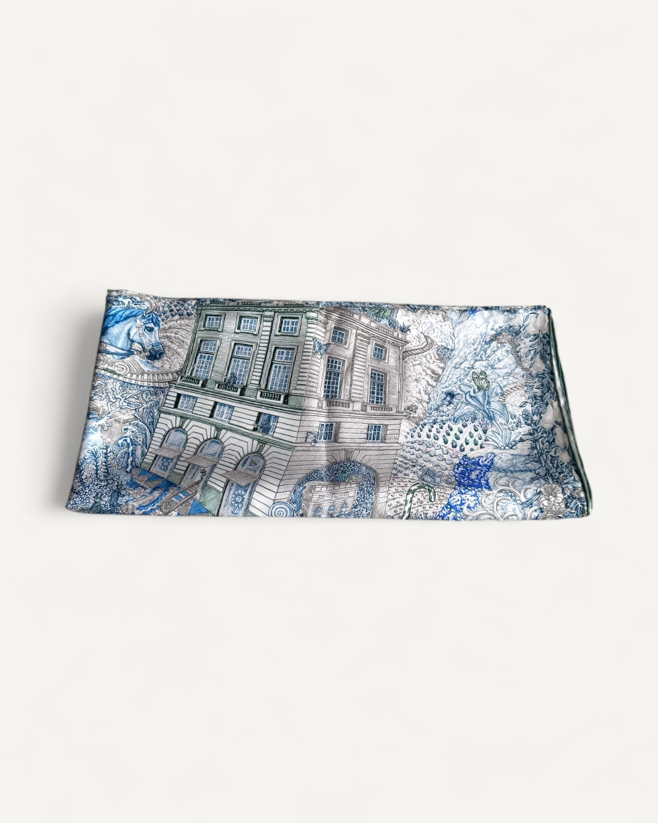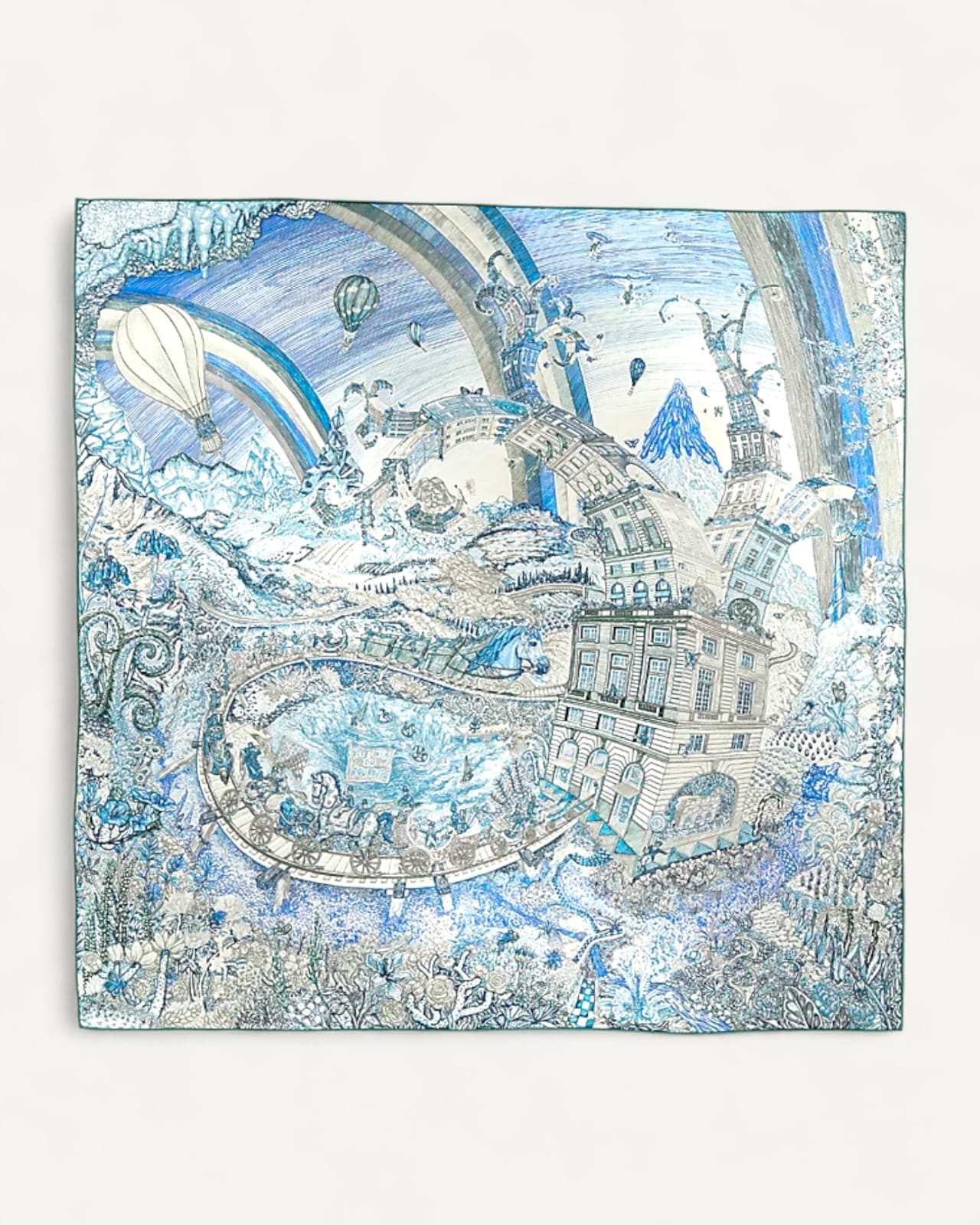Lenço Hermès em Seda Les Folies du Faubourg Bleu Electrique | Ardoise | Blanc