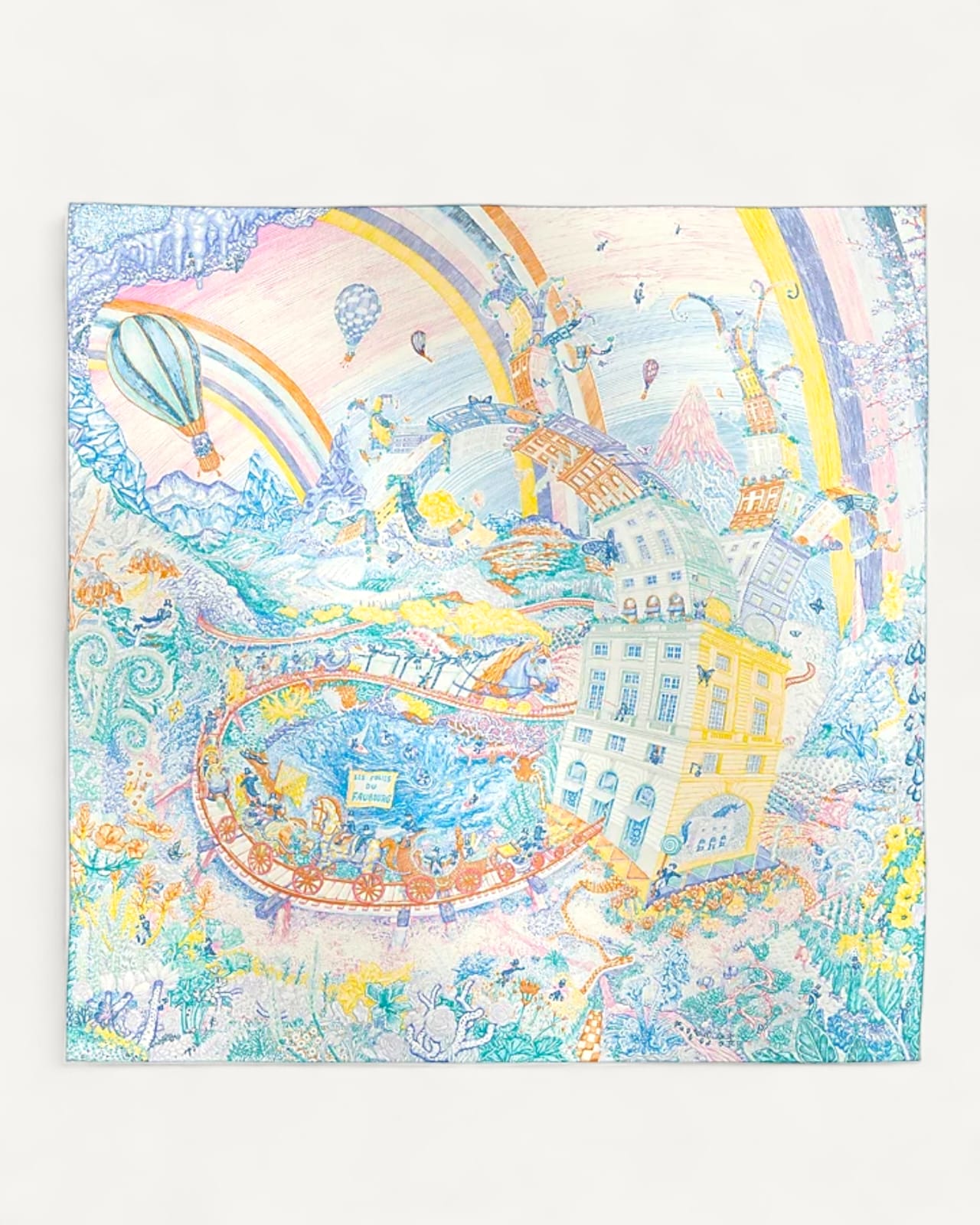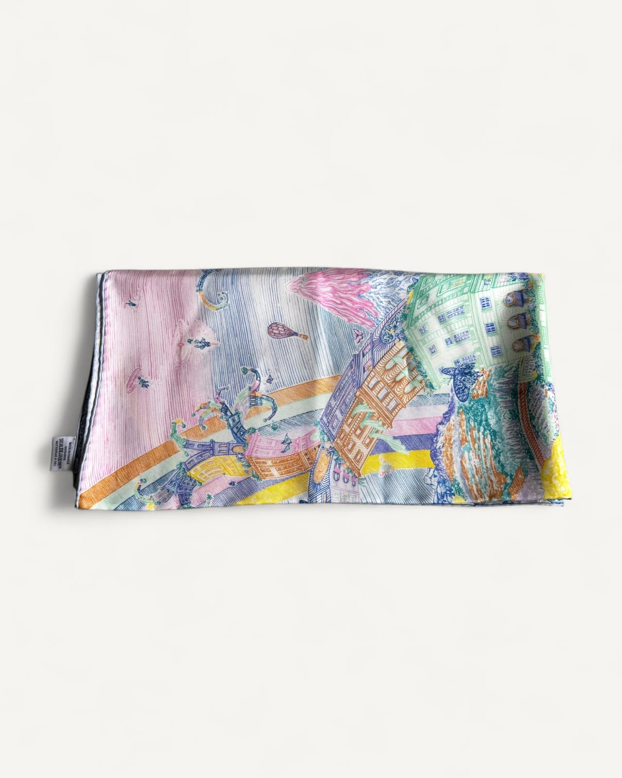Lenço Hermès em Seda Les Folies du Faubourg Rose| Bleu | Vert