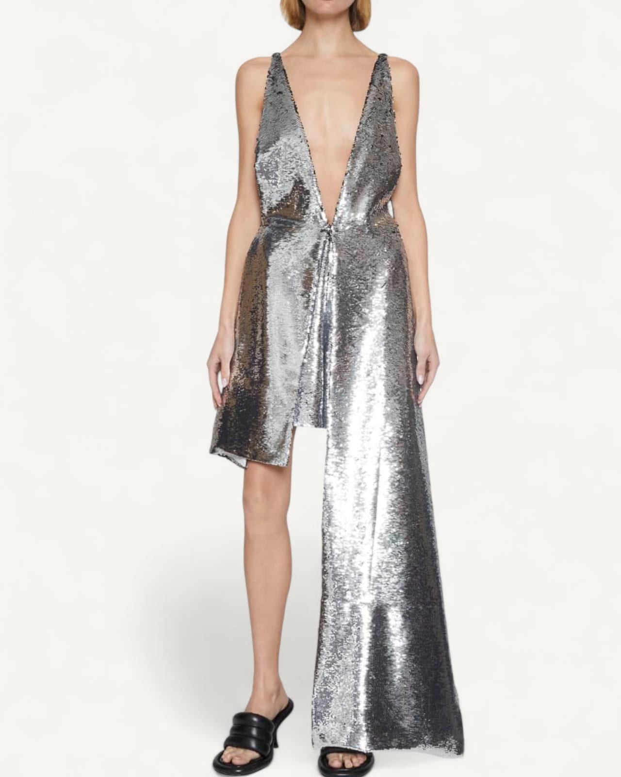 Macaquinho JW Anderson Drapeado Assimétrico em Lantejoula Prateada