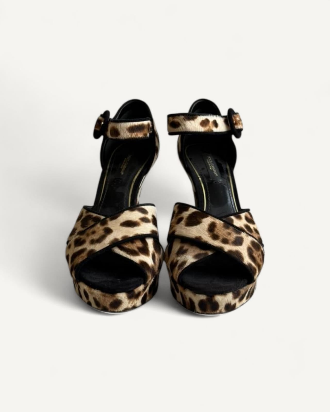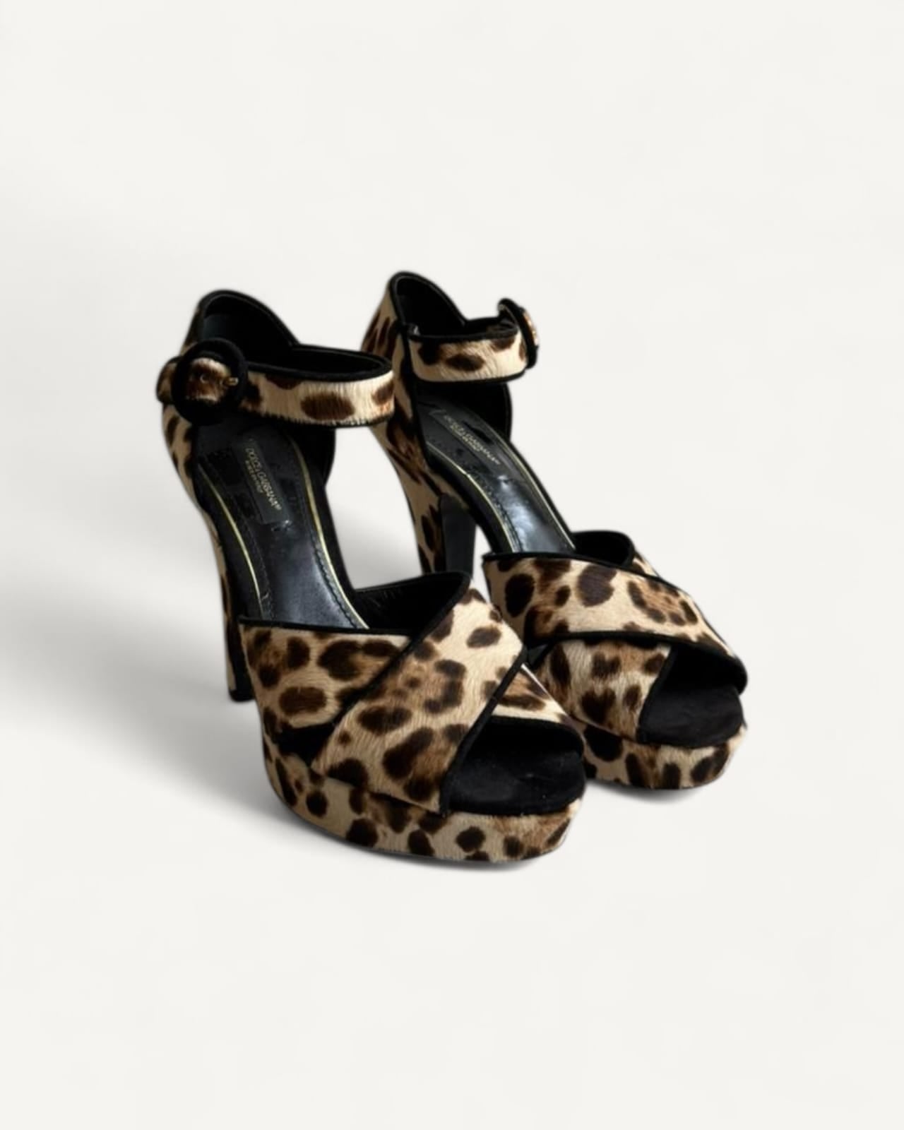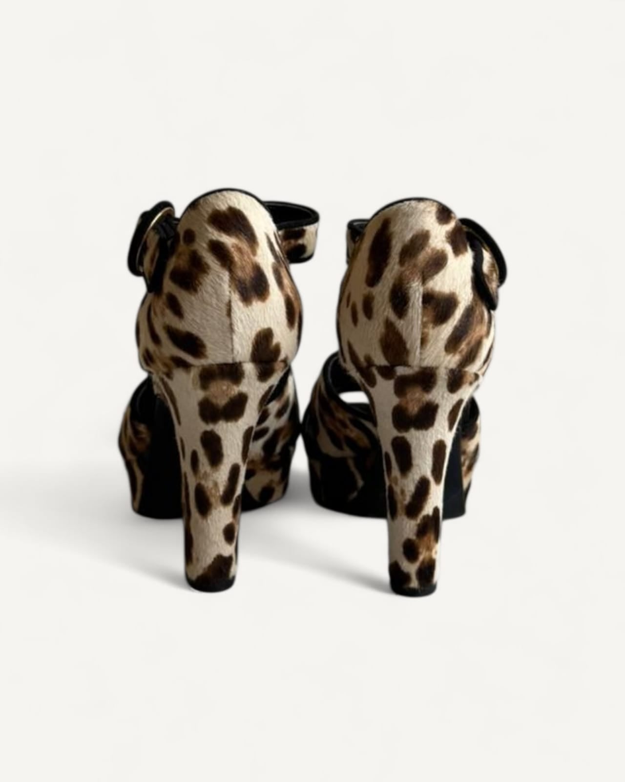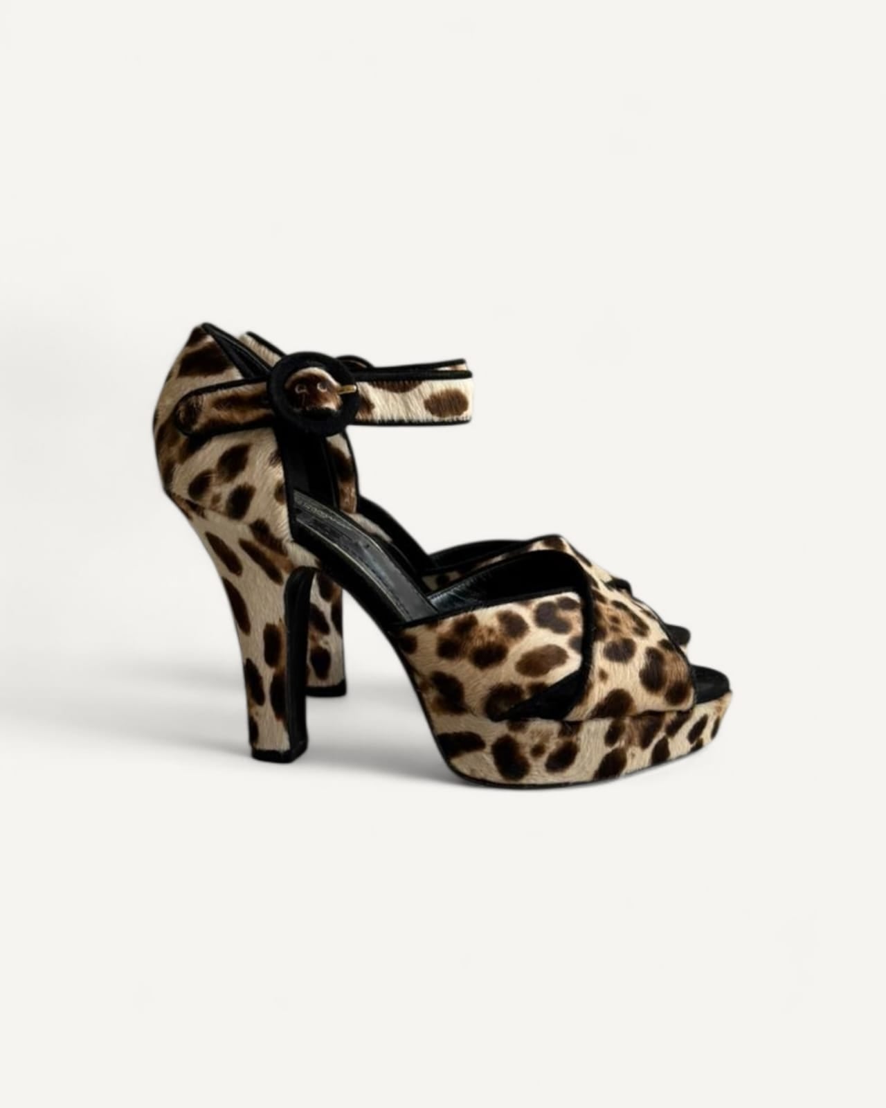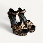 Sandália Dolce & Gabbana Leopard Print Fabric Ankle Strap Block Heel