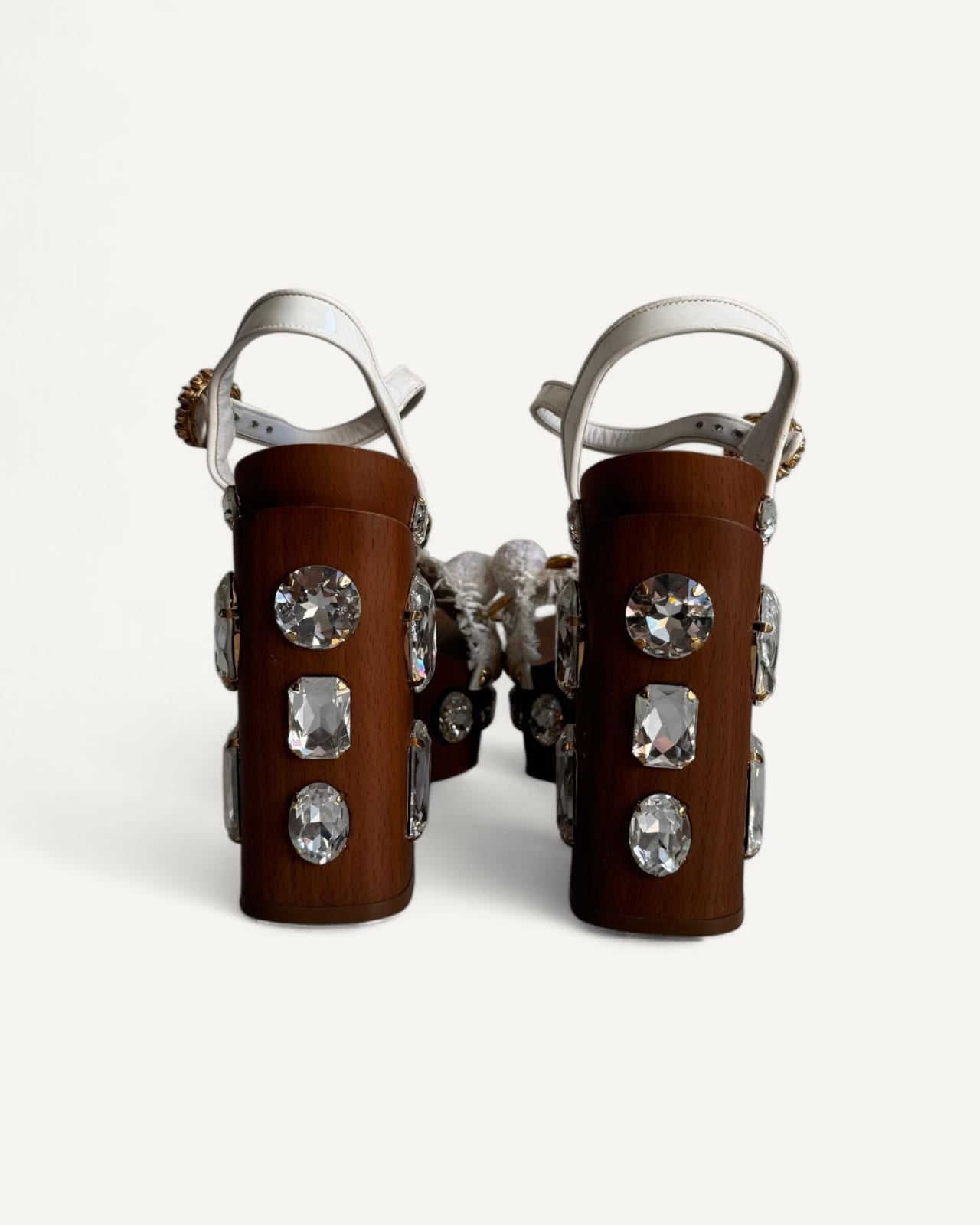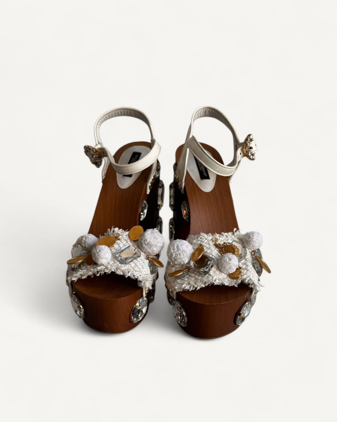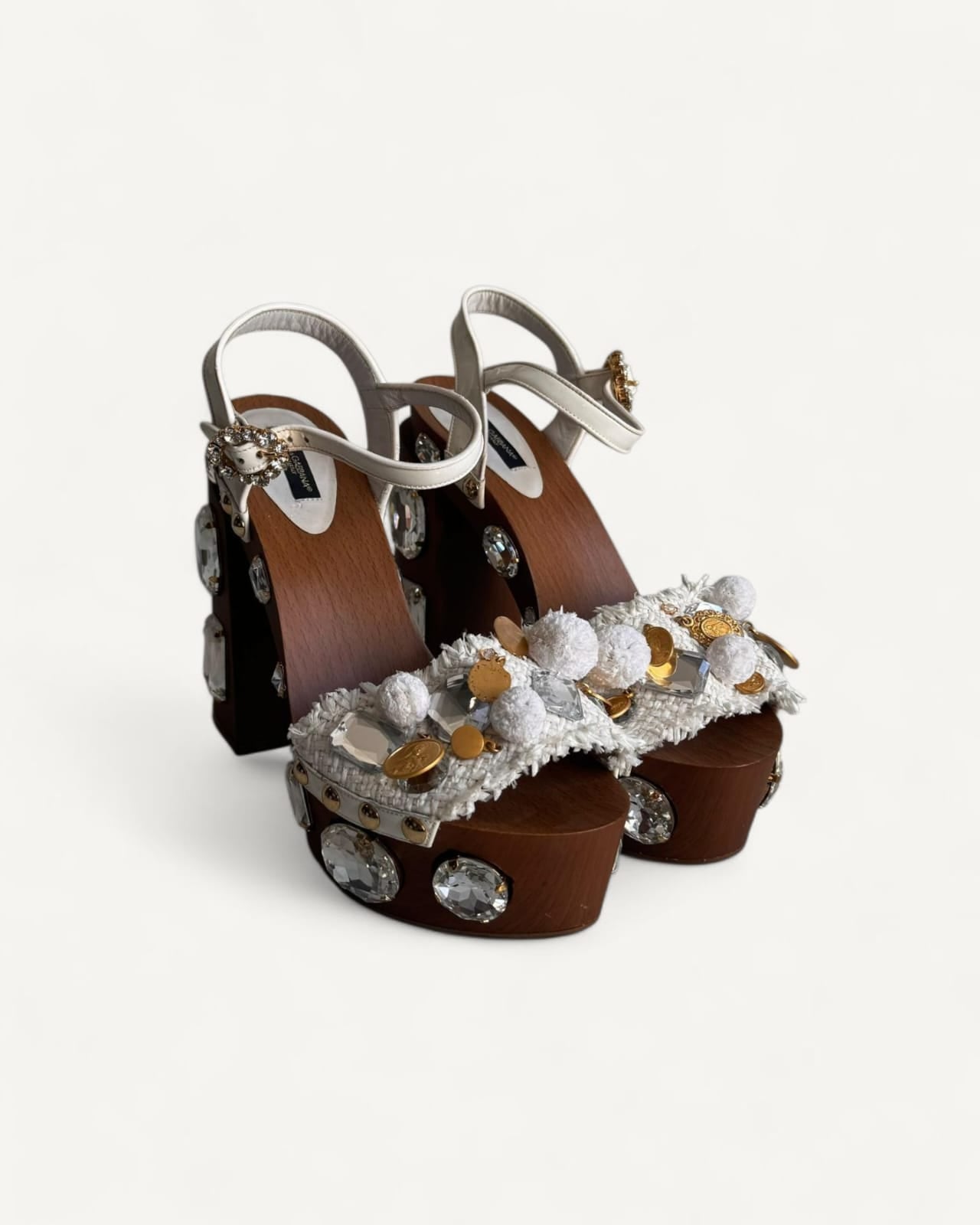 Sandália Dolce & Gabbana Off-White com Aplicações
