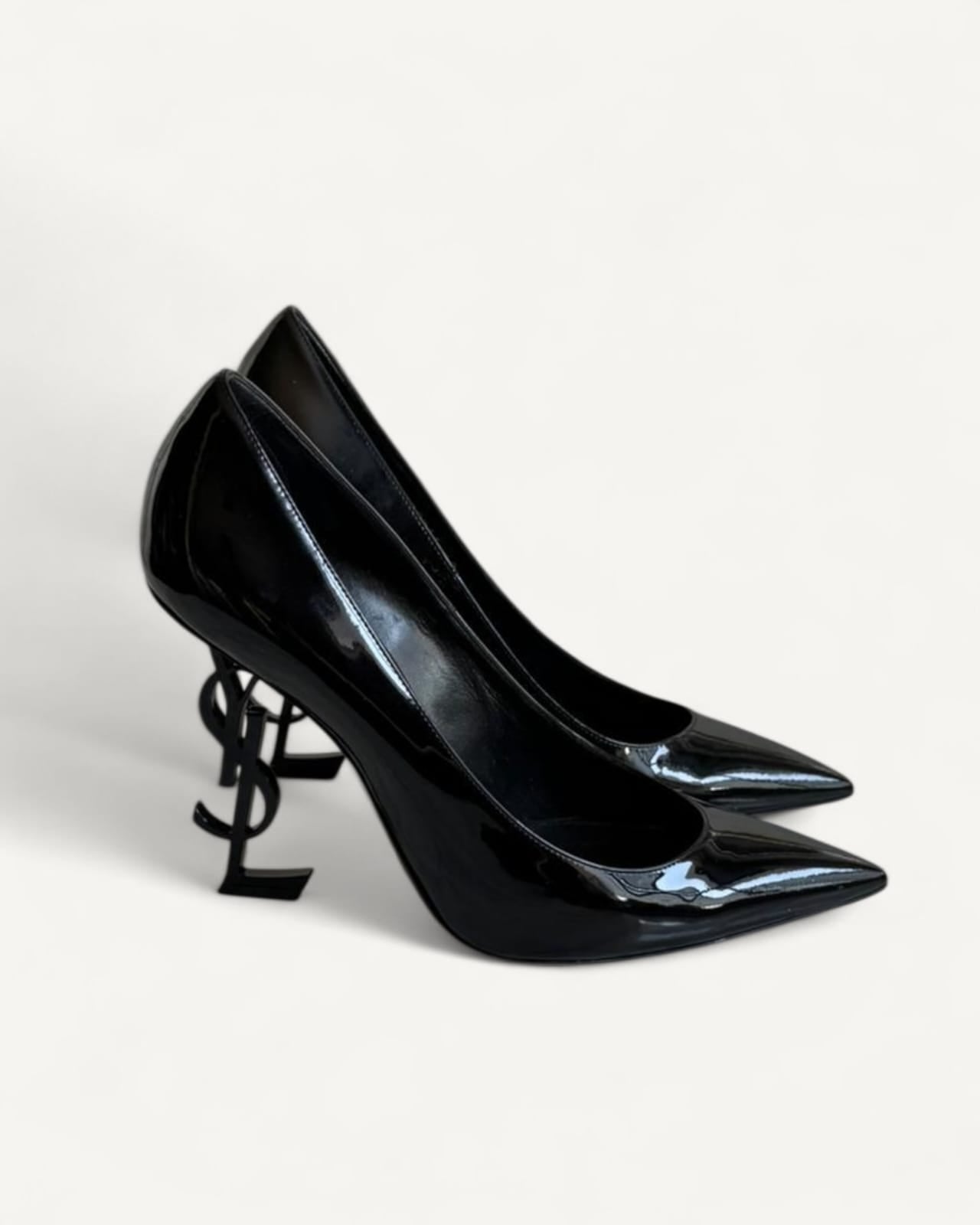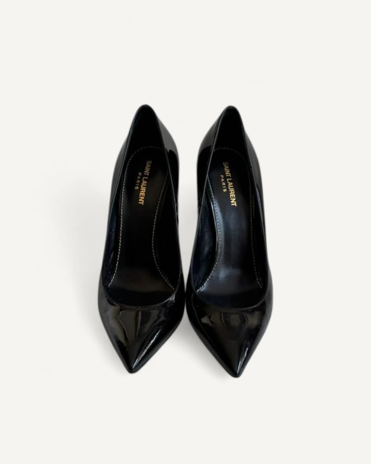 Scarpin Saint Laurent Opyum em Couro Preto Envernizado