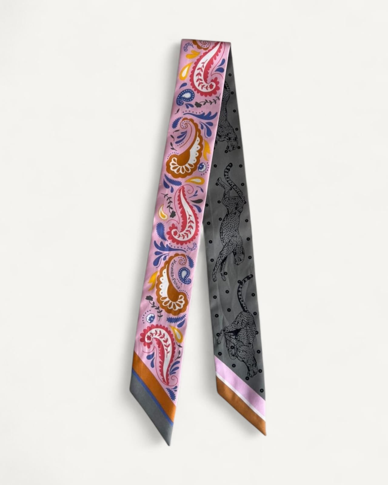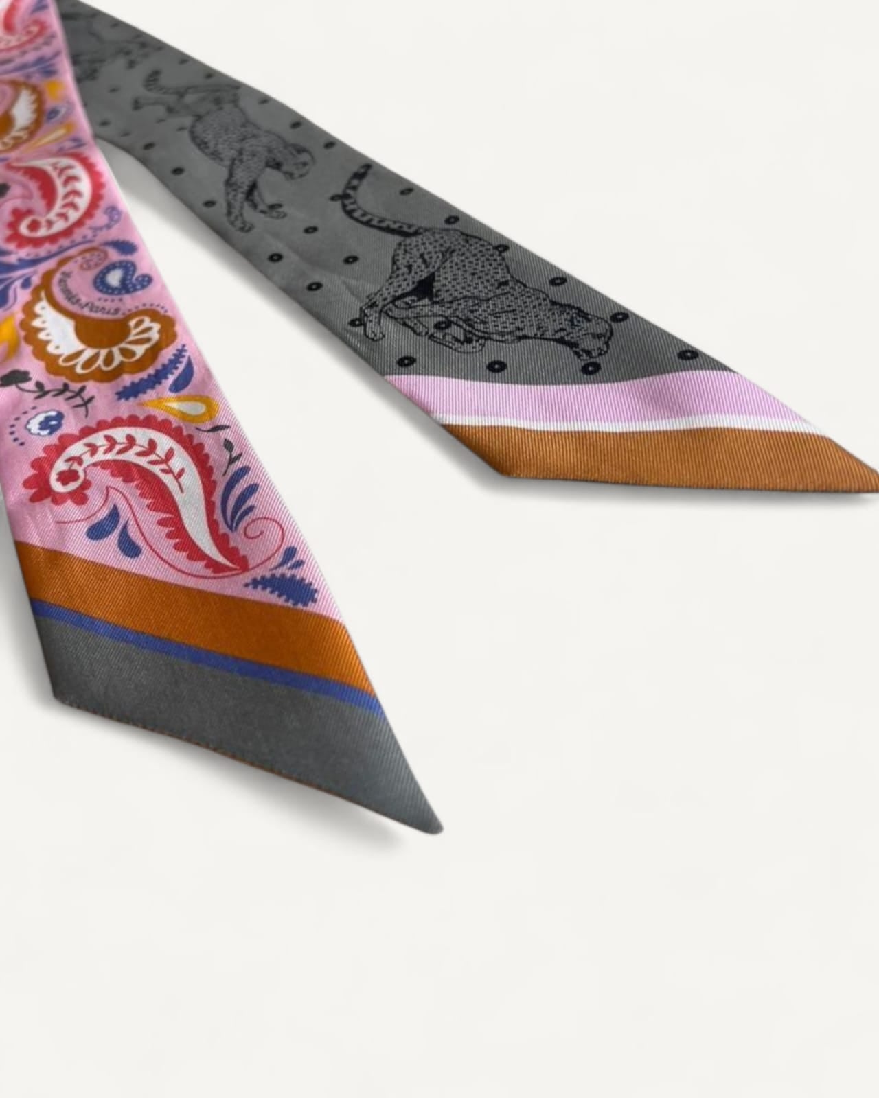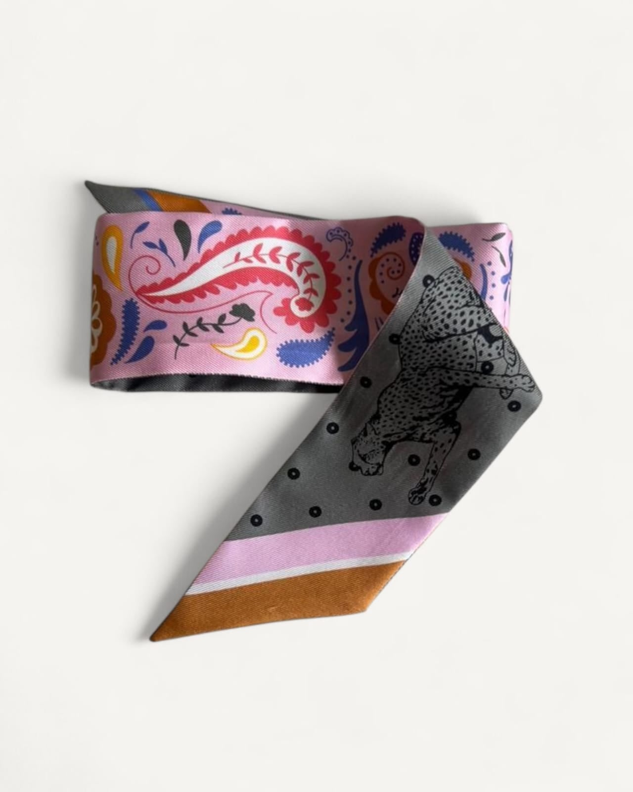 Twilly Hermès Twilly Guepards Bandana Pink Silk