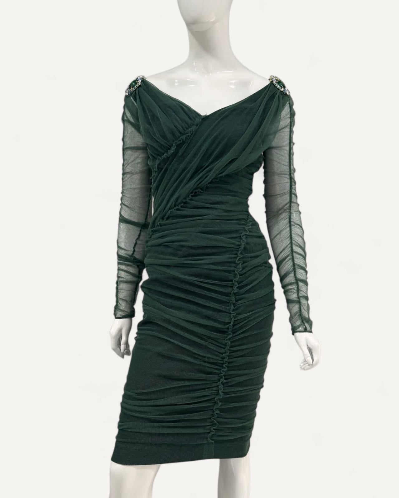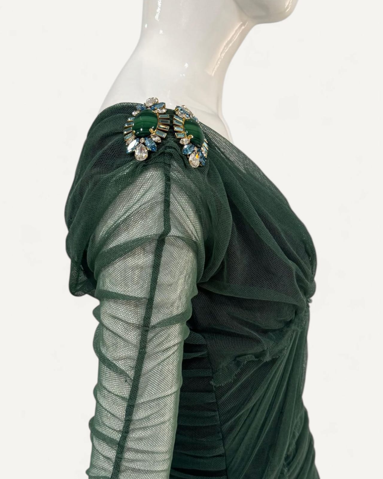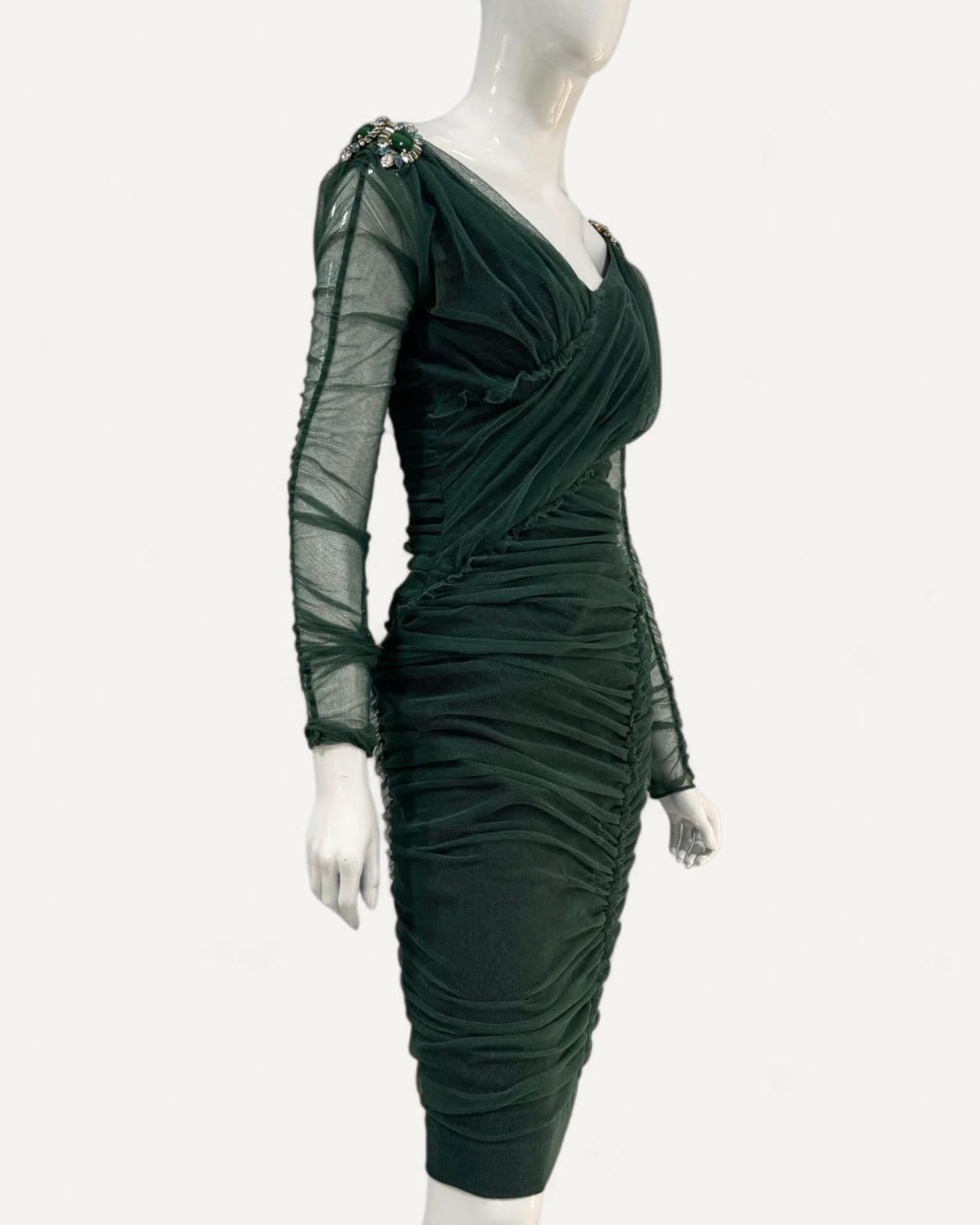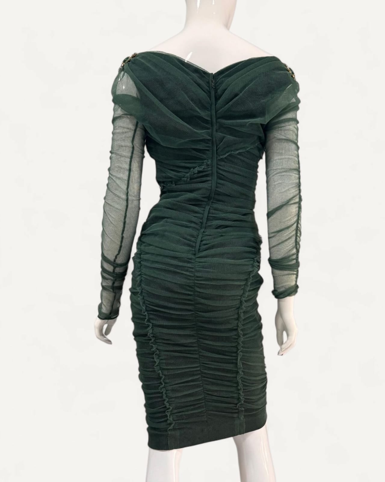 Vestido Dolce & Gabbana Drapeado em Tule Verde
