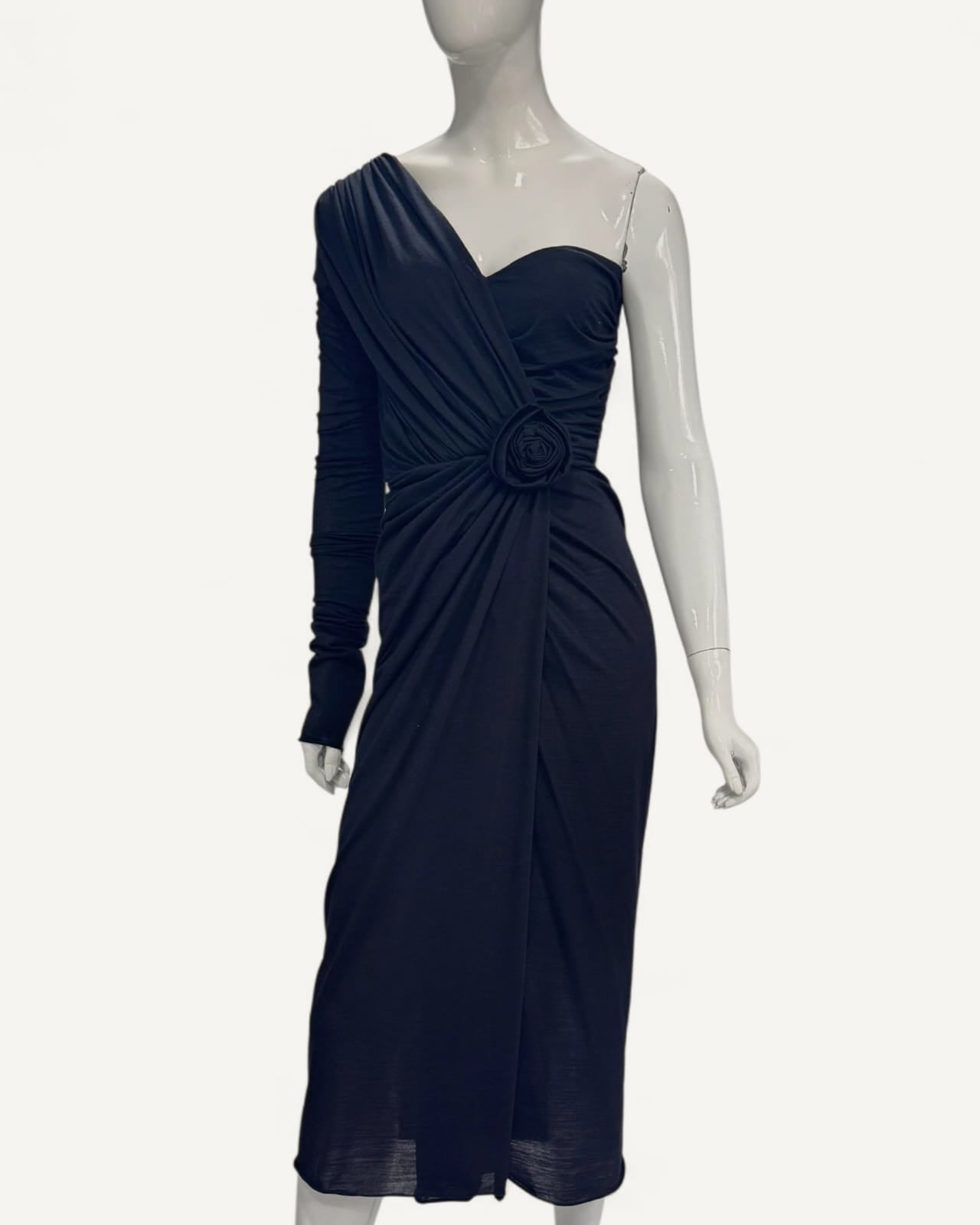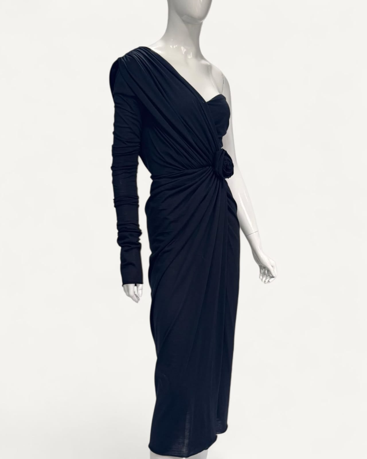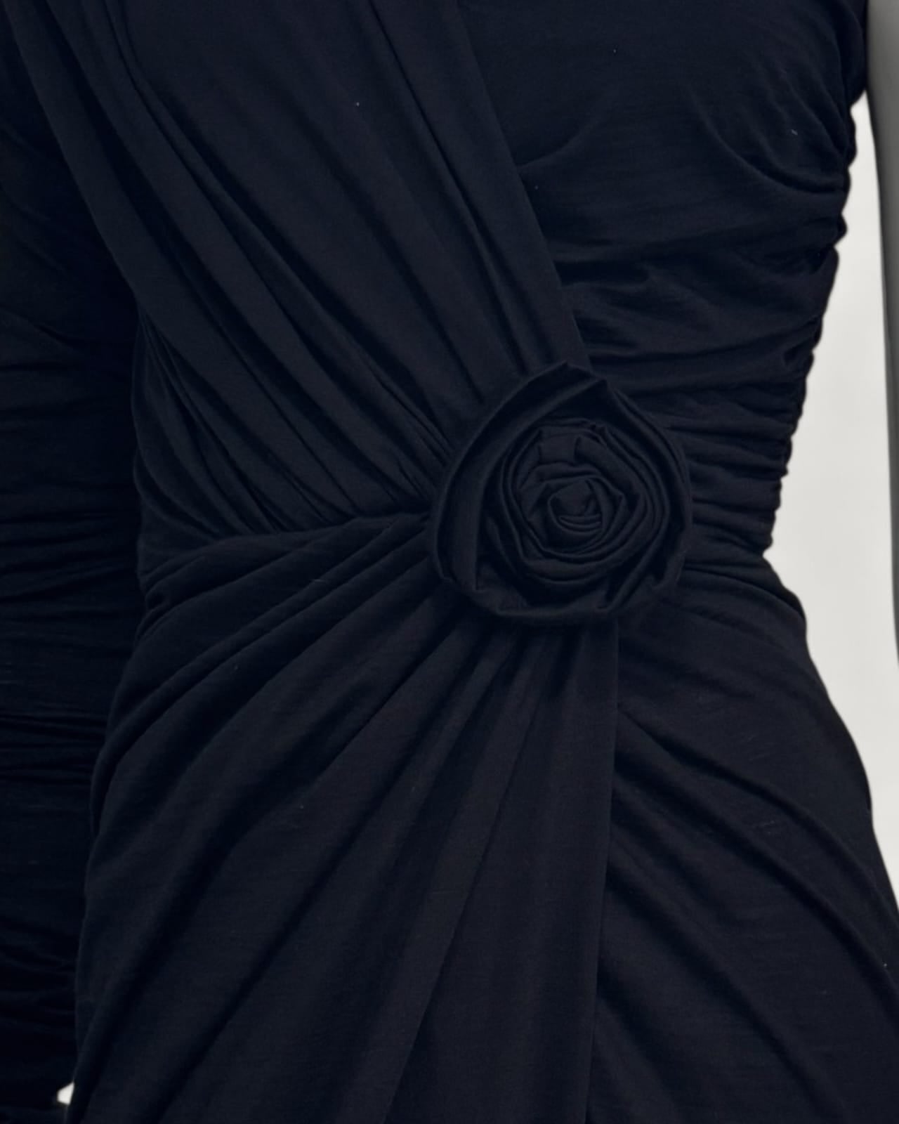 Vestido Dolce & Gabbana Preto Drapeado com Flor