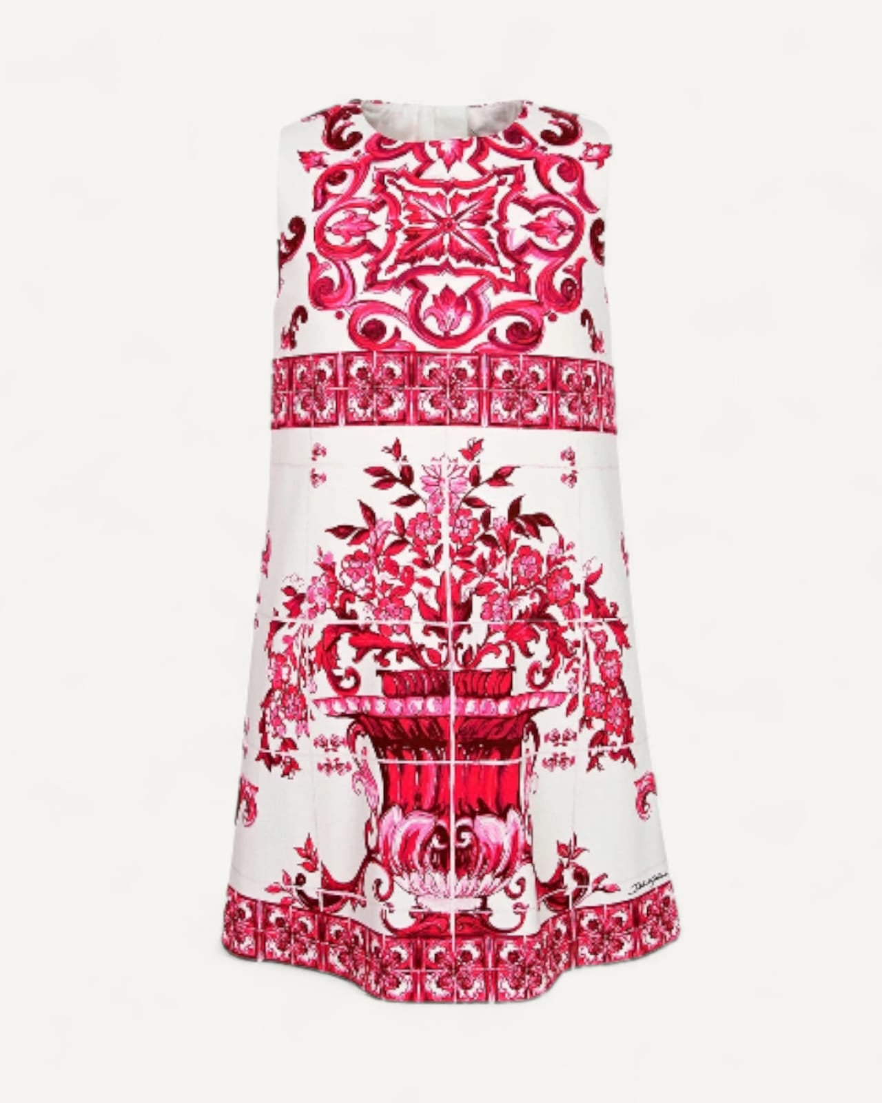 Vestido Infantil Dolce & Gabbana com Estampa Majolica Rosa Fúcsia